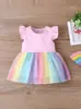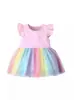 Falda Arcoíris de Comercio Exterior Falda de Princesa Vestido de Niña Vestido de Verano Falda para Niños Estilo Coreano Falda de Verano de Manga Corta para Niños Nuevo Algodón