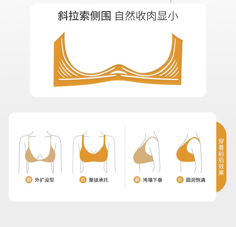 Traceless, Breathable, Beautiful back, Comfortable, Side collection, Big breasts smaller