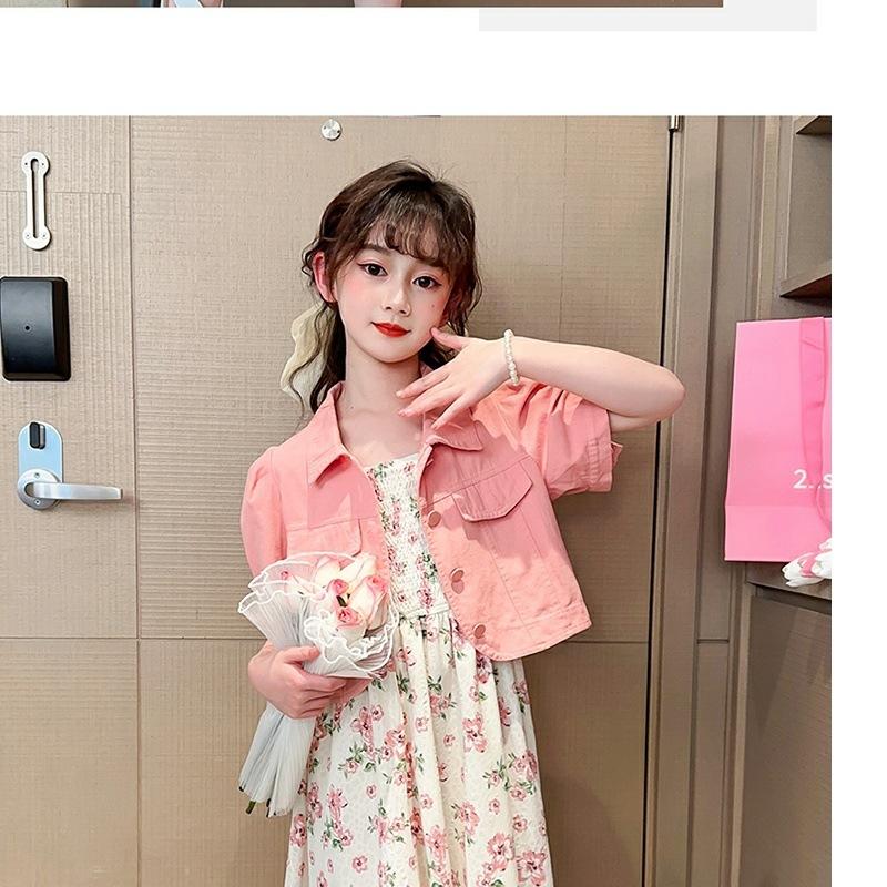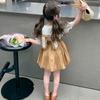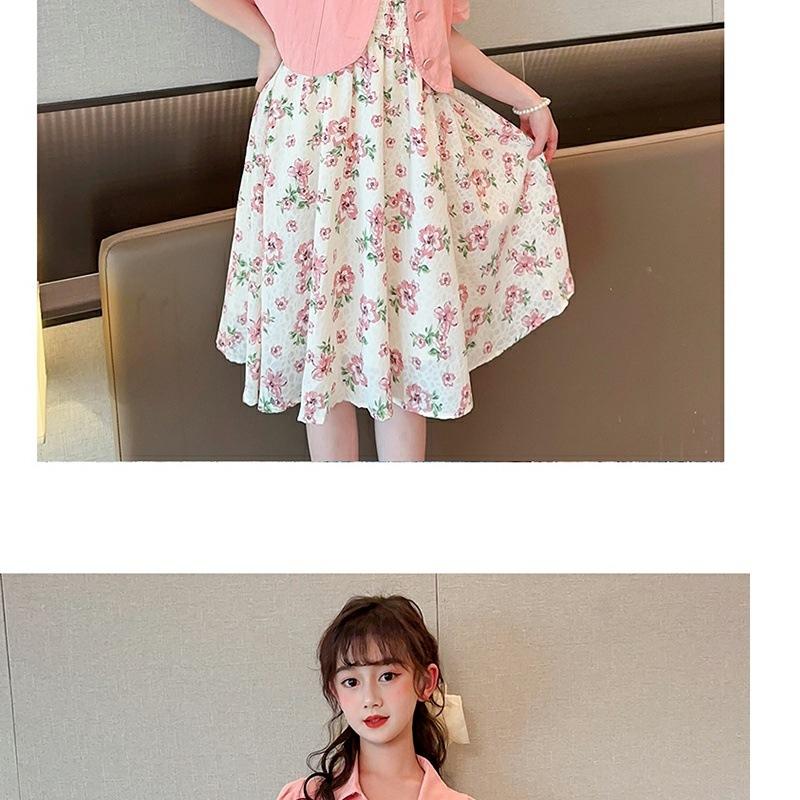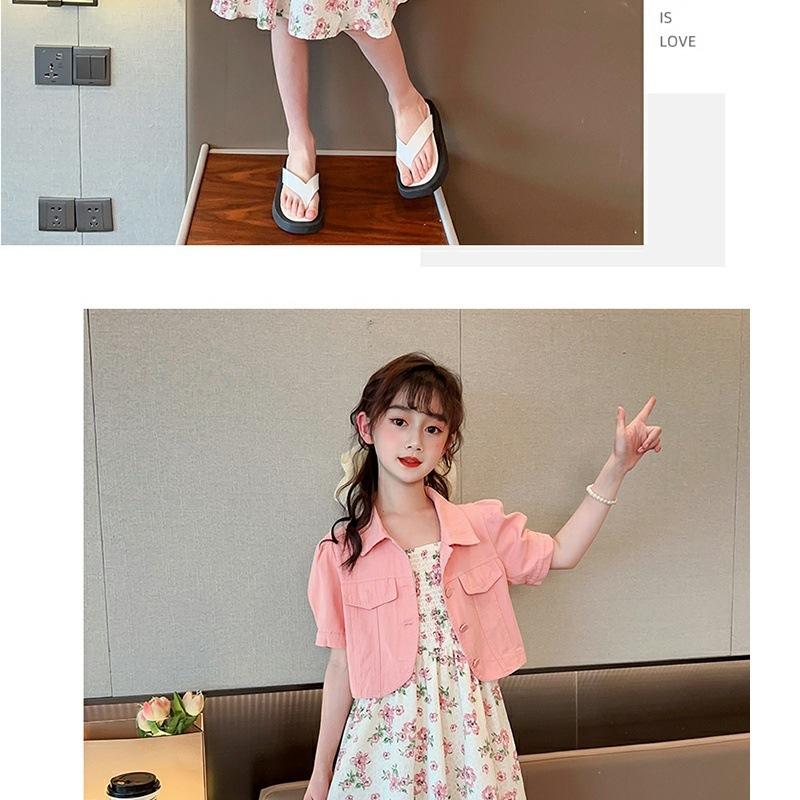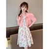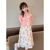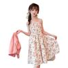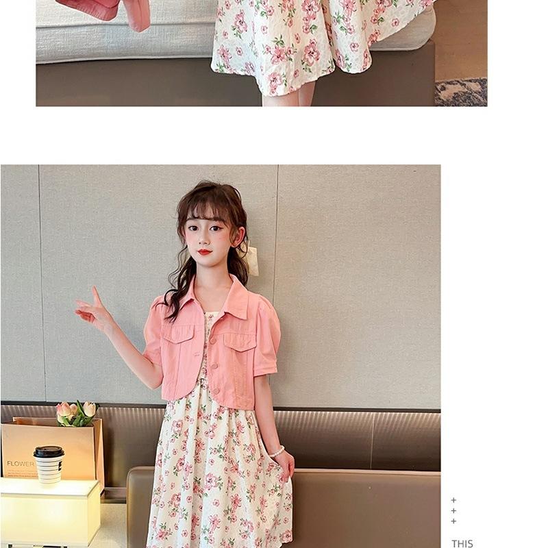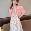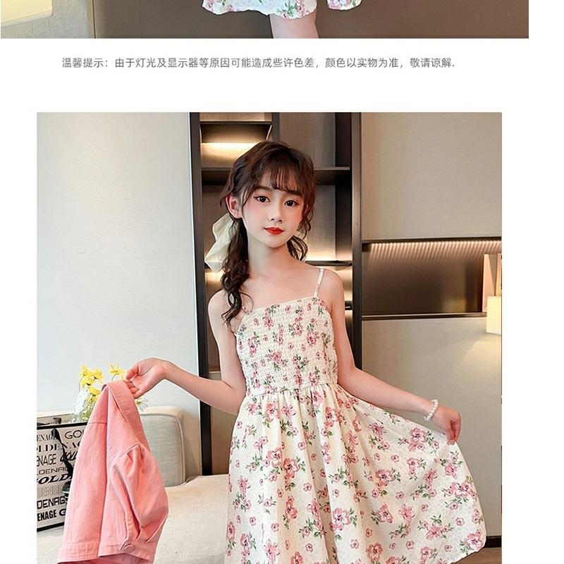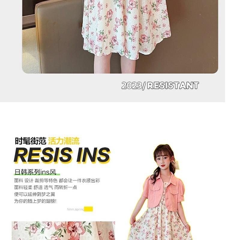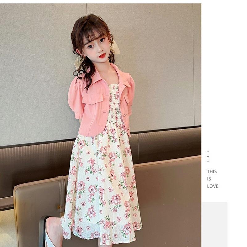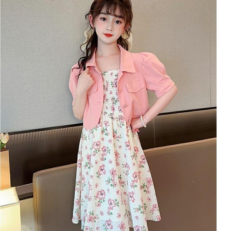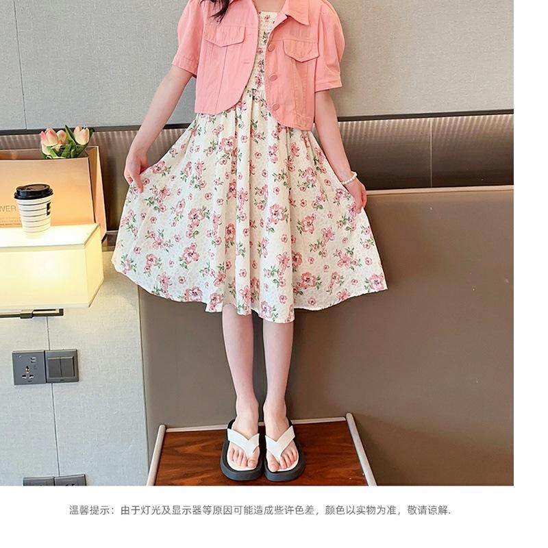 Traje de Verano para Niñas Estilo Occidental 2024 Nuevo Falda de Tirantes Floral para Niños Conjunto de Dos Piezas Verano Fino Niños Medianos y Grandes