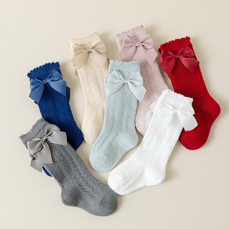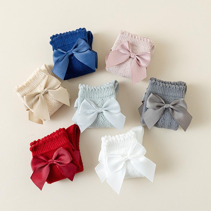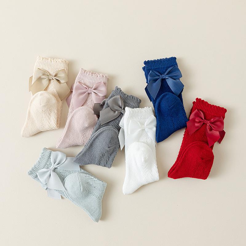 Calcetines para niños, primavera y otoño, con lazo, estilo princesa, de algodón, cómodos.