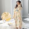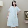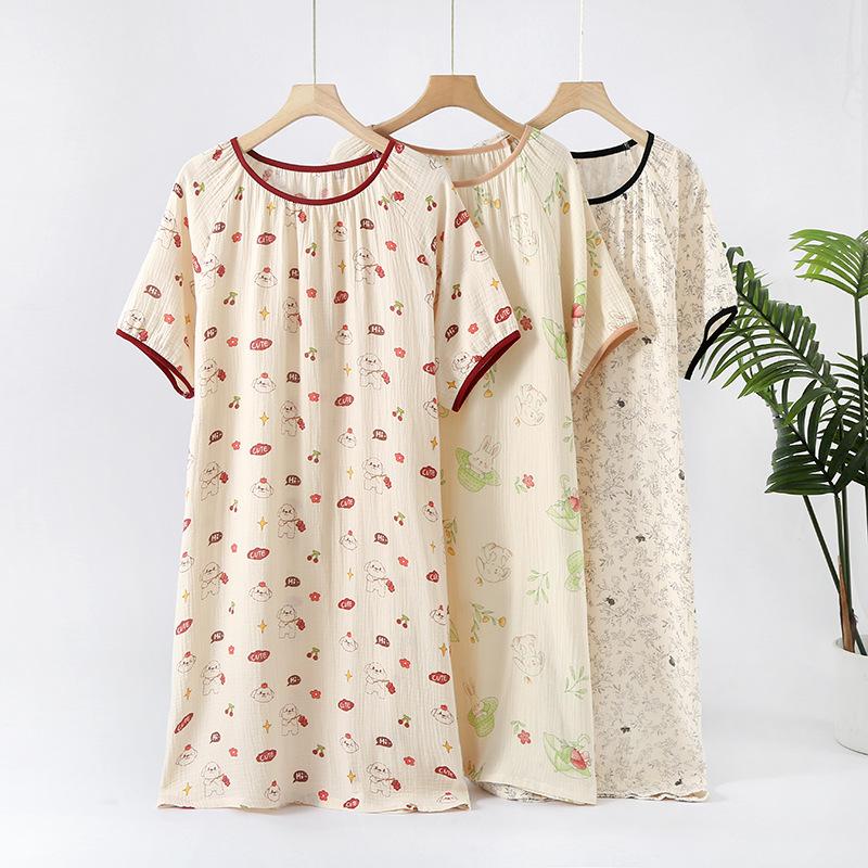 Camisón de algodón puro para mujer, bonito cuello redondo, manga corta, holgado, fino, largo, para verano