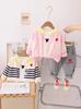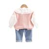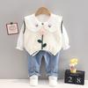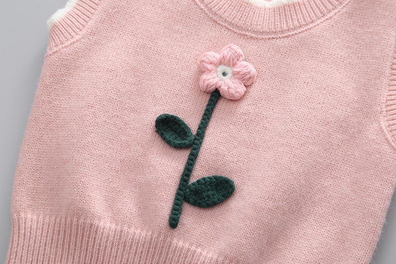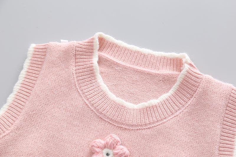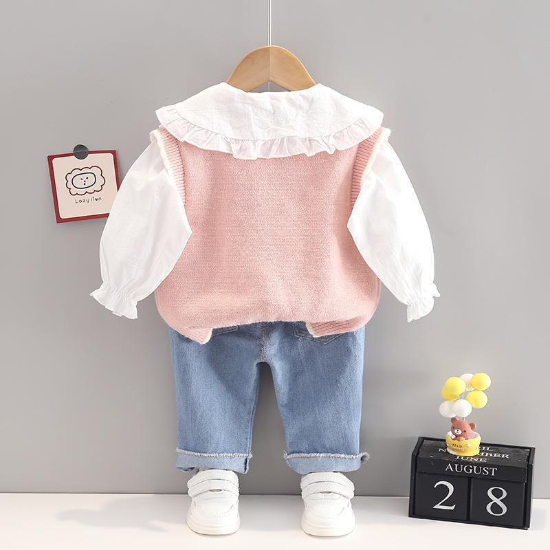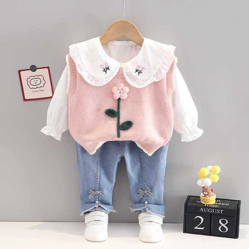 Suéter para Niñas 2024 Traje Nuevo Estilo Coreano Flor Pequeña Manga Larga Bebé Niña Tres Piezas Traje Otoño Ropa para Niños