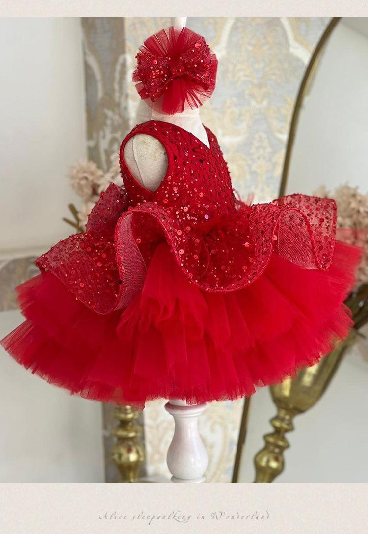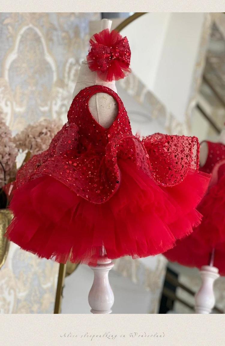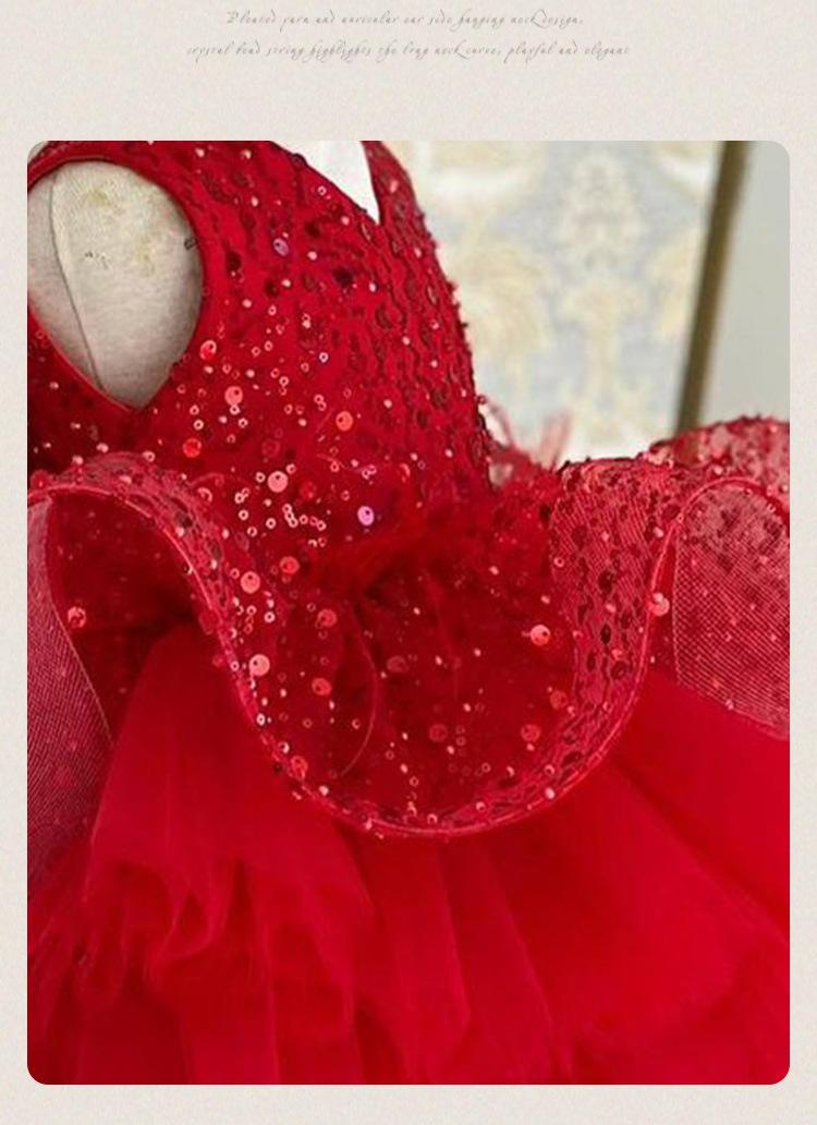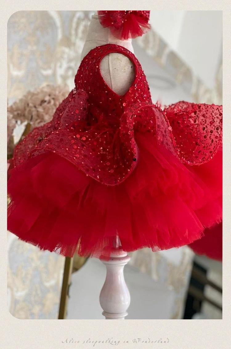 Vestido de princesa de cumpleaños para niñas, de malla con lentejuelas, ropa de actuación infantil, falda tutú corta de un año, comercio exterior al por mayor
