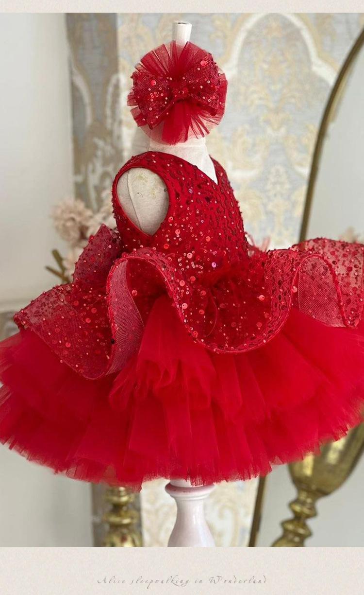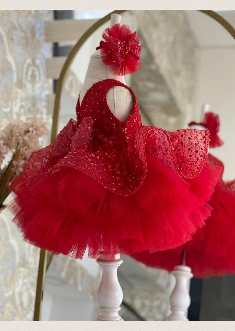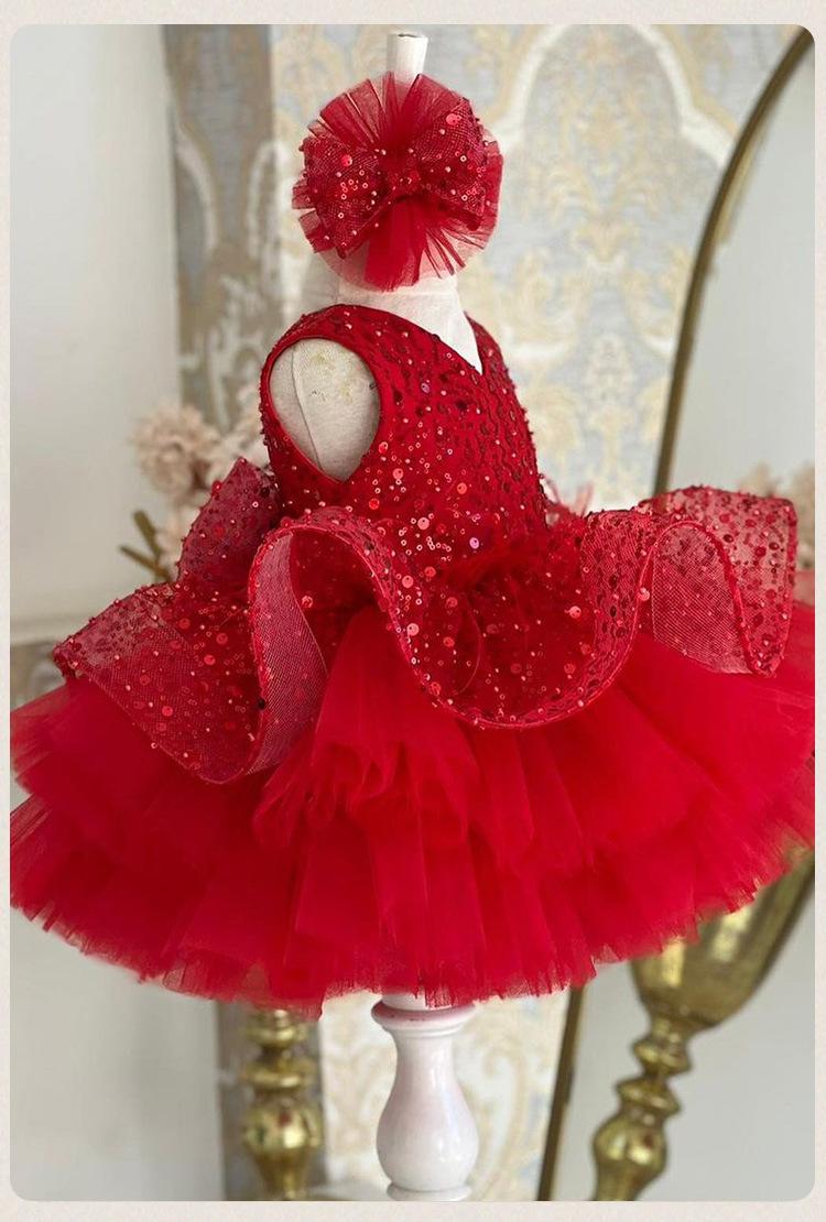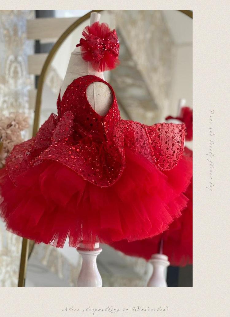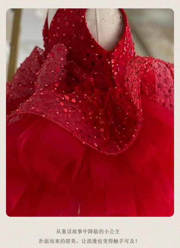 Vestido de princesa de cumpleaños para niñas, de malla con lentejuelas, ropa de actuación infantil, falda tutú corta de un año, comercio exterior al por mayor