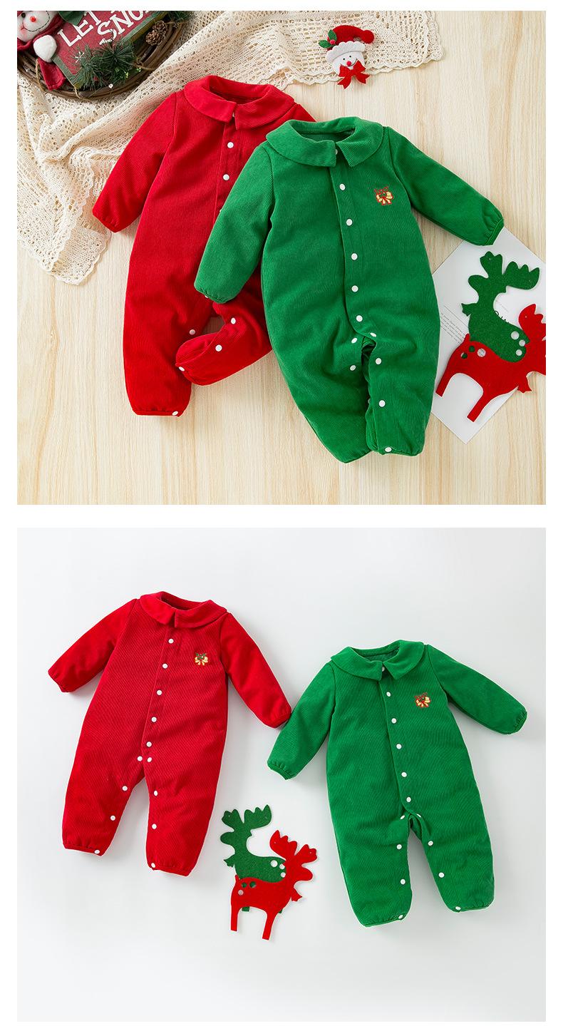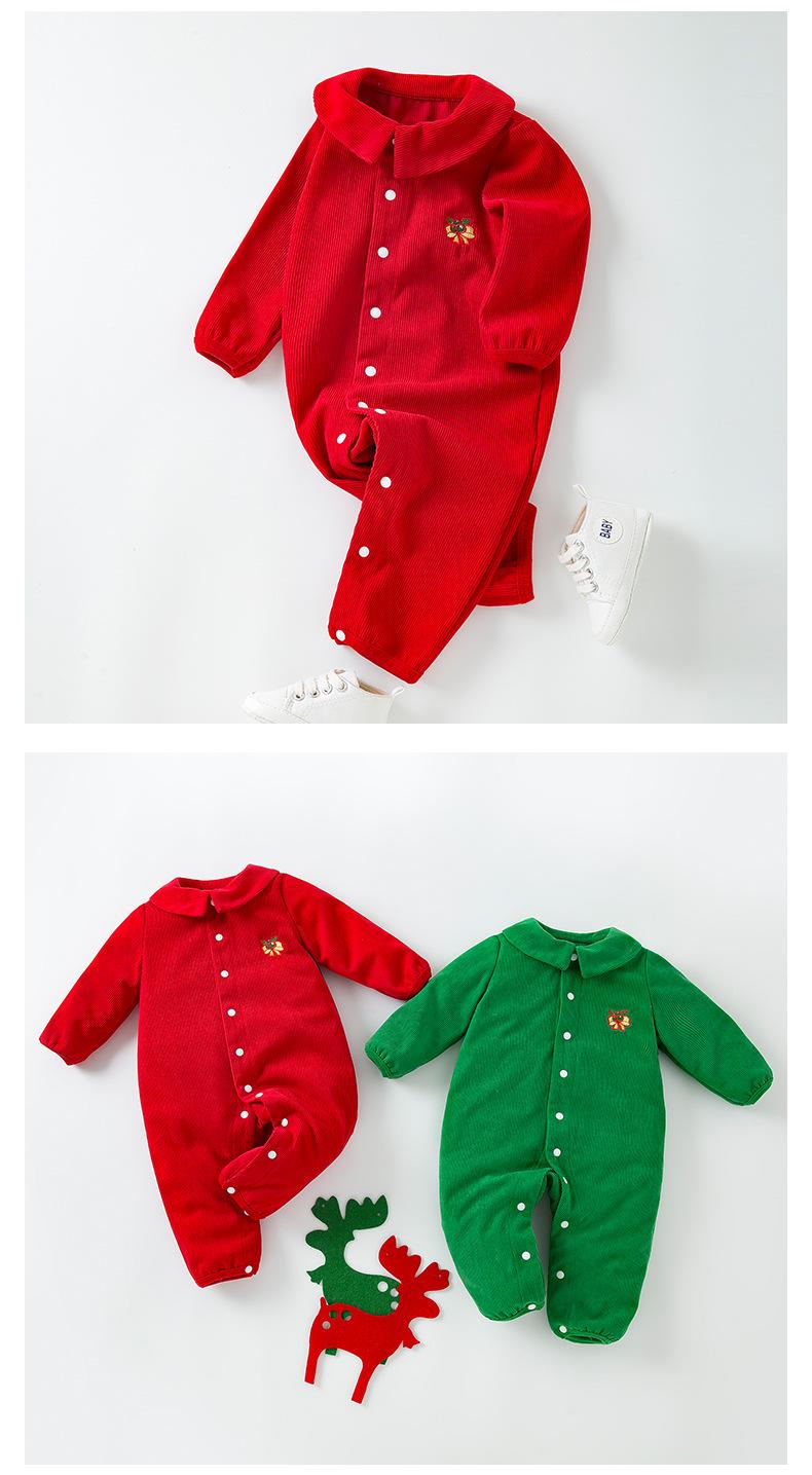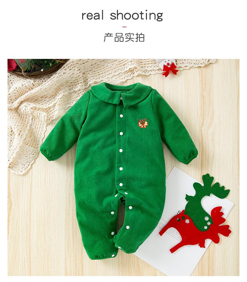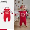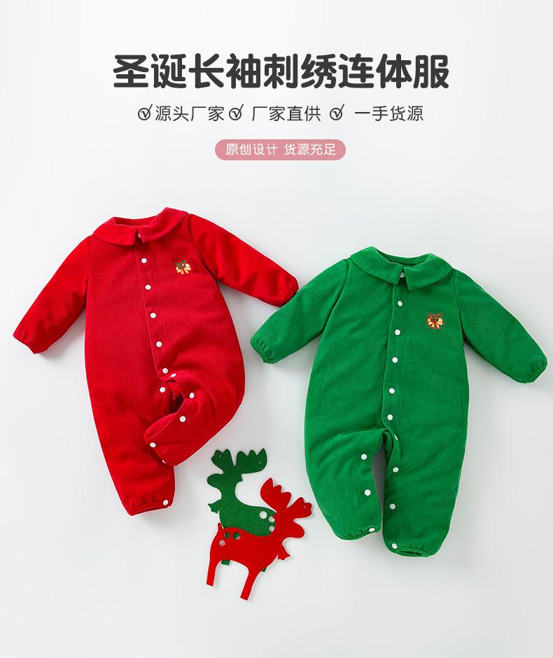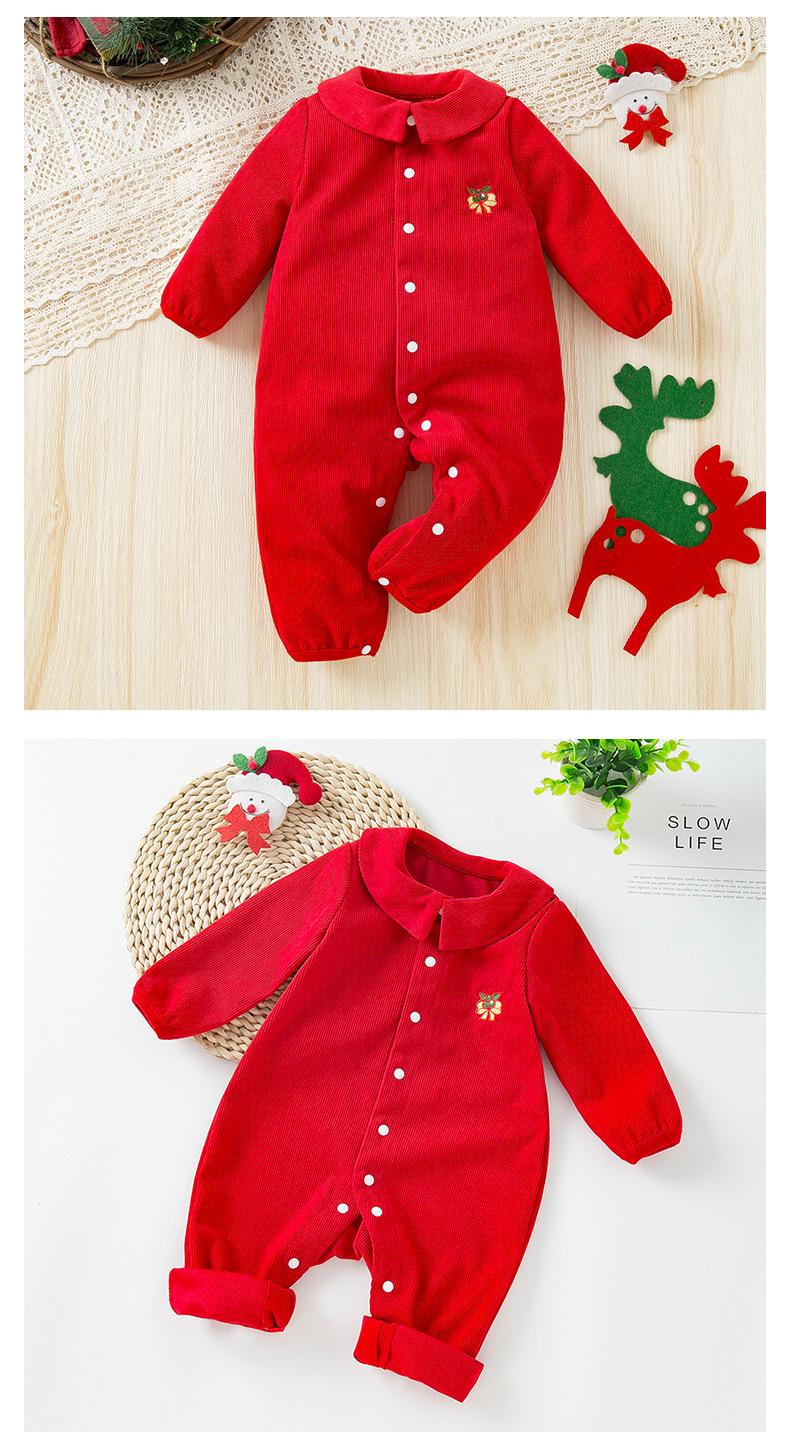 Venta al por mayor de ropa infantil transfronteriza, gran oferta de Amazon, mono navideño para bebé, mono de bebé de manga larga con flores bordadas, moda