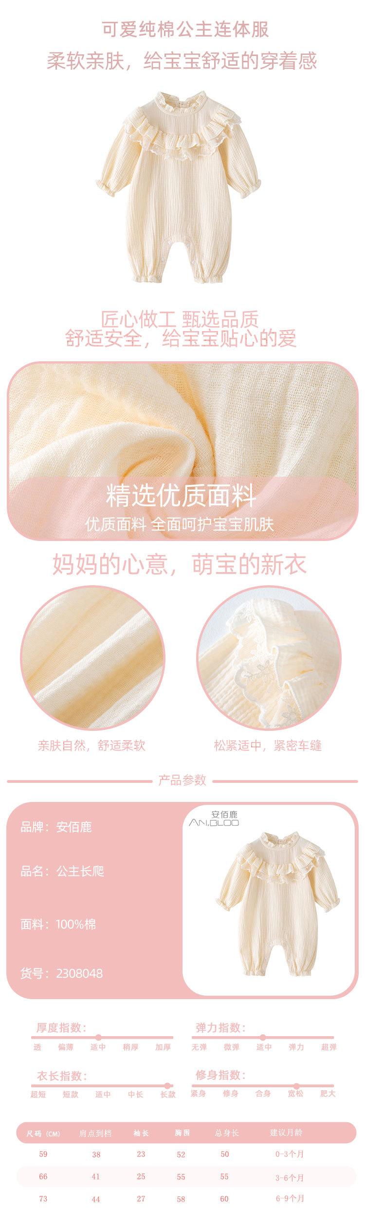 Ropa de primavera y otoño nuevo mameluco de algodón para bebé lindo estilo princesa traje de escalada suave mameluco para niña al por mayor