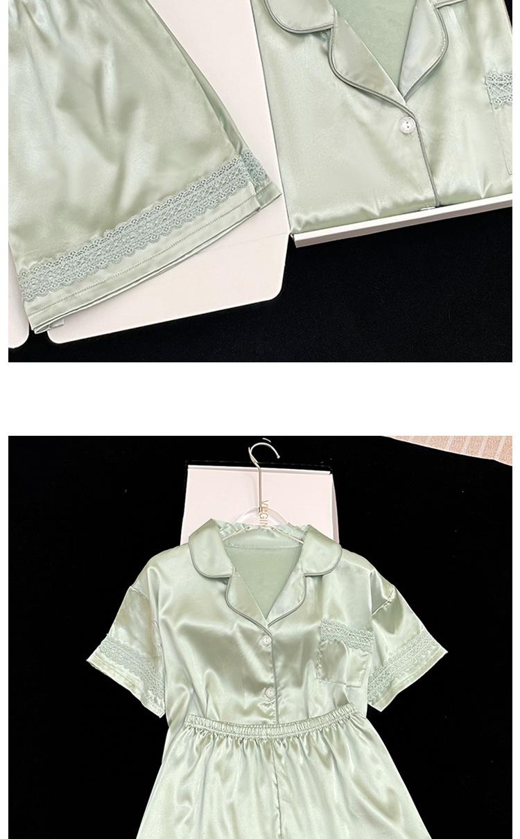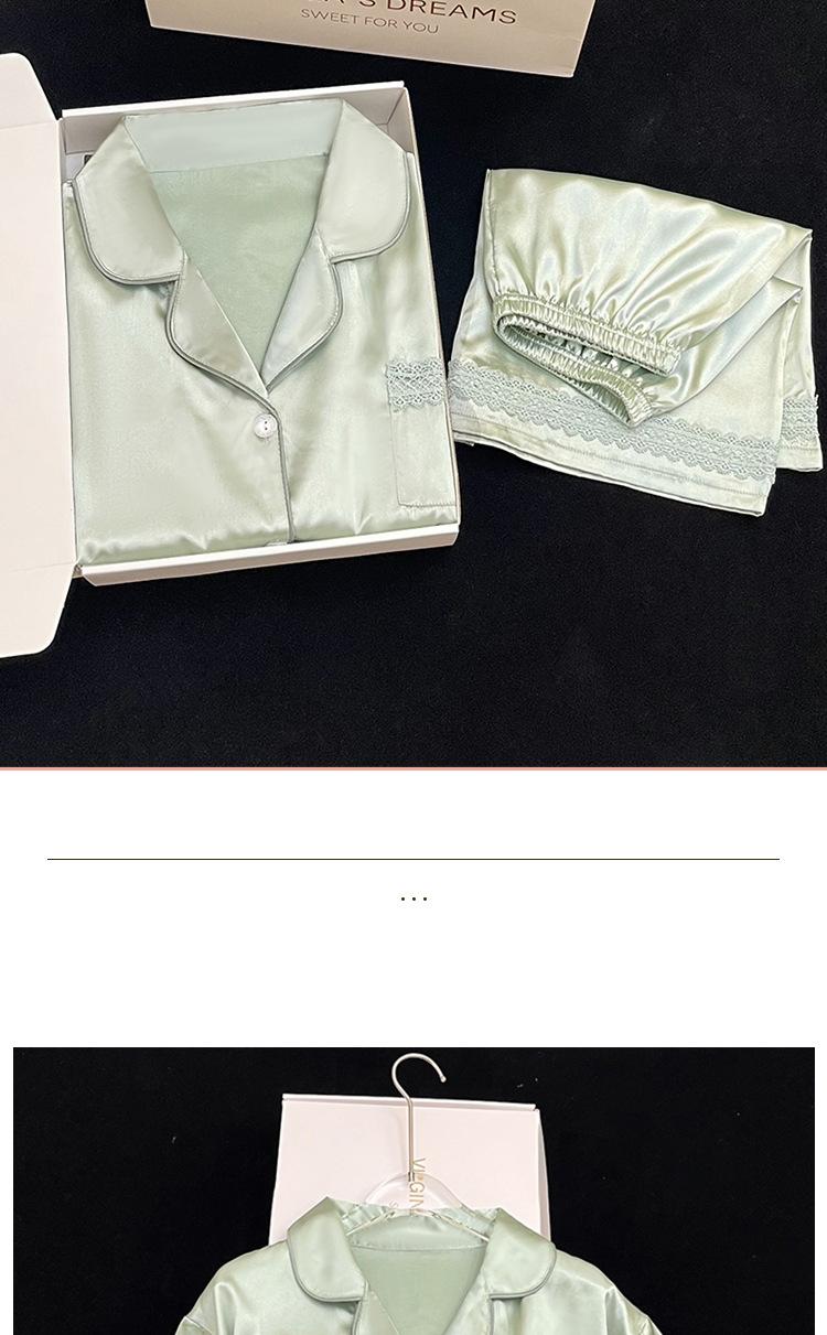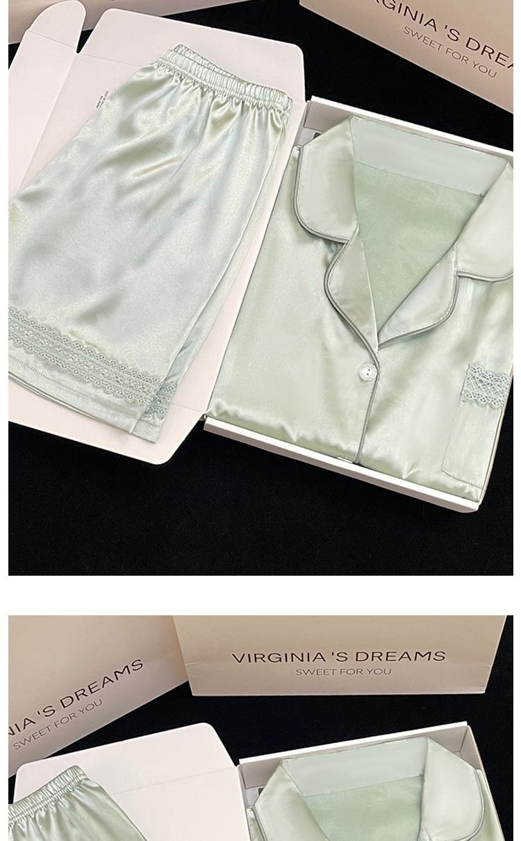 Pijama nuevo de encaje calado de color sólido para verano para mujer, seda de hielo, verano, manga corta, shorts, traje de casa de alta gama al por mayor