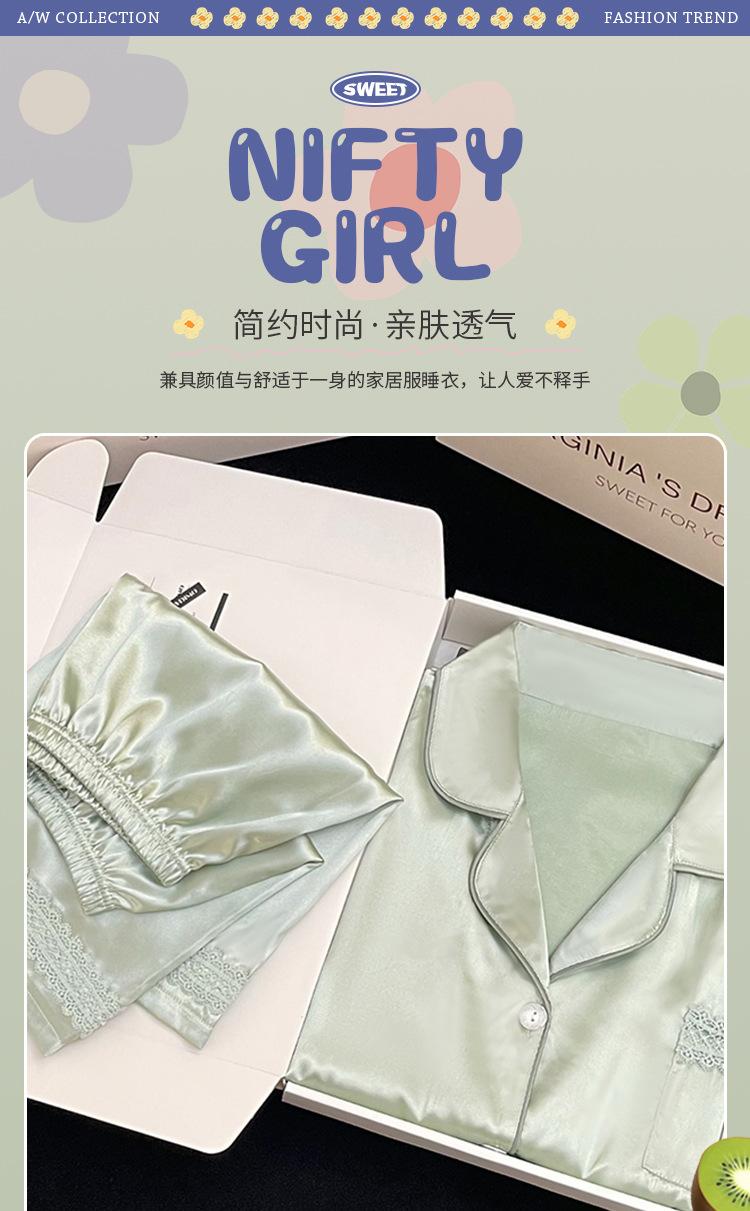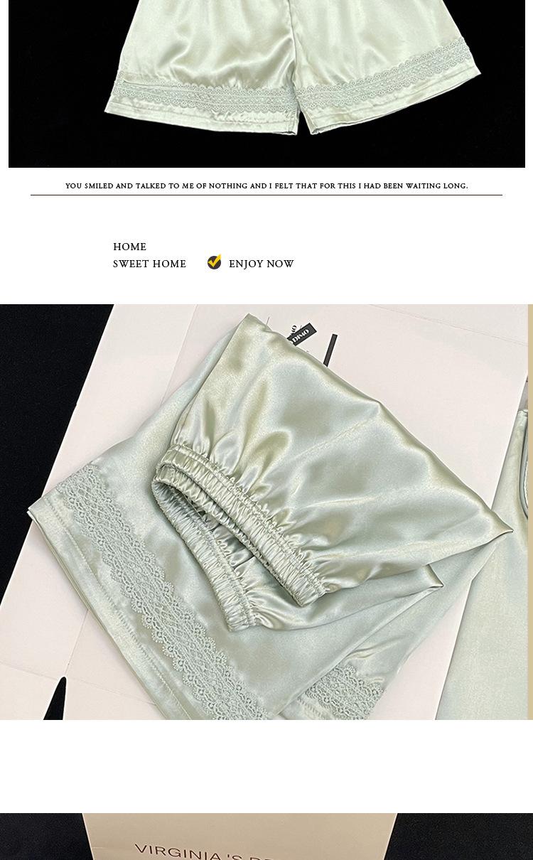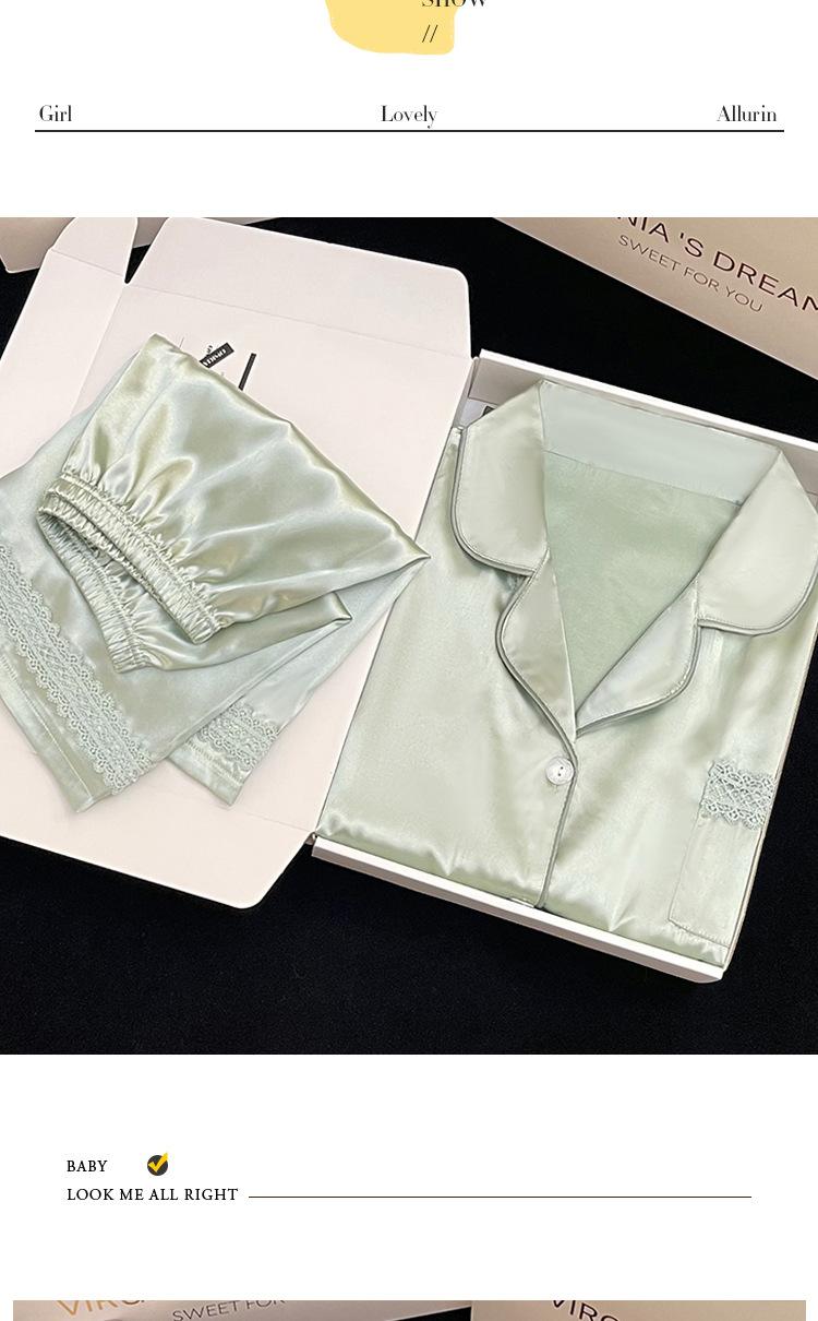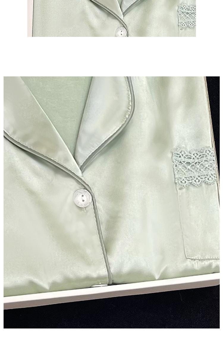 Pijama nuevo de encaje calado de color sólido para verano para mujer, seda de hielo, verano, manga corta, shorts, traje de casa de alta gama al por mayor