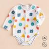 Ropa de bebé, mono triangular de primavera y otoño para bebé, mono estampado de manga larga de algodón para recién nacido, mono sin huesos