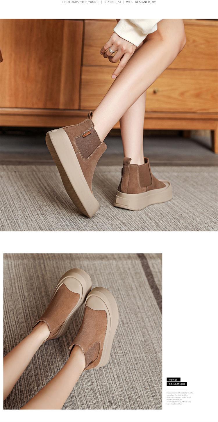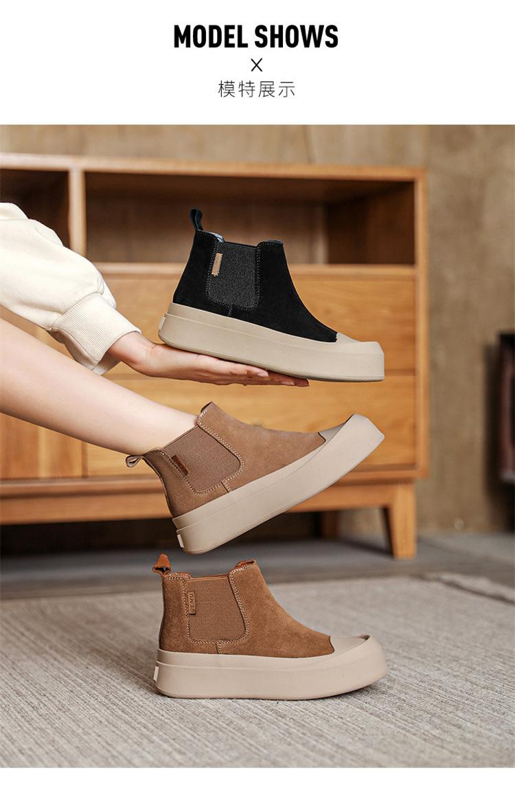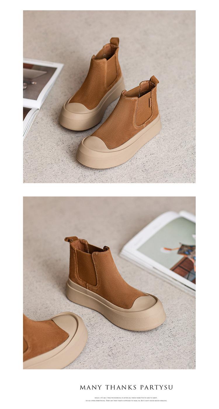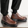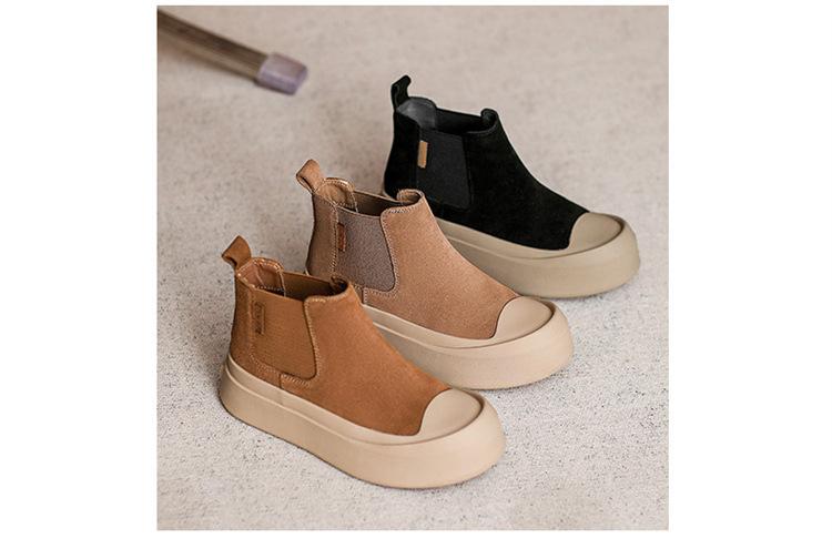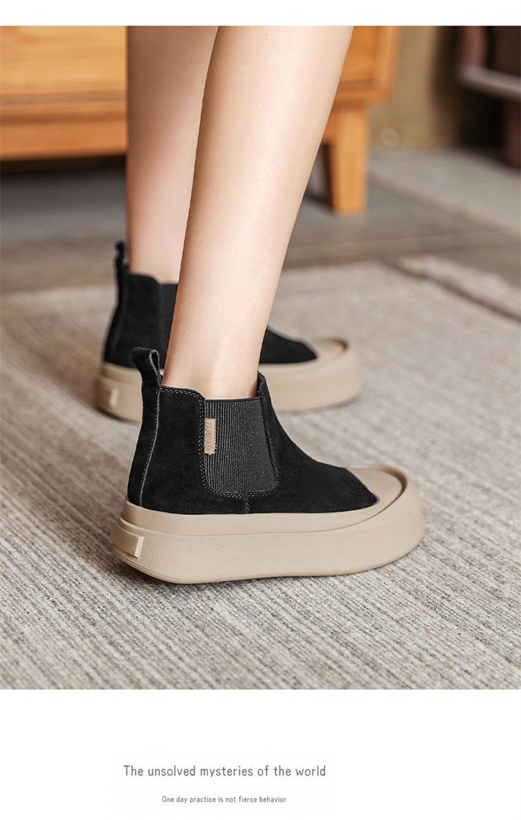 Botines de piel vintage 2023, botines Chelsea de suela gruesa, zapatos casuales planos de caña alta estilo británico, botas de piel de vaca de una sola capa