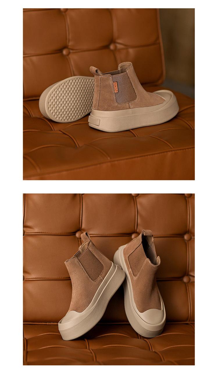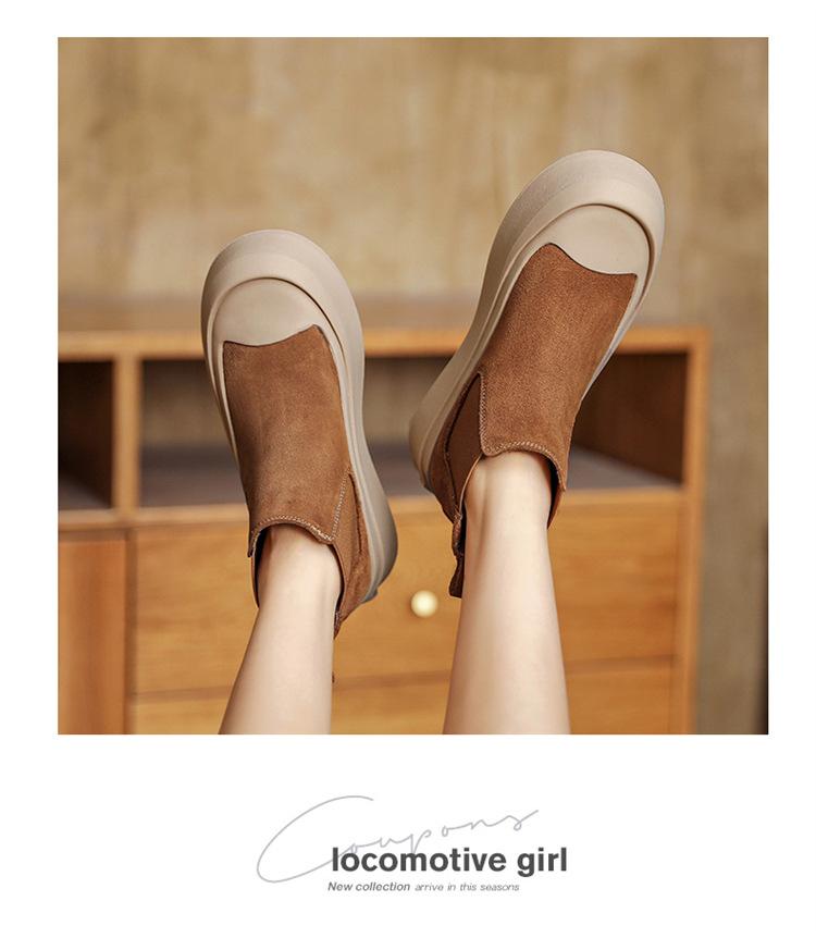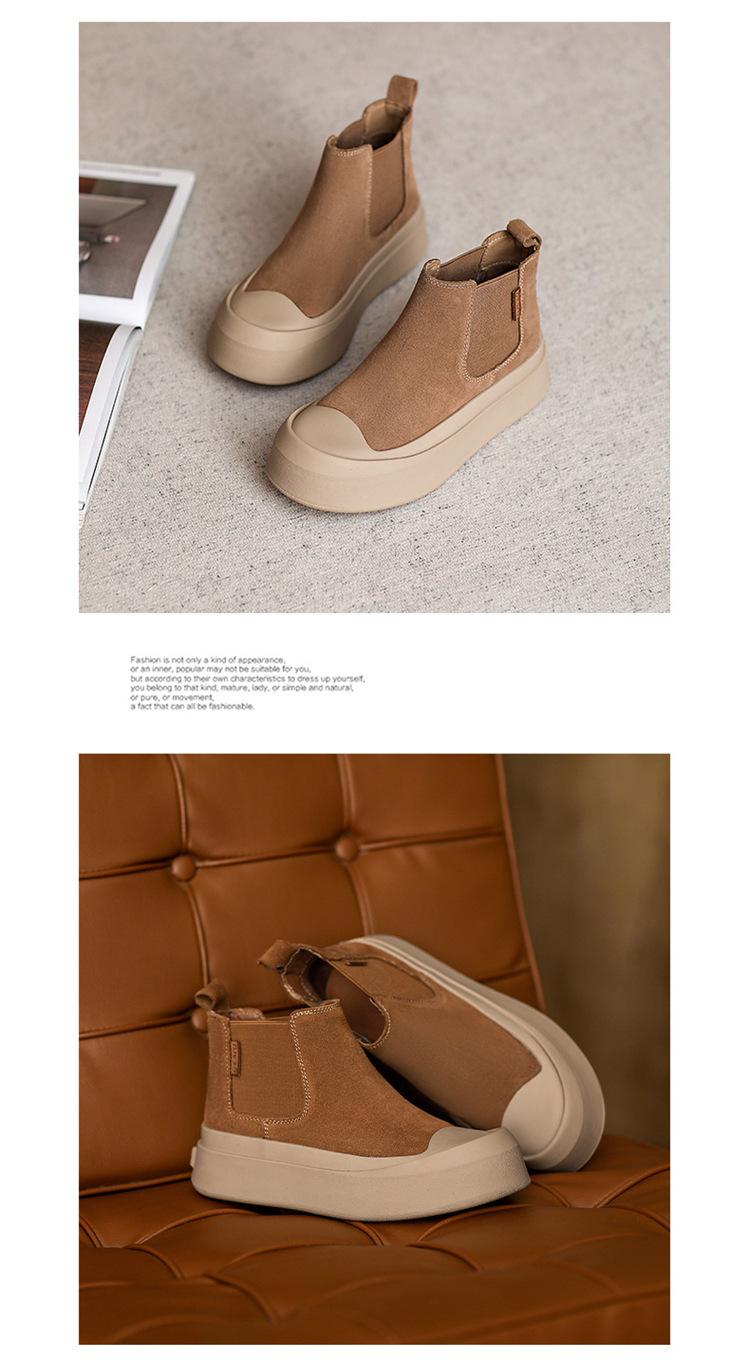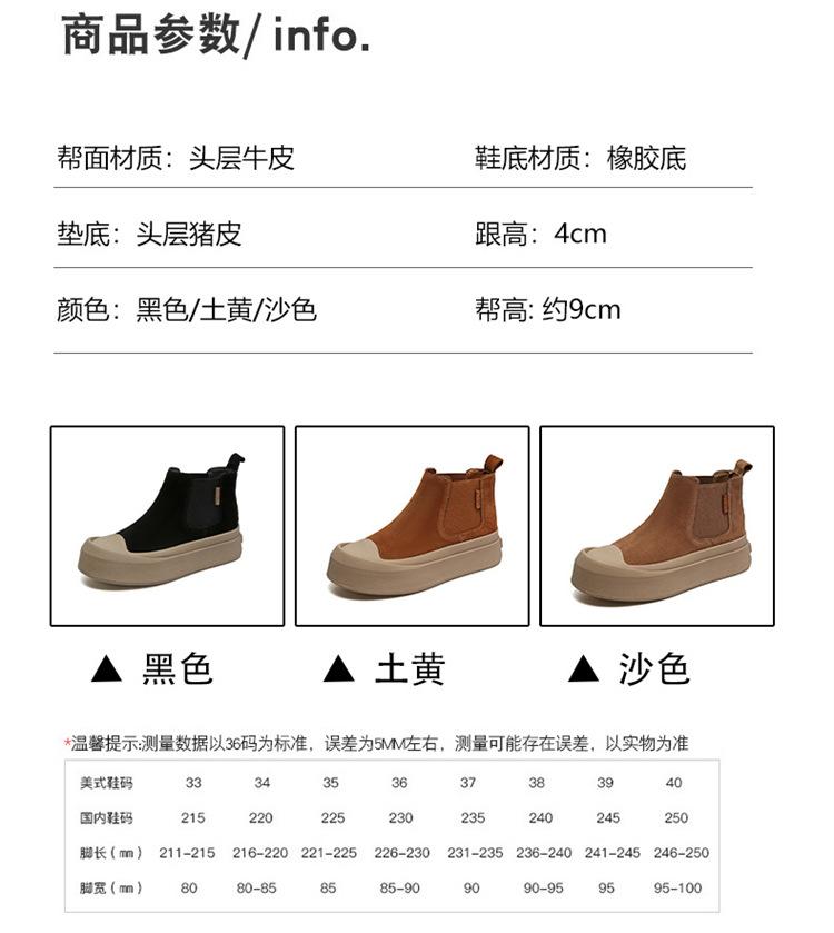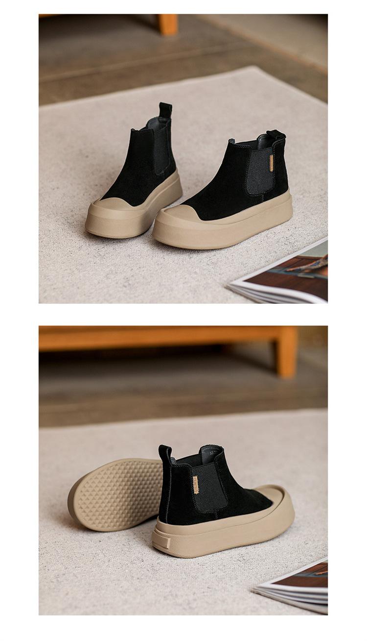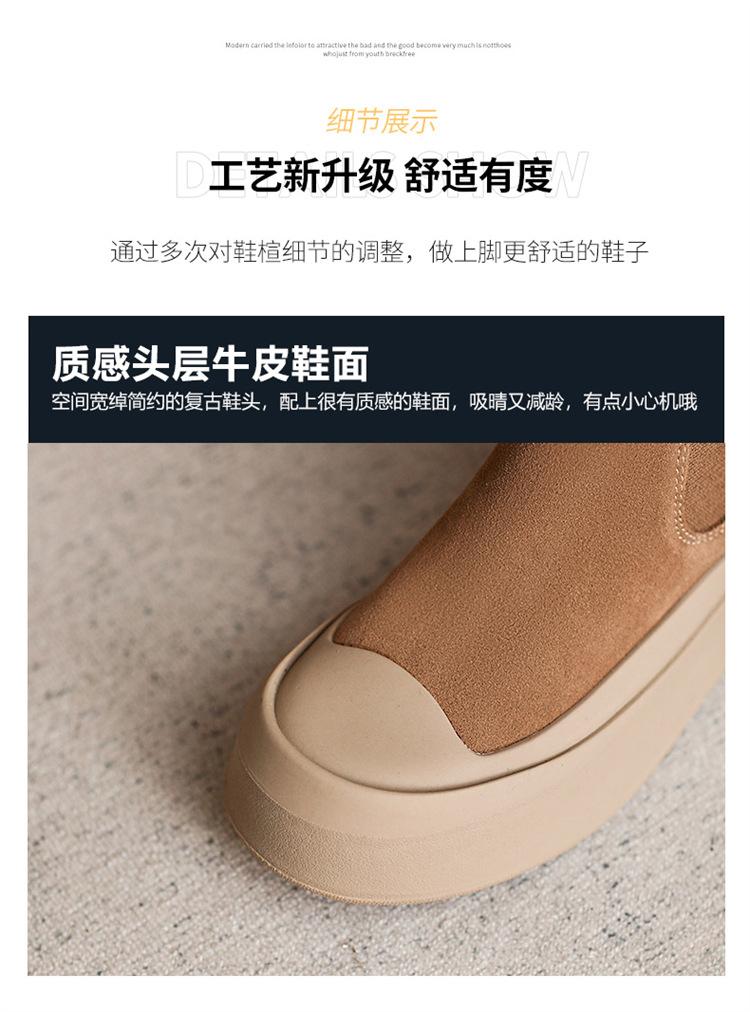 Botines de piel vintage 2023, botines Chelsea de suela gruesa, zapatos casuales planos de caña alta estilo británico, botas de piel de vaca de una sola capa