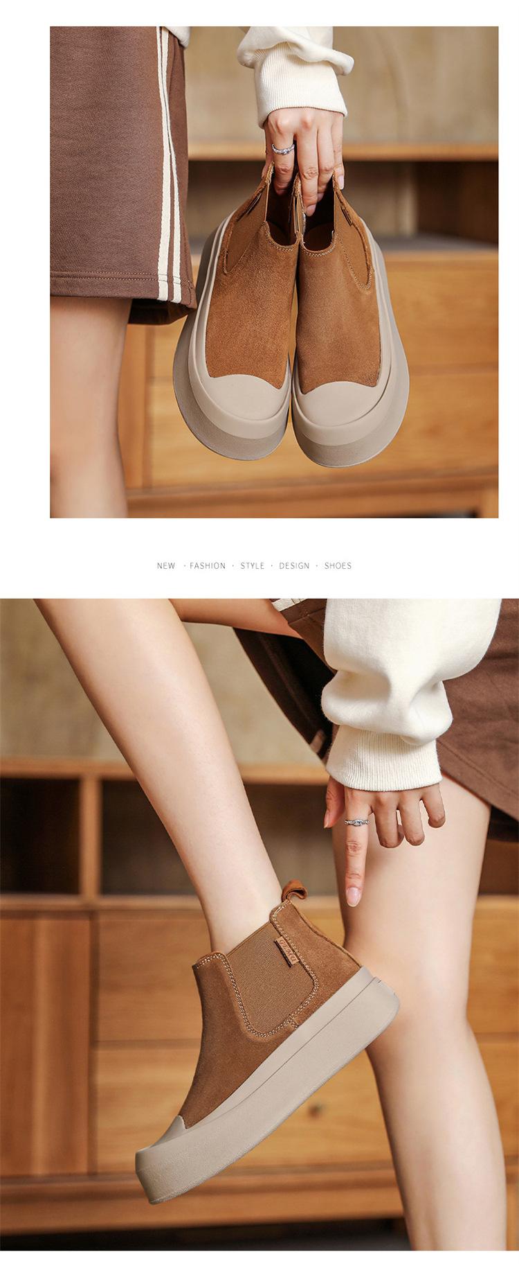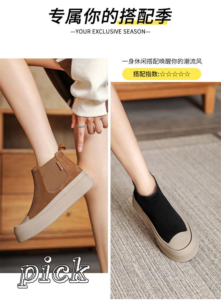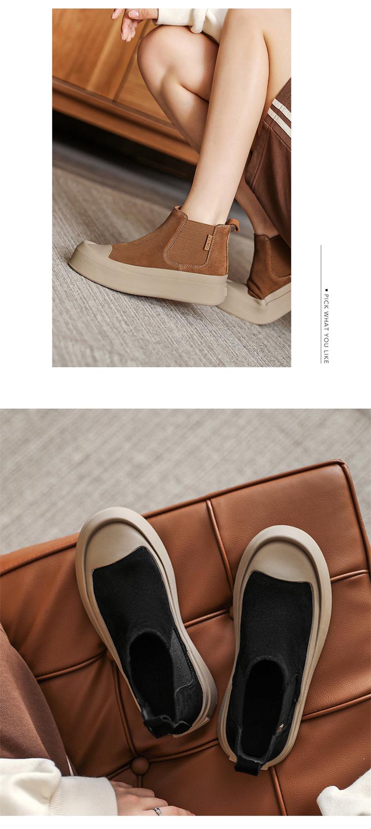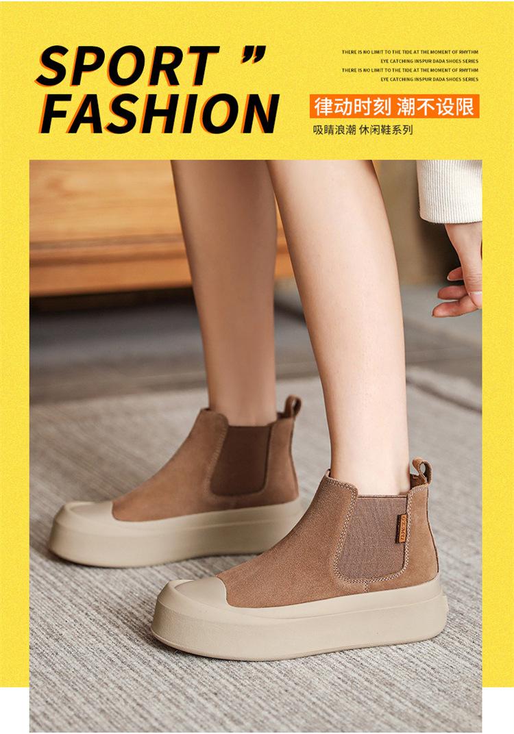 Botines de piel vintage 2023, botines Chelsea de suela gruesa, zapatos casuales planos de caña alta estilo británico, botas de piel de vaca de una sola capa