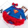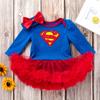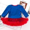 Conjunto de dos piezas de mameluco de falda de manga larga azul para bebé niña de 0 a 2 años, traje mameluco fábrica mayoreo