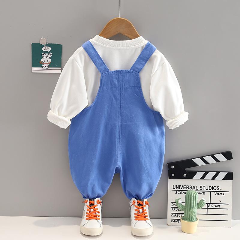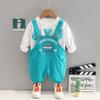 Traje de bebé de dos piezas informal con tirantes de dibujos animados para niños, primavera y otoño de 2023, manga larga