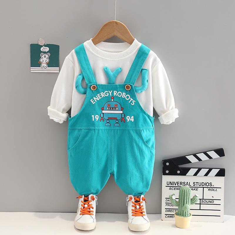 Long-sleeved robot digital suspenders two-piece blue, Long-sleeved robot digital suspenders two-piece green