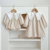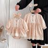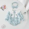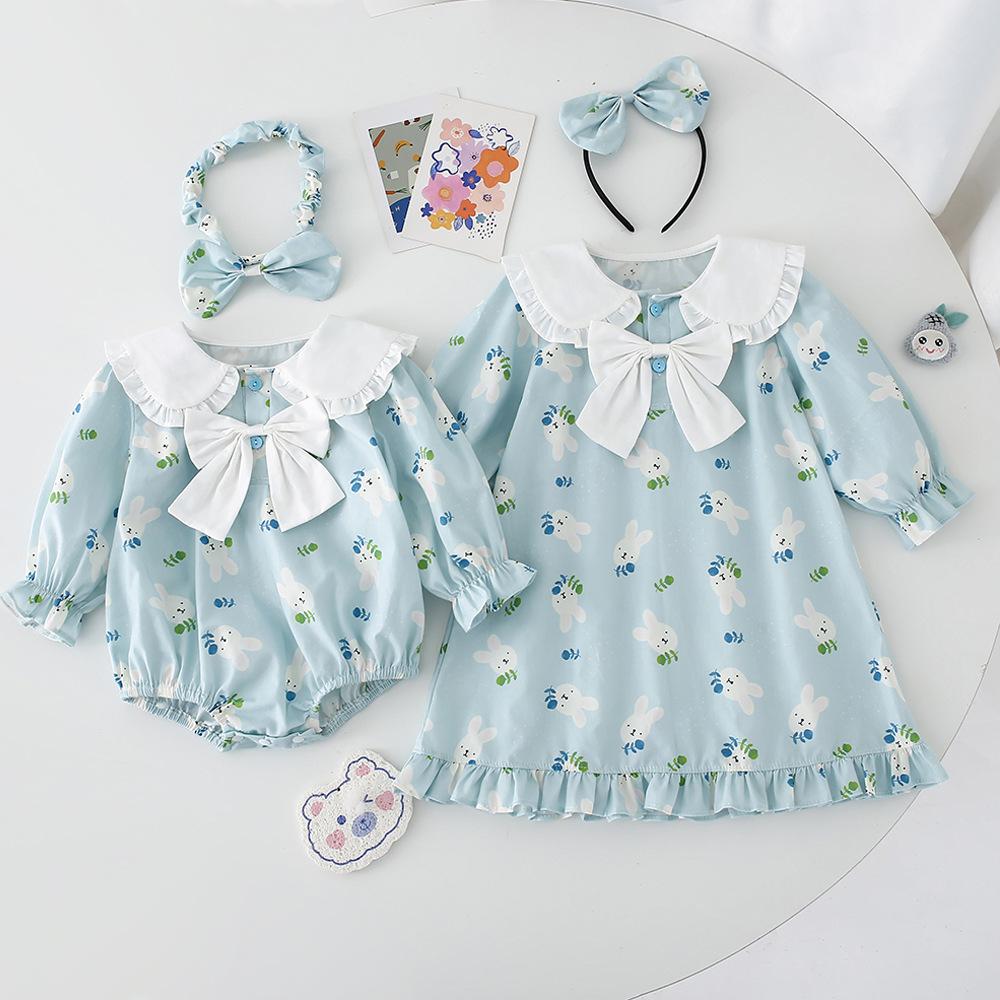 Ropa de Bebé Otoño 2025 Nuevo Mameluco Azul de Manga Larga Vestido de Una Pieza para Niña Conjunto de Hermanas Niños