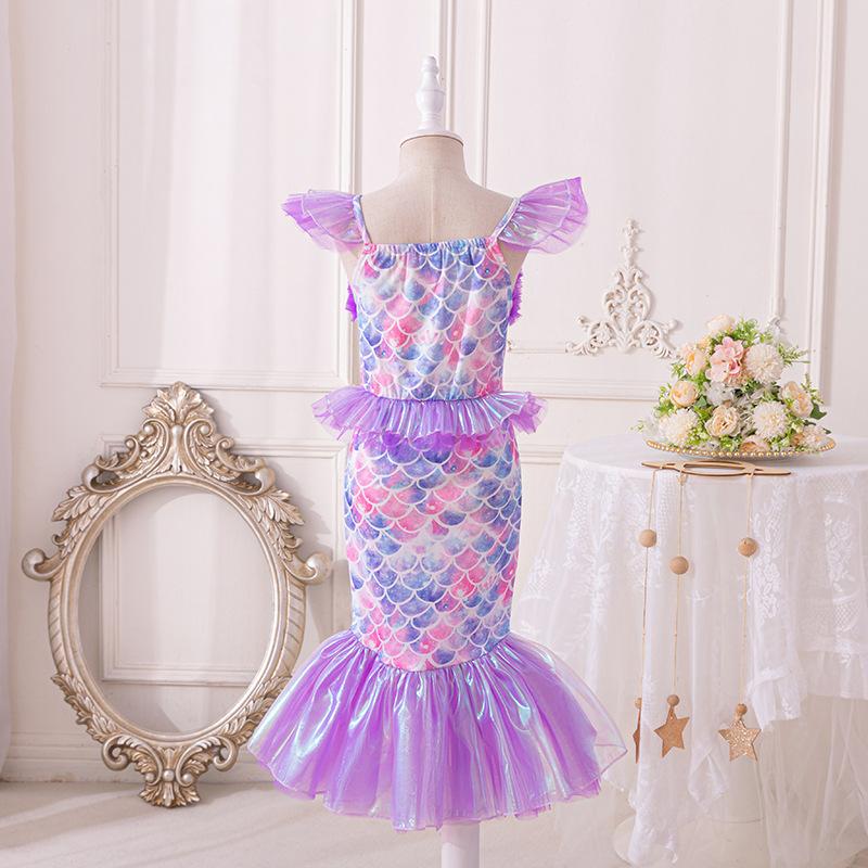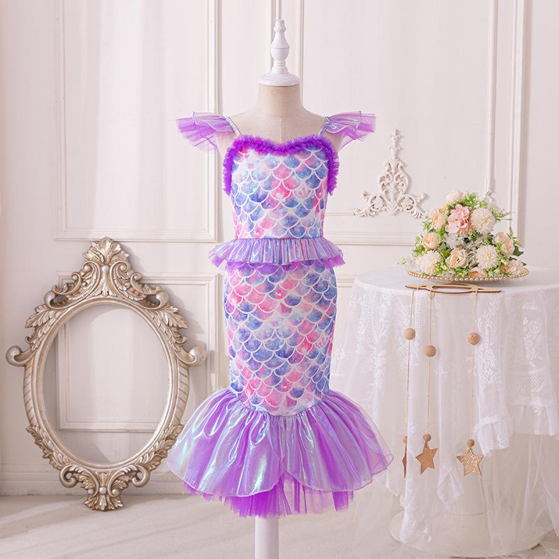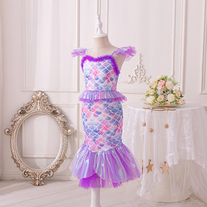 Disfraz de Halloween Europeo y Americano Transfronterizo Vestido de Princesa Sirena Vestido de Show de Cumpleaños para Niñas Vestido de Cosplay Vestido