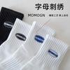 Calcetines Deportivos Bordados Blancos para Hombre Zhuji Algodón Desodorante Color Sólido Calle Pareja Cuatro Estaciones Media Caña Calcetines Deportivos