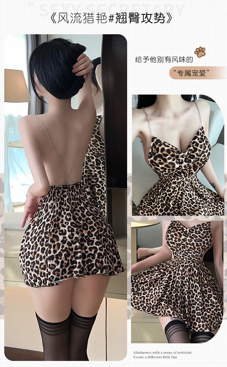 Lencería sexy, pijama con estampado de leopardo, tentación, traje de pasión sexy, uniforme de coqueteo libre, generación femenina, cabello 8411