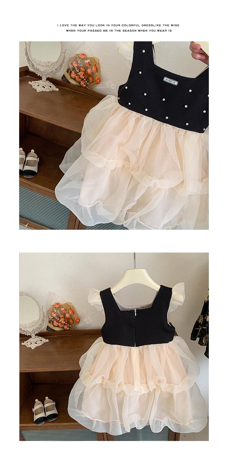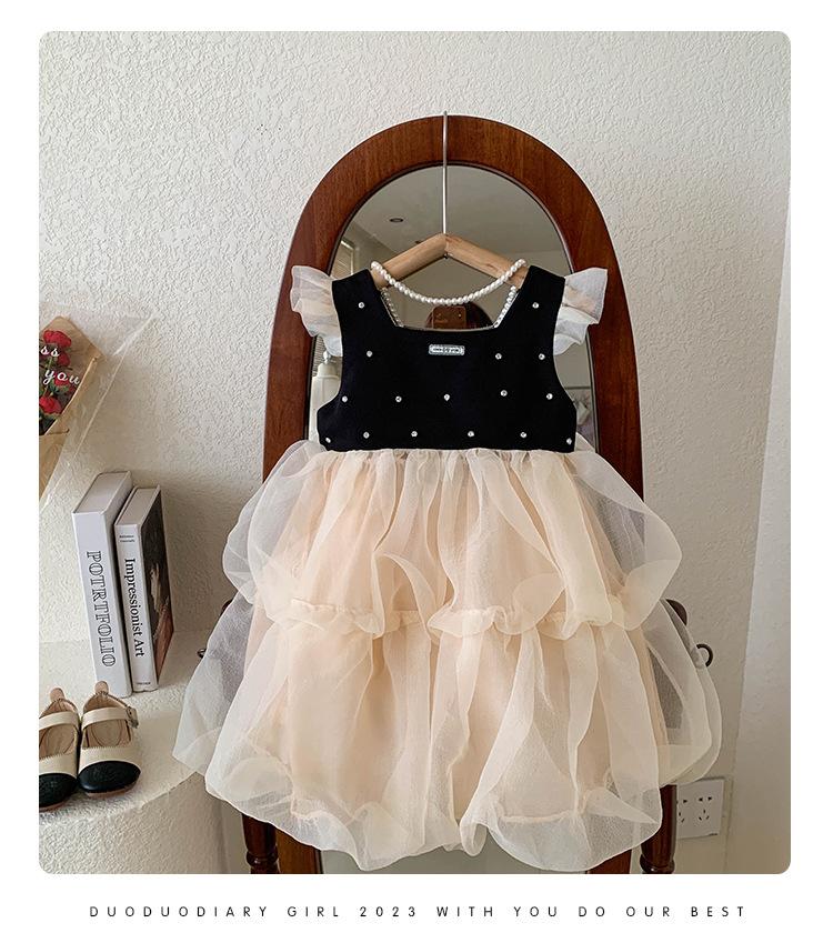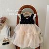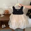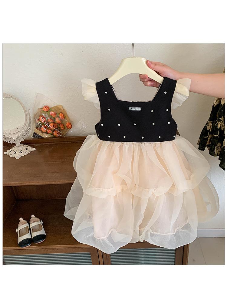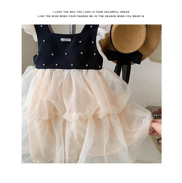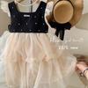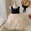 Vestido de Verano para Niñas 2024 Nuevo Lunares Cuello Cuadrado Camiseta sin Mangas Niñas Estilo Dulce Falda de Pastel Falda Infantil
