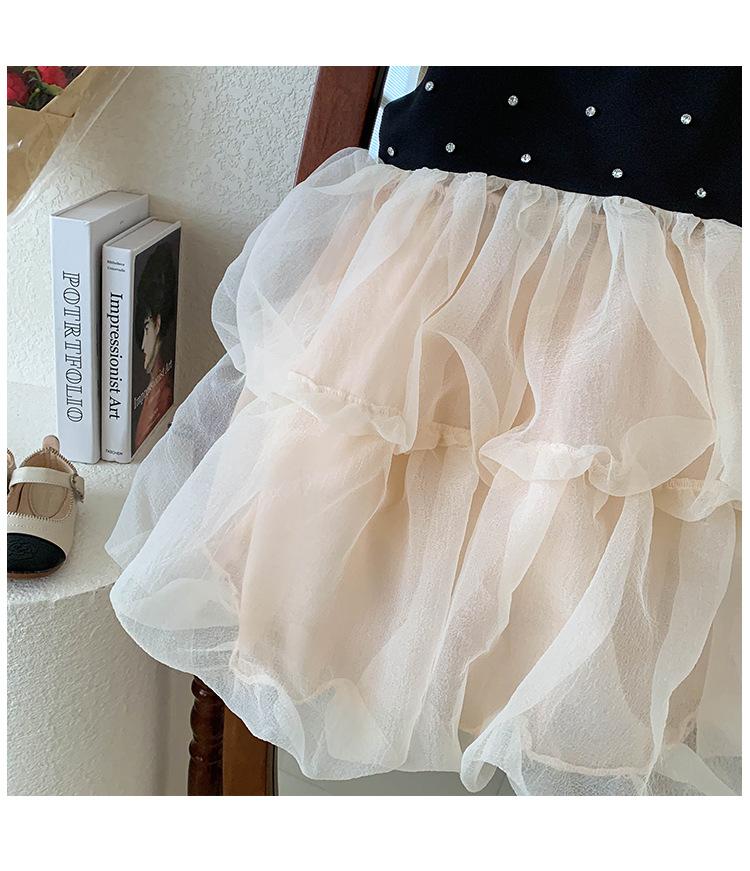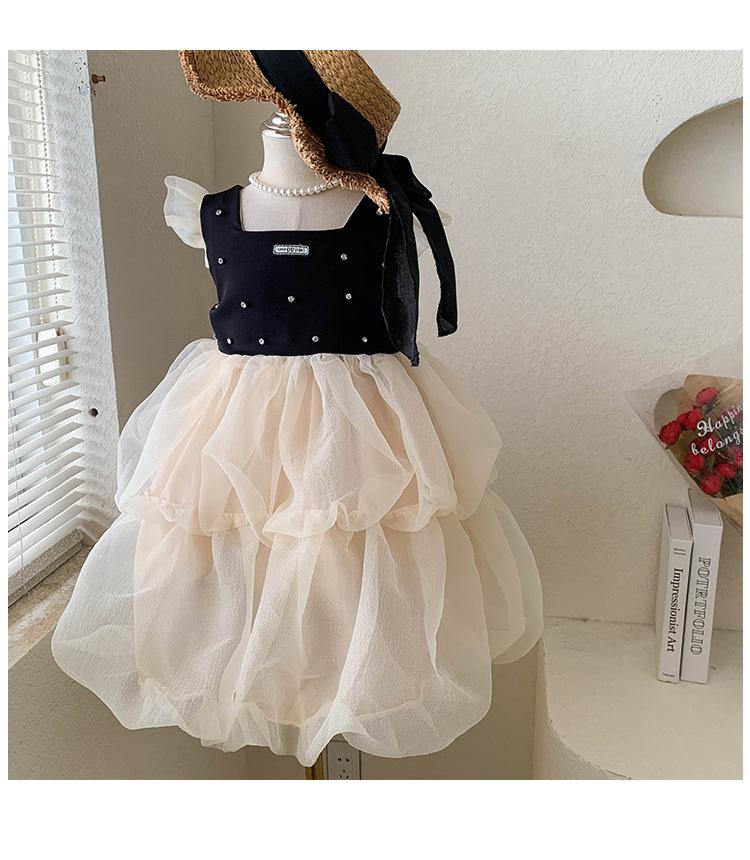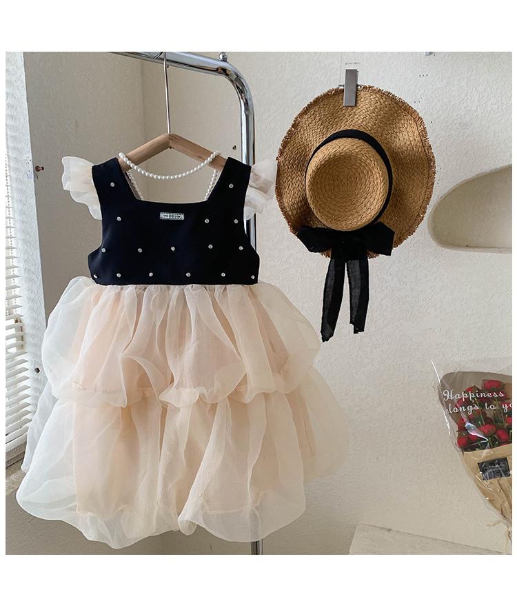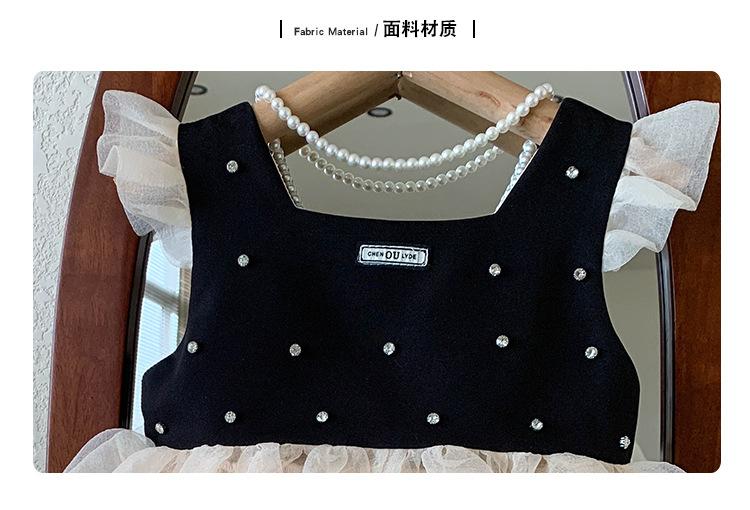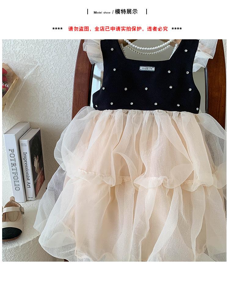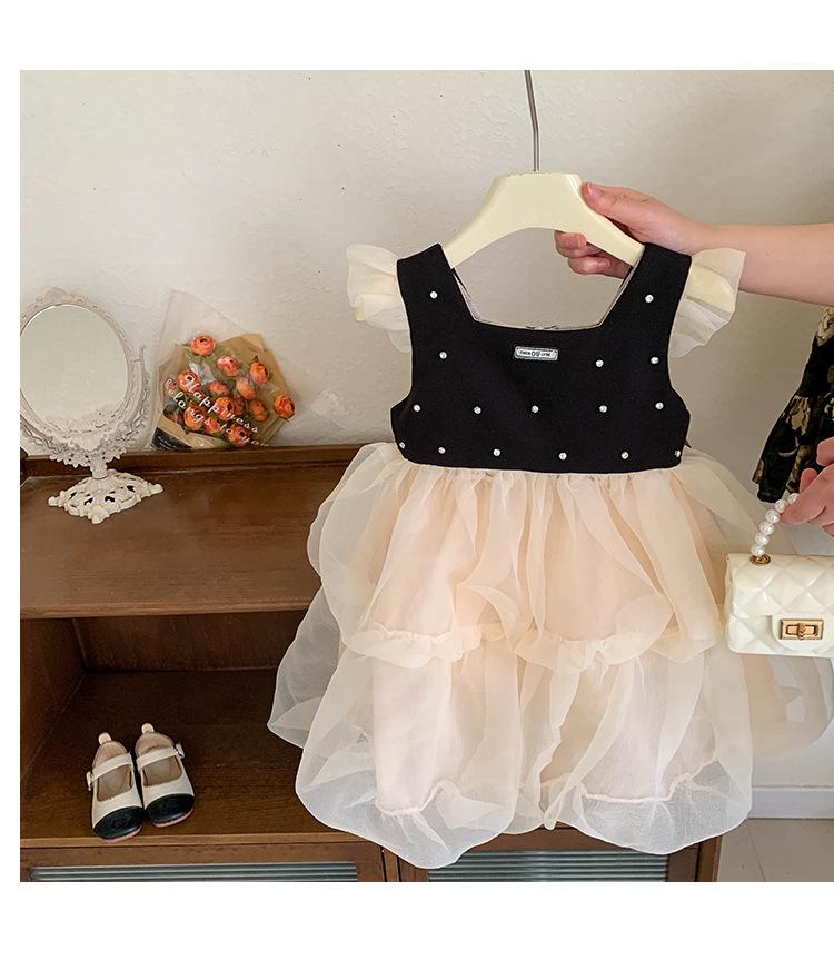 Vestido de Verano para Niñas 2024 Nuevo Lunares Cuello Cuadrado Camiseta sin Mangas Niñas Estilo Dulce Falda de Pastel Falda Infantil