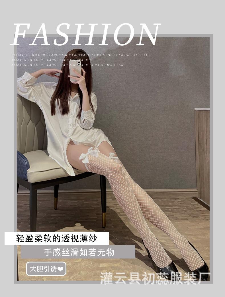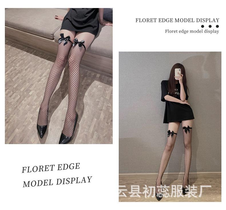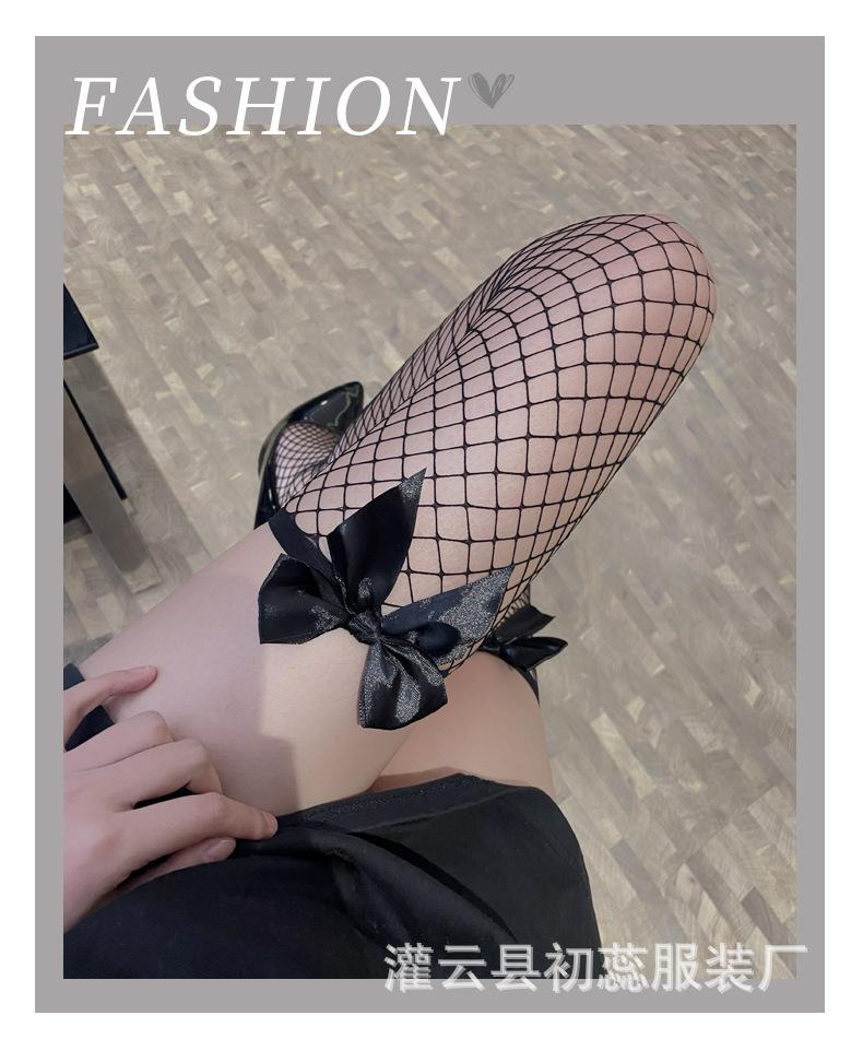 Calcetines altos de malla sexys hasta la rodilla, lindos calcetines de red con lazo, calcetines de red con pasión caliente, venta al por mayor