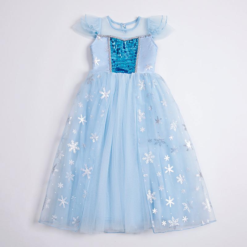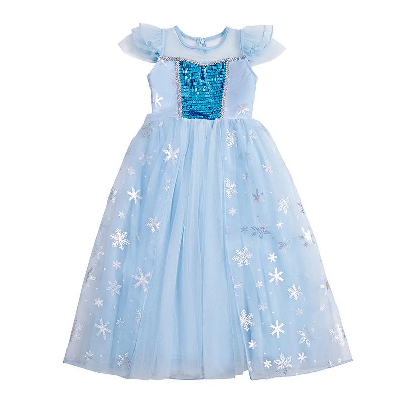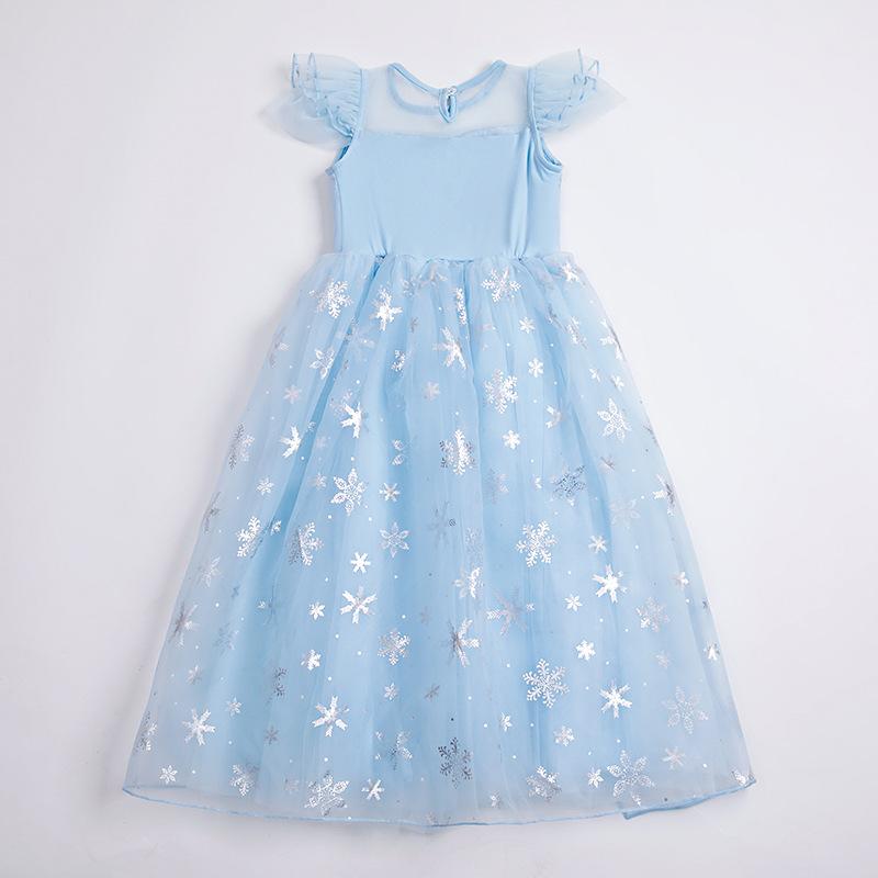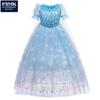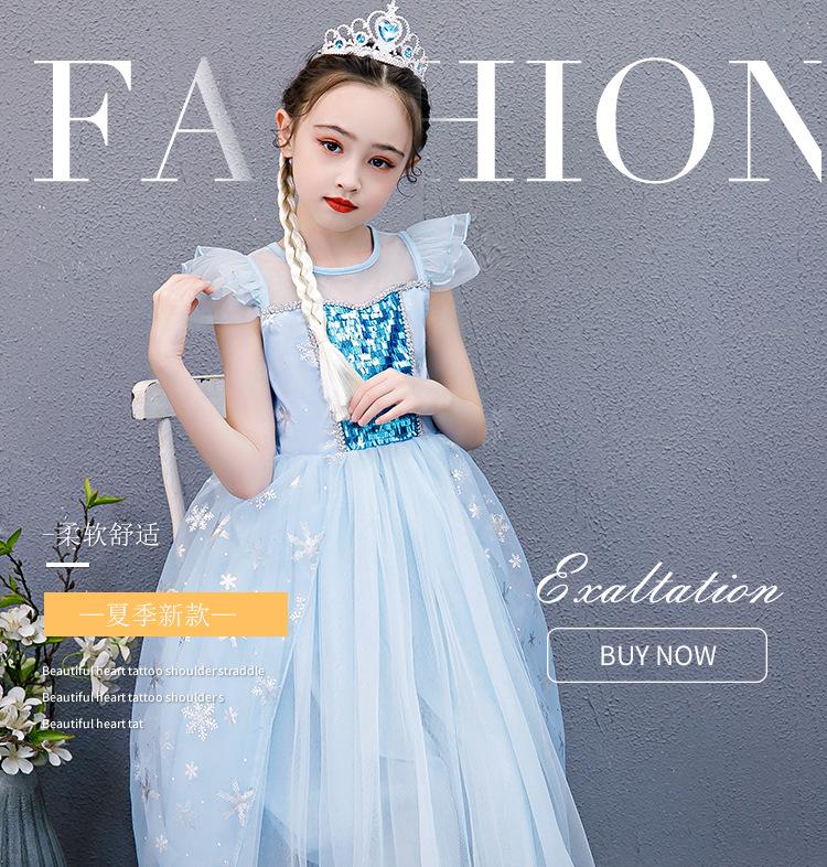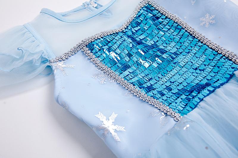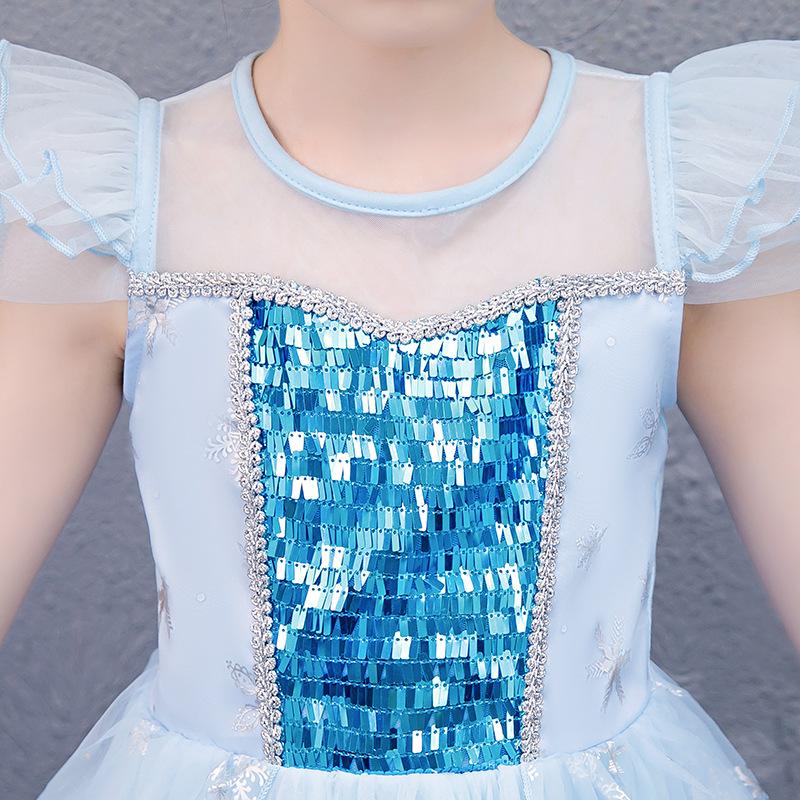 Vestido de princesa Elsa de Frozen de manga corta colorido, ropa infantil de comercio exterior, vestido de niña, disfraz de actuación para el Día del Niño