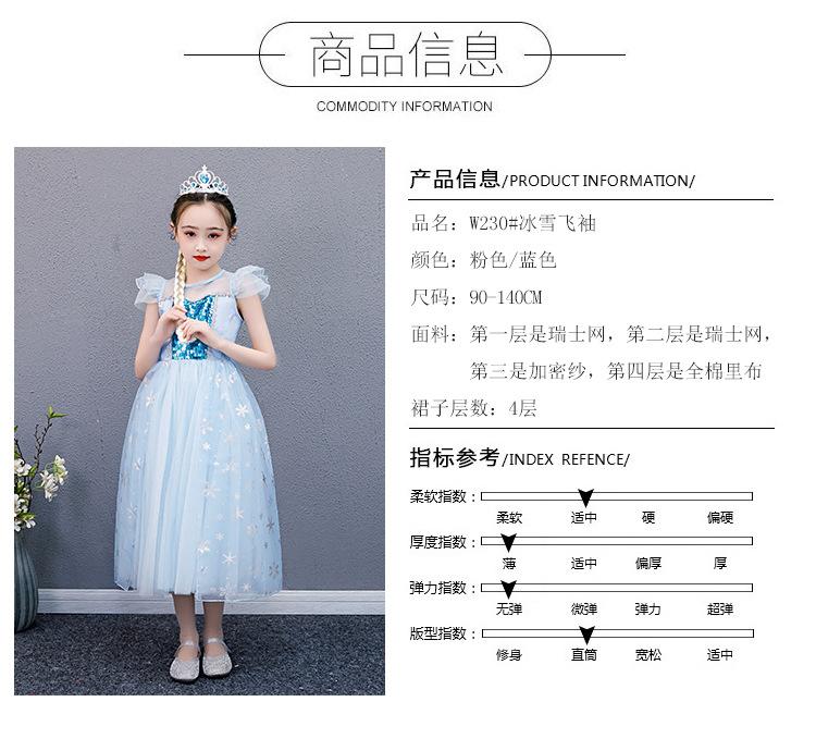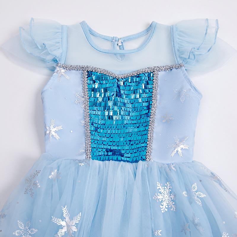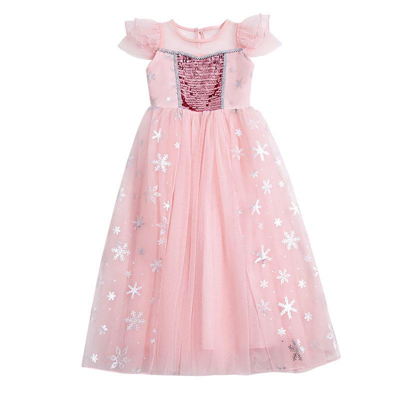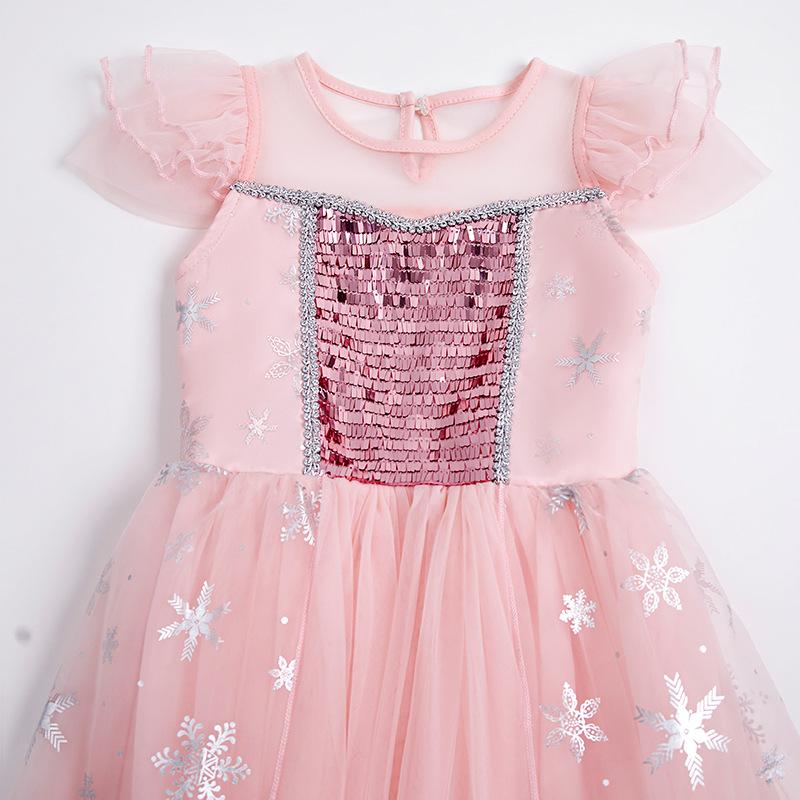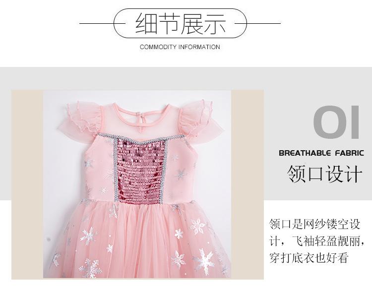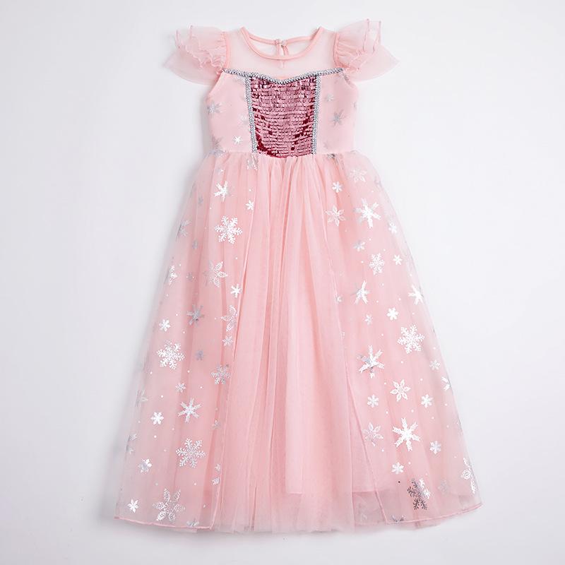 Vestido de princesa Elsa de Frozen de manga corta colorido, ropa infantil de comercio exterior, vestido de niña, disfraz de actuación para el Día del Niño