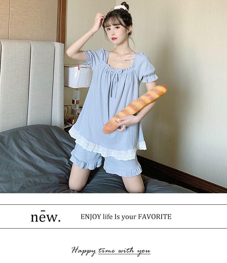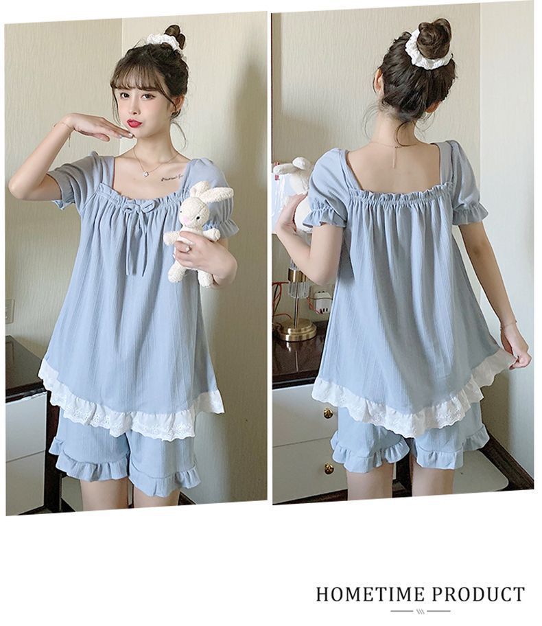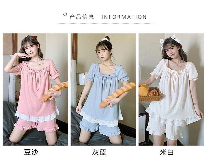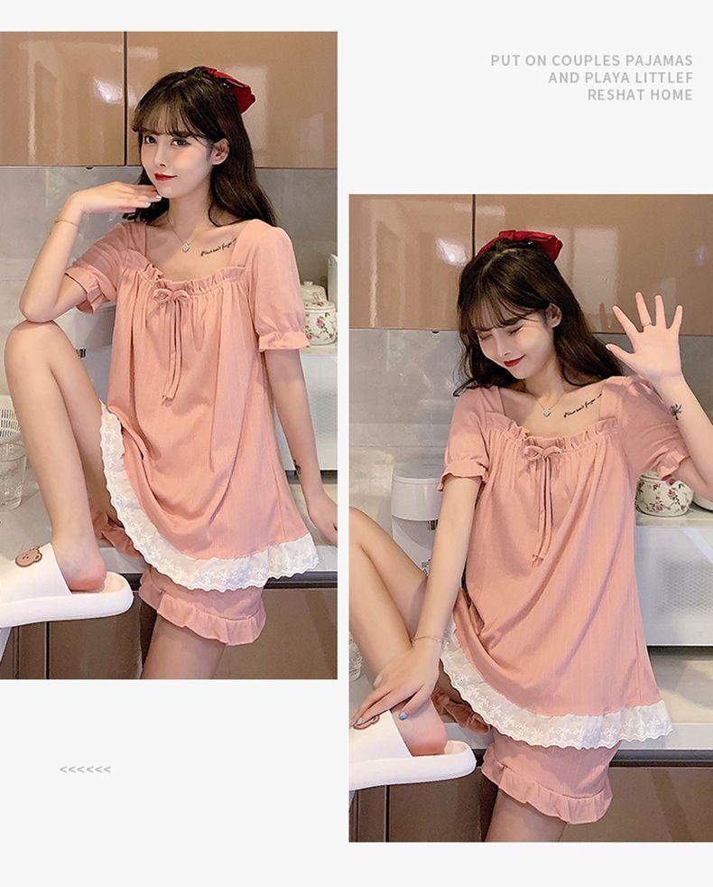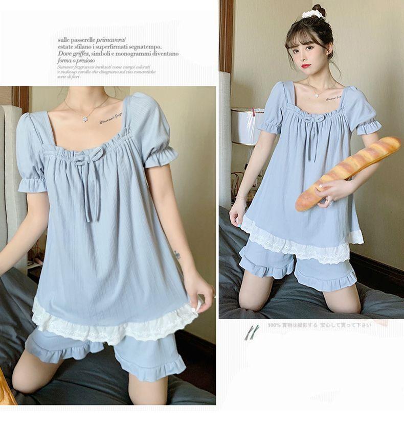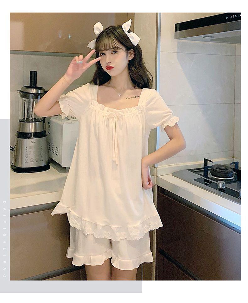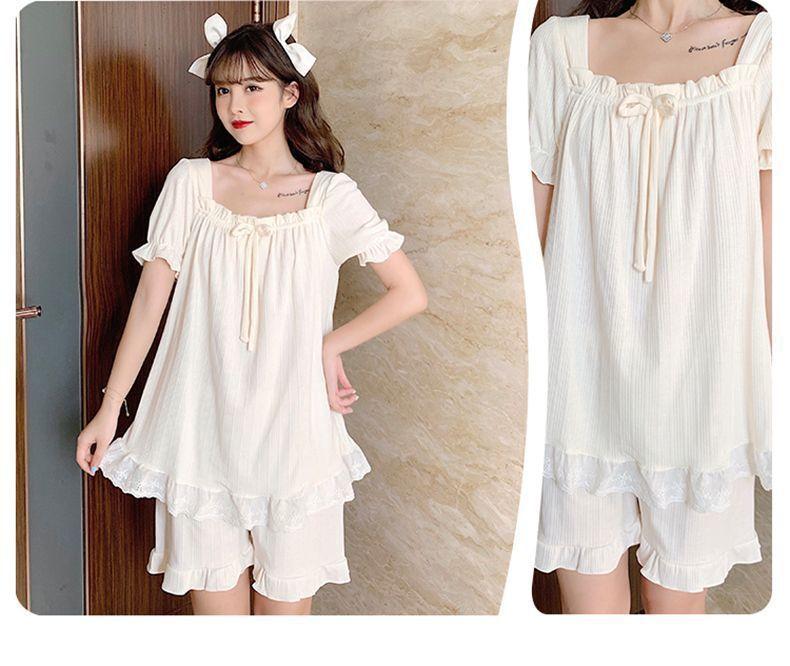 Pijamas de verano 2024 para mujer, pantalones cortos de algodón de manga corta, dos piezas, bonito conjunto de princesa, ropa para el hogar