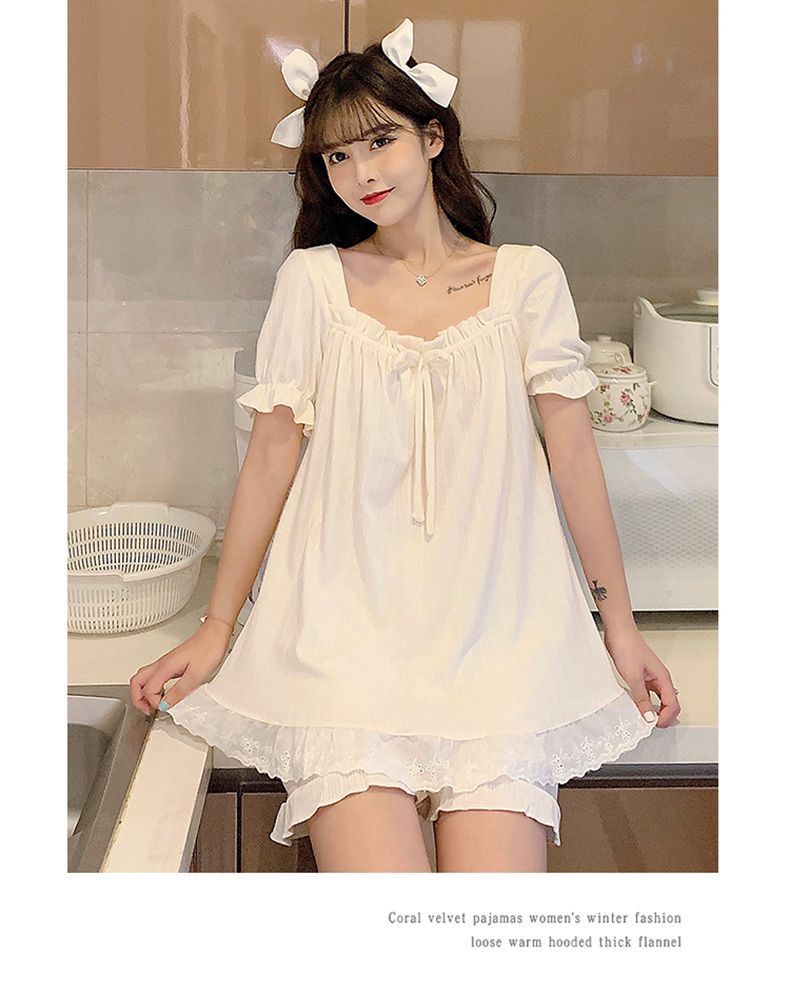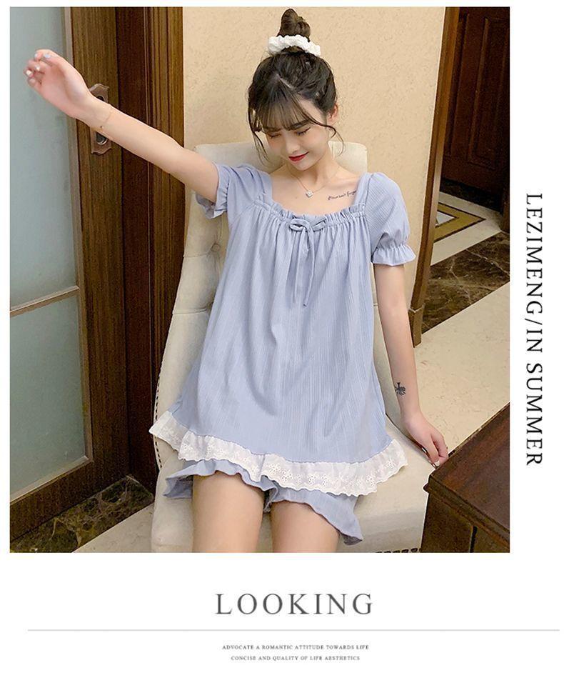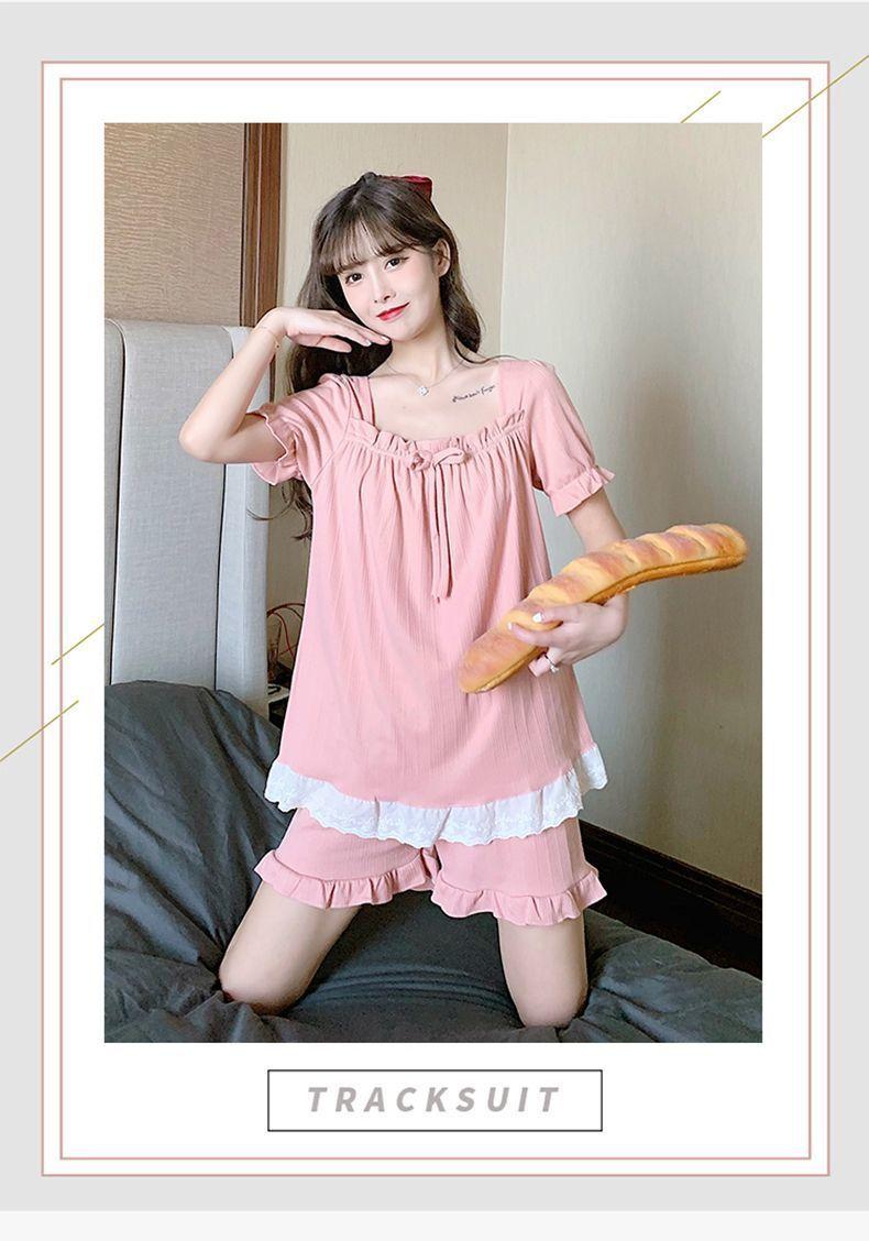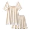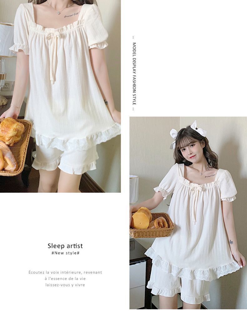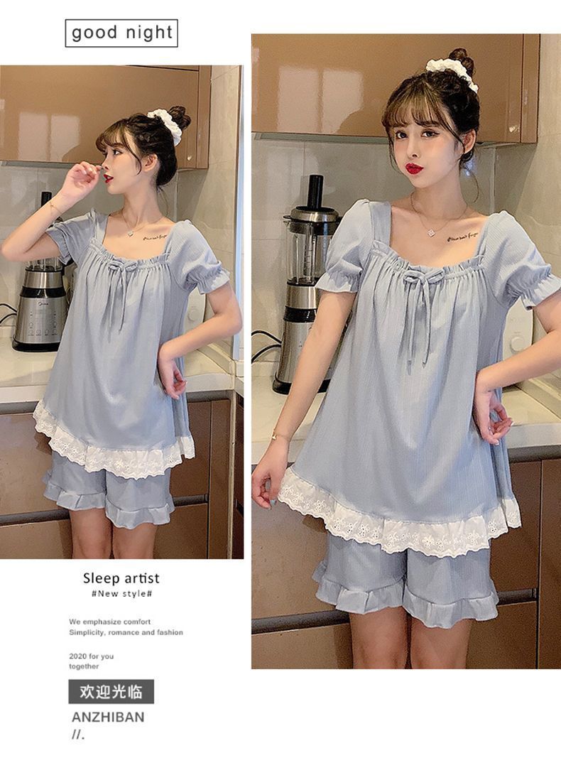 Pijamas de verano 2024 para mujer, pantalones cortos de algodón de manga corta, dos piezas, bonito conjunto de princesa, ropa para el hogar