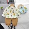 Traje de camisa de otoño para bebé 2023 nuevo conjunto de dos piezas de camisa de manga larga de dibujos animados de primavera y otoño para niño, entrega de una pieza