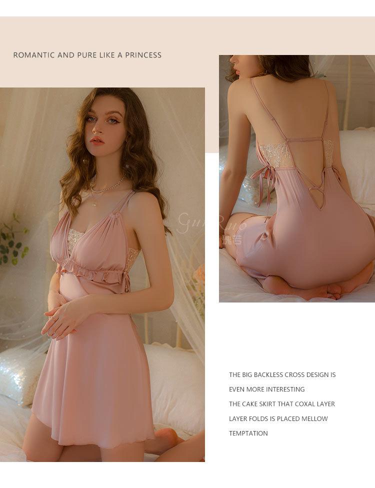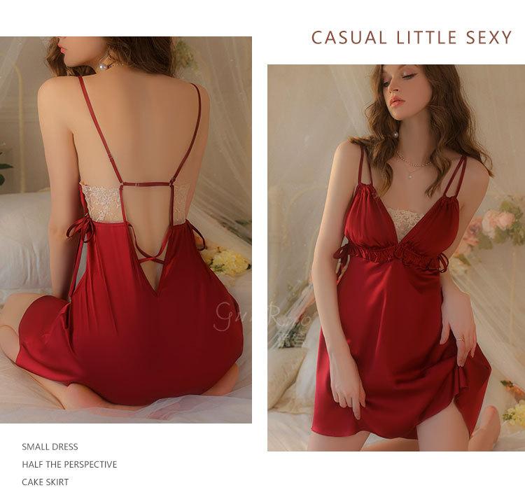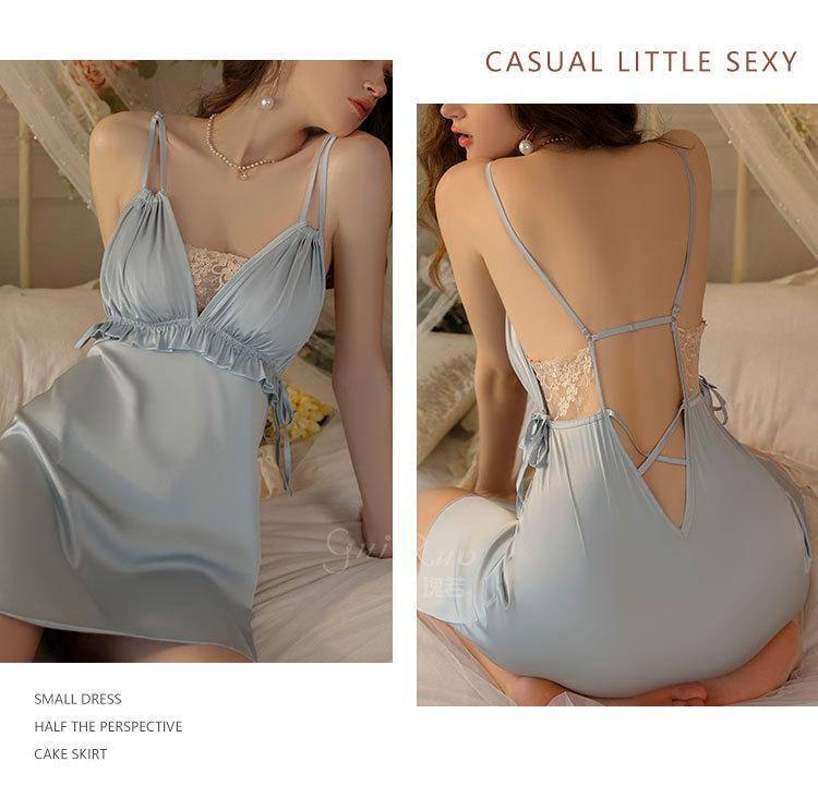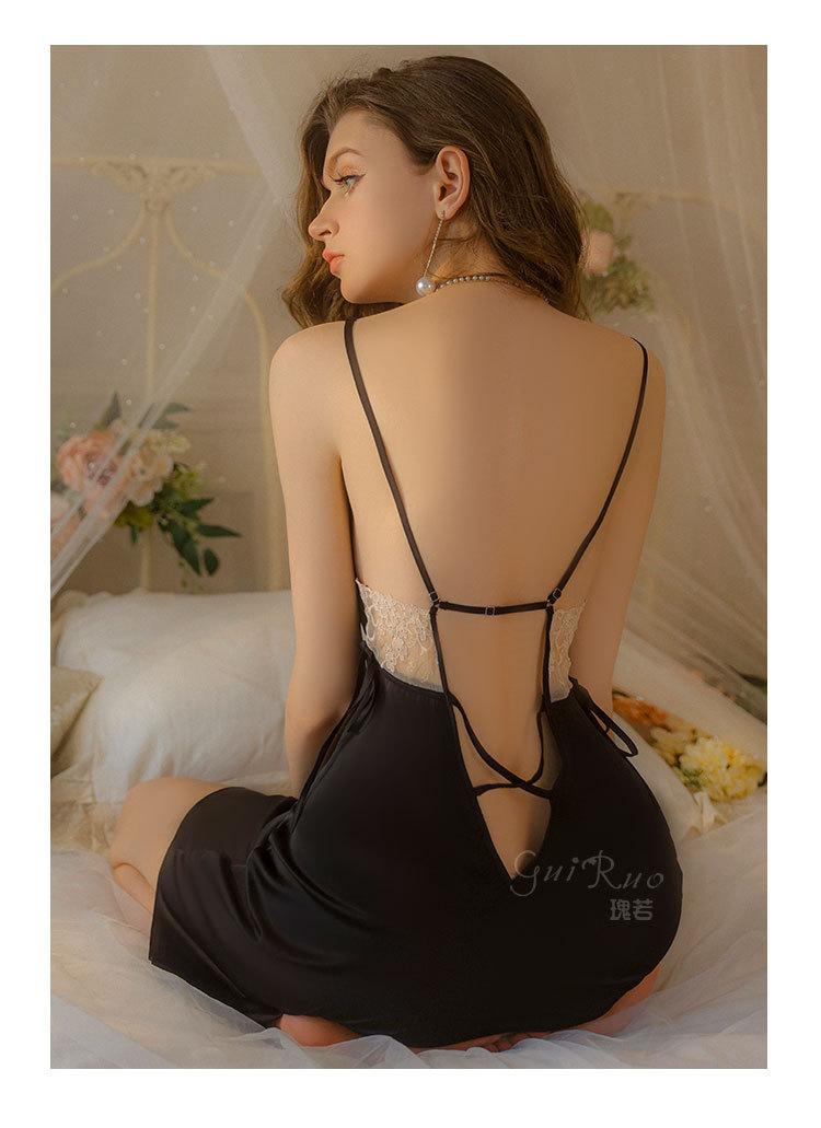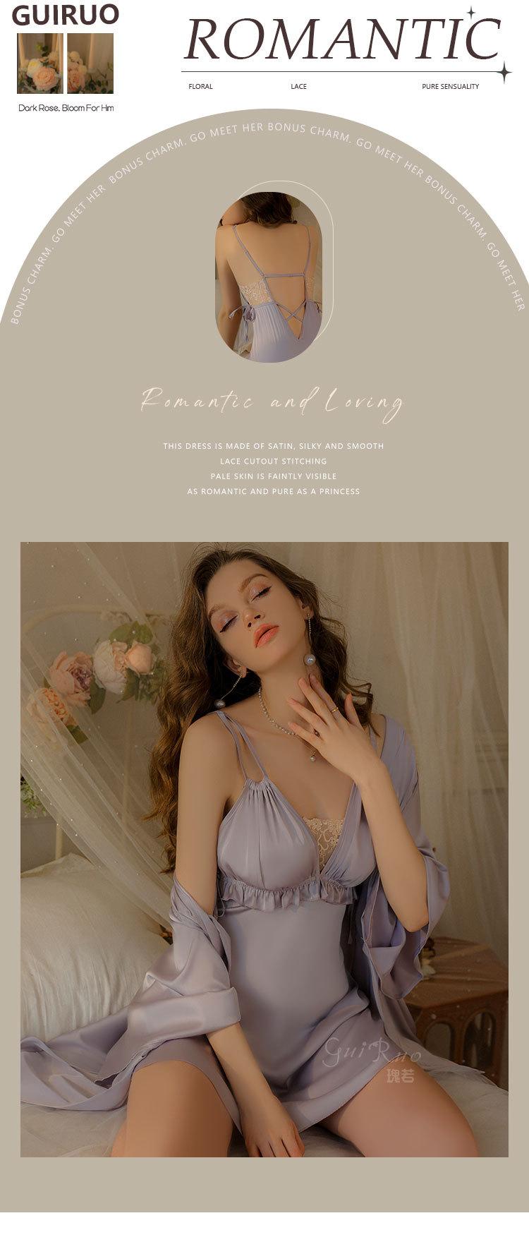 Camisón Ruoruo de satén con cordón ajustable y costuras push up de encaje sexy con tirantes y espalda descubierta para mujer, bata exterior para estar en casa, 3210