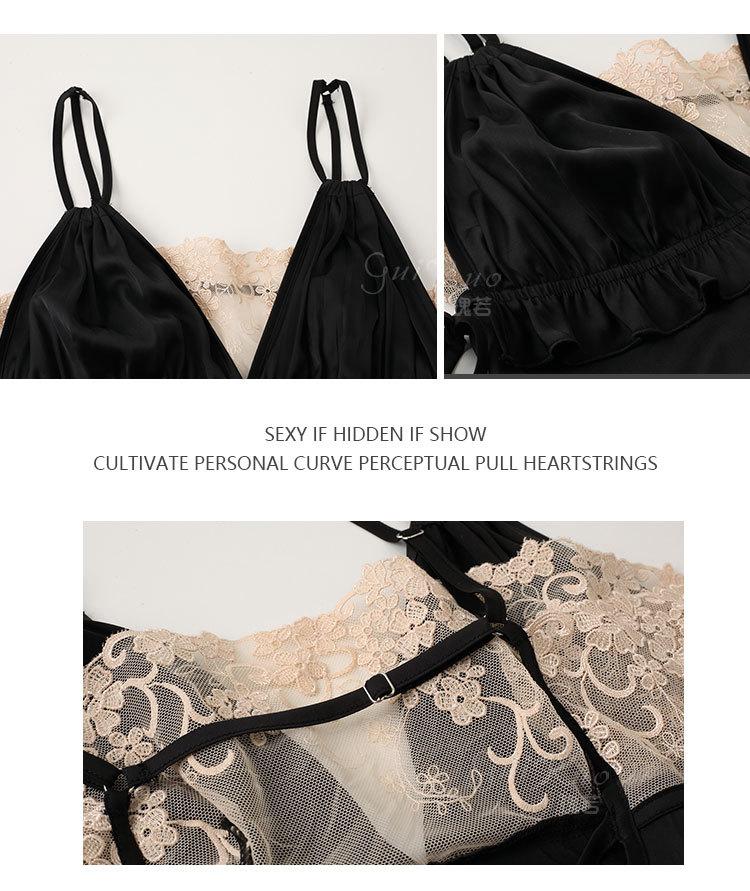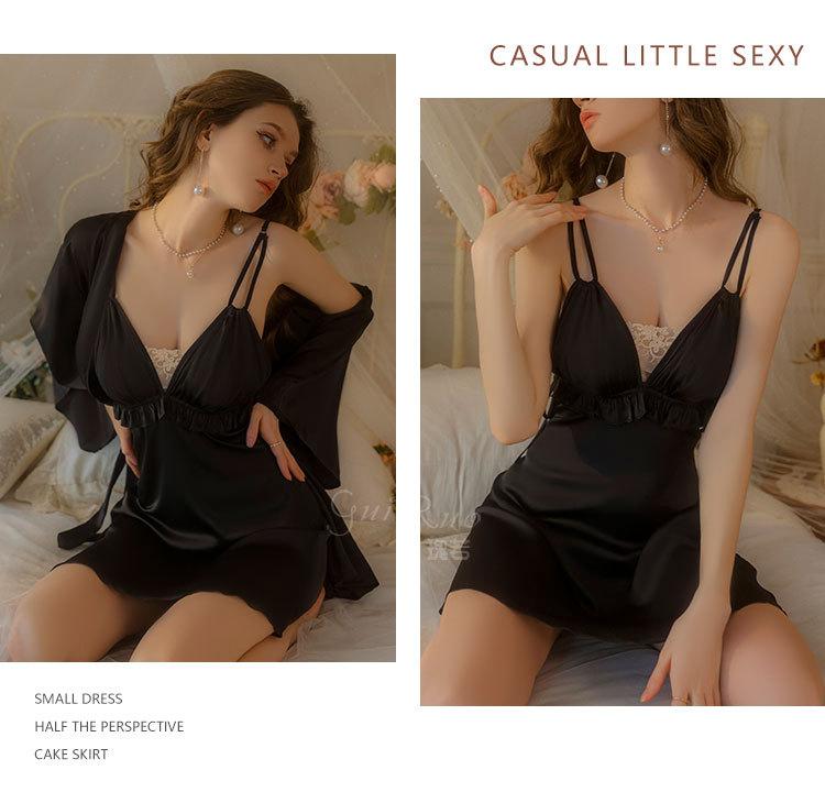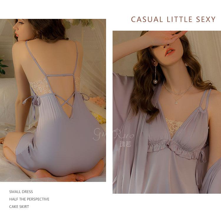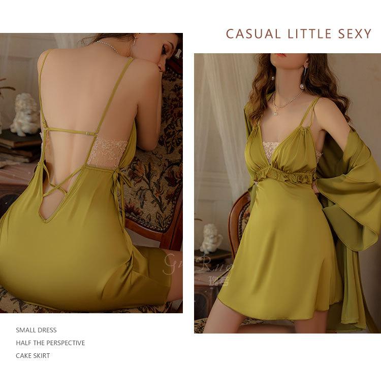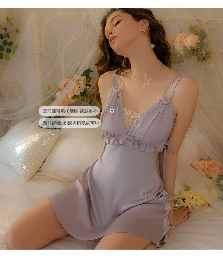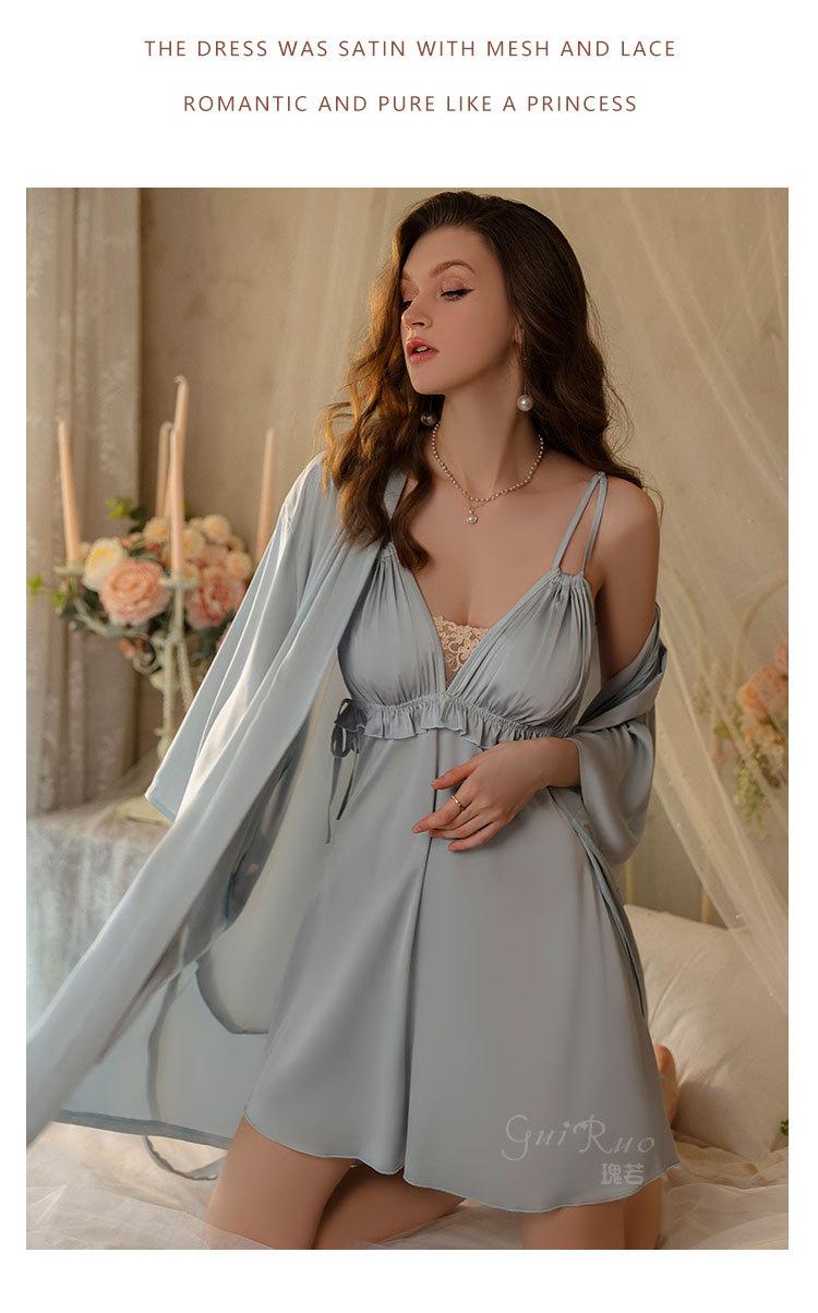 Camisón Ruoruo de satén con cordón ajustable y costuras push up de encaje sexy con tirantes y espalda descubierta para mujer, bata exterior para estar en casa, 3210