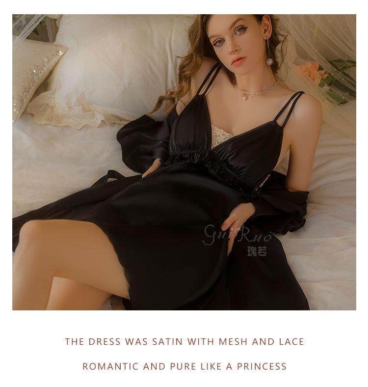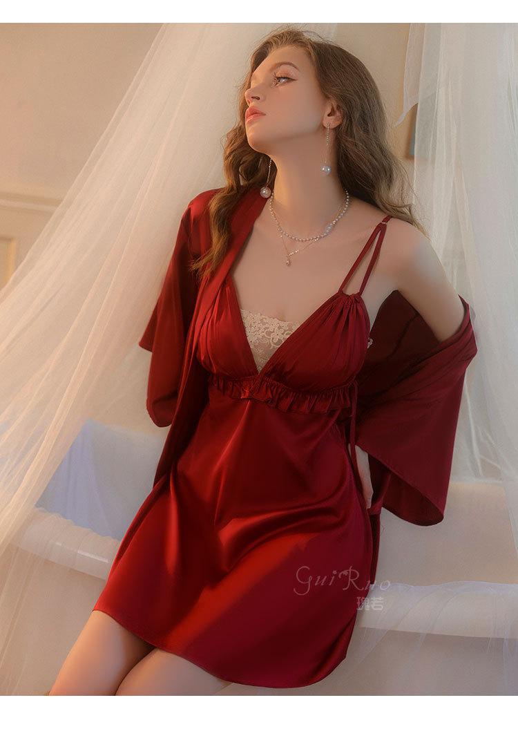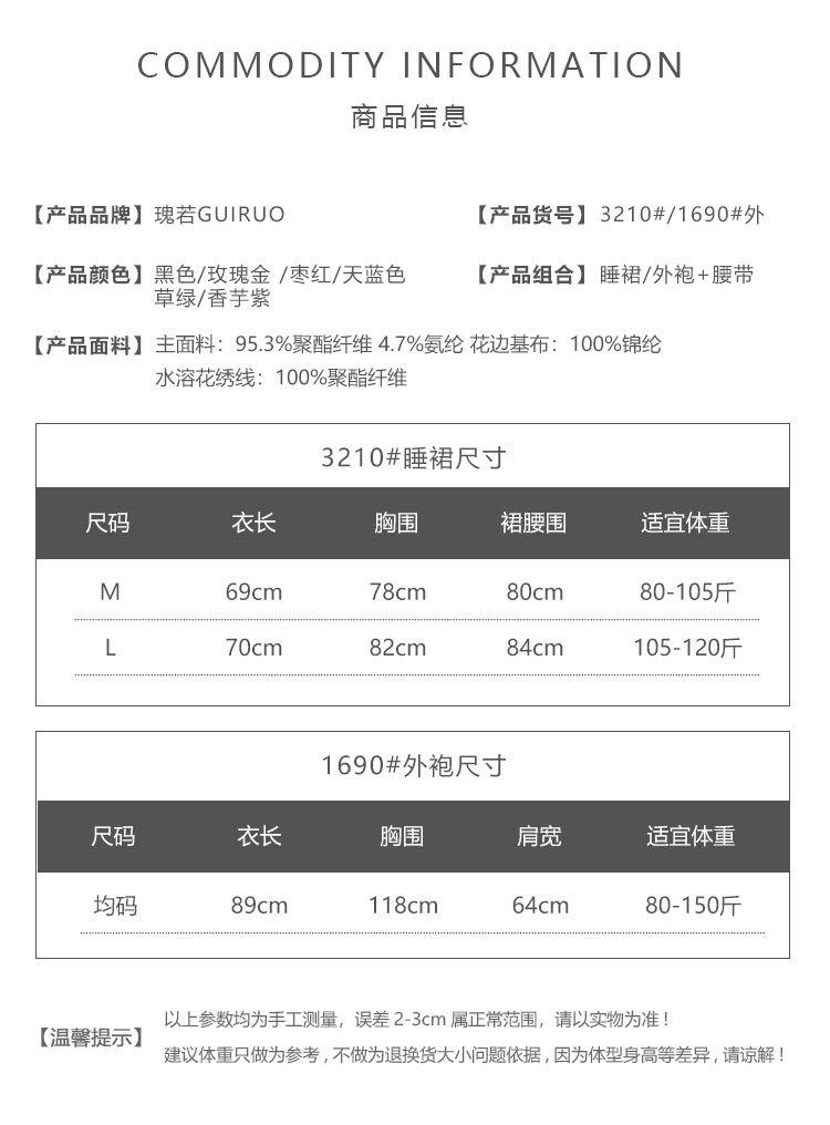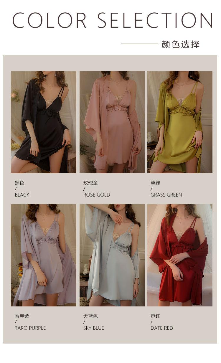 3210 Black (nightdress), 1690 Black (Robe + Belt), 3210 purplish red (nightdress), 1690 purplish red (Robe + B...