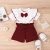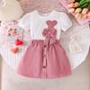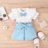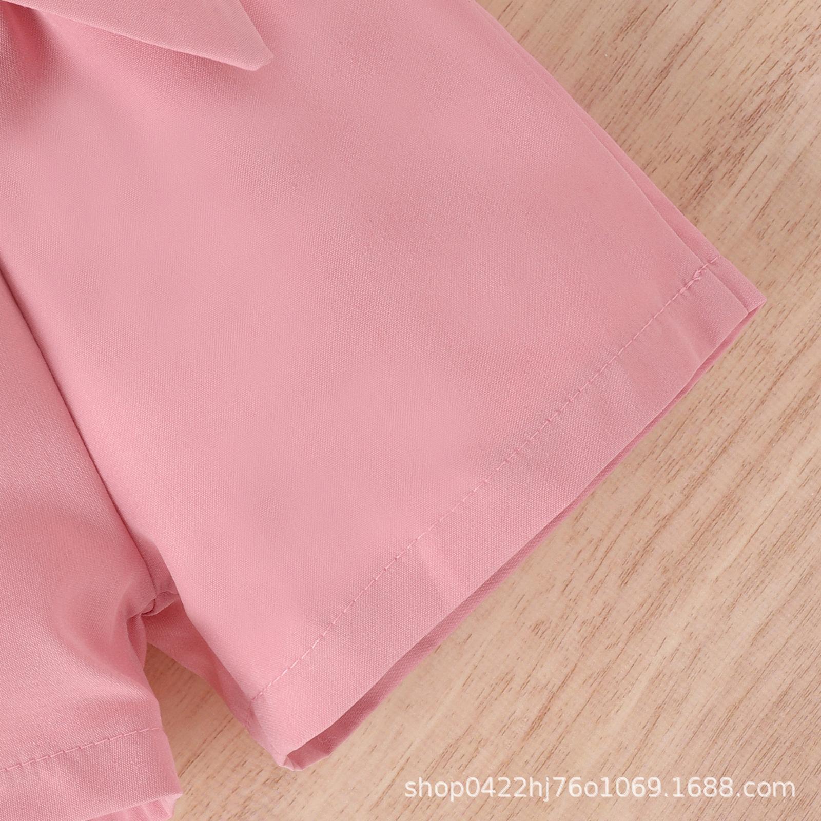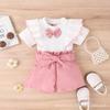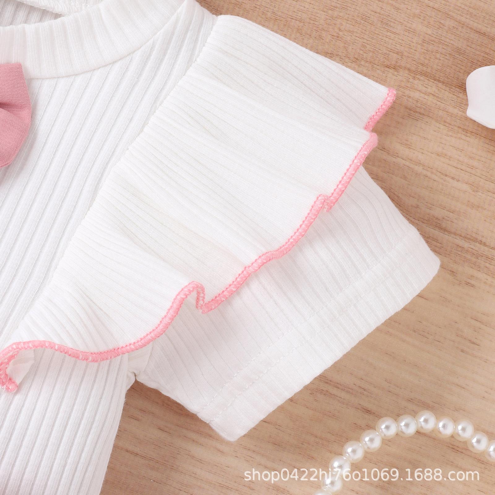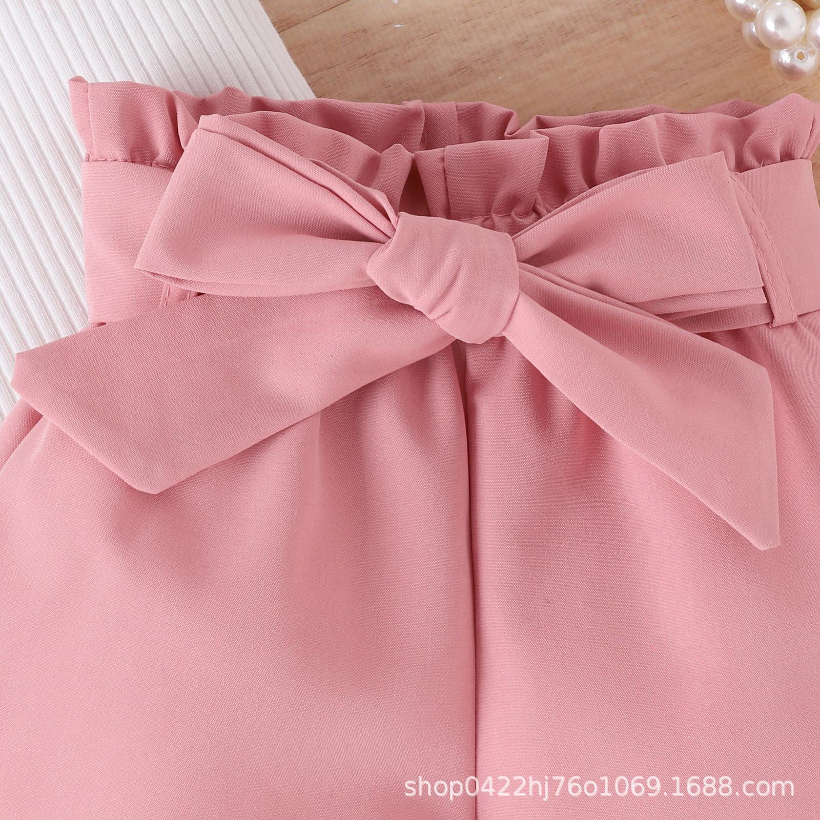 Conjunto de ropa infantil de Amazon, estilo coreano, de verano, con top de manga corta con volantes y pantalones con lazo en la cintura, para niñas pequeñas y medianas.
