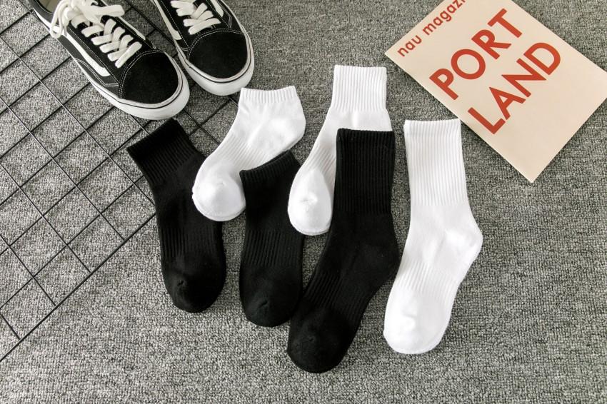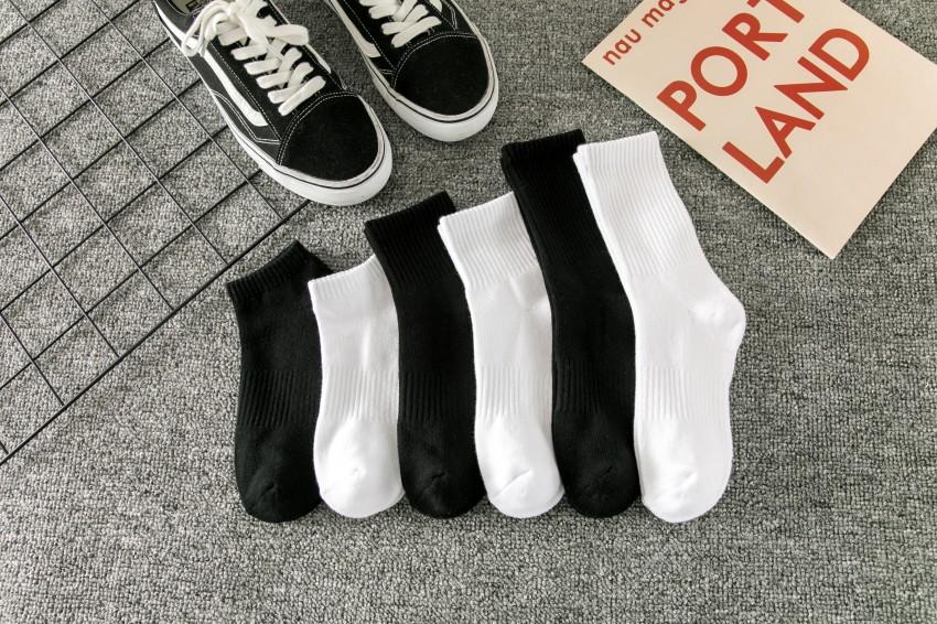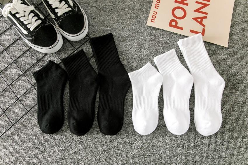 Calcetines blancos de longitud media para hombre, de primavera y verano, de colores lisos, modernos, negros, finos, de baloncesto, para mujer