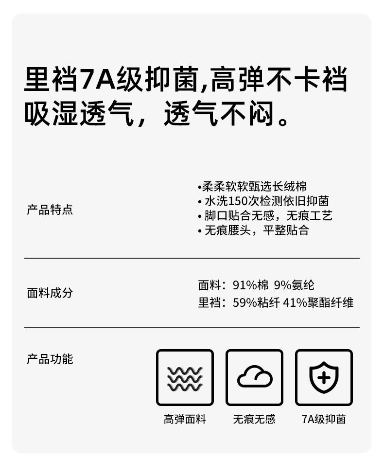 Traceless, Sports type, Breathable, Antibacterial