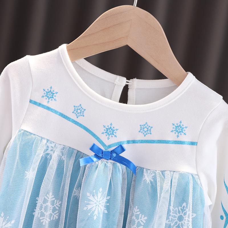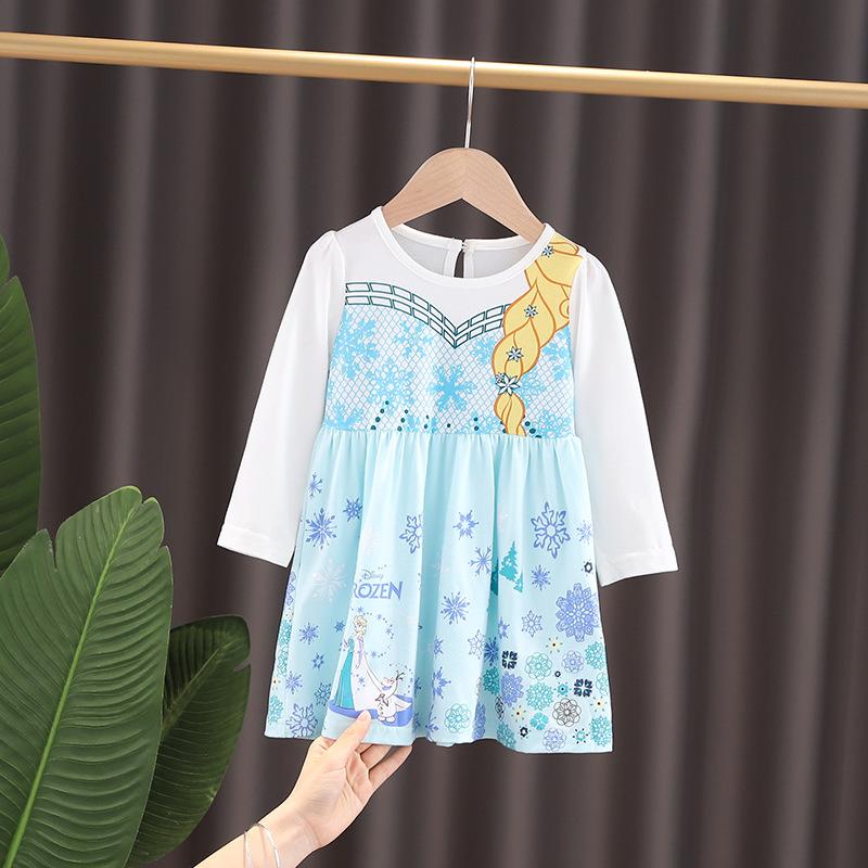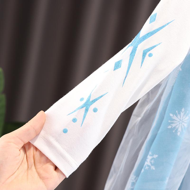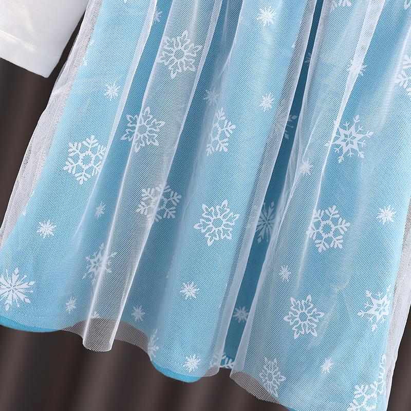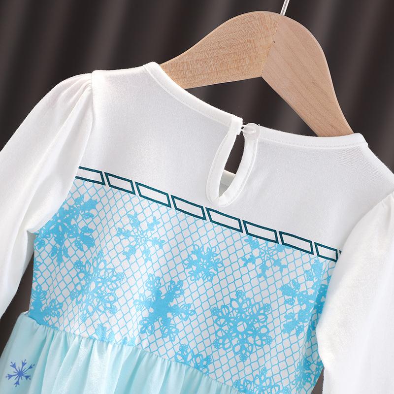 Vestido de princesa Elsa de Frozen de manga corta colorido, ropa infantil de comercio exterior, vestido de niña, disfraz de actuación para el Día del Niño