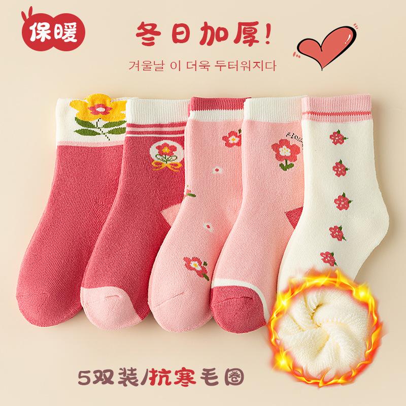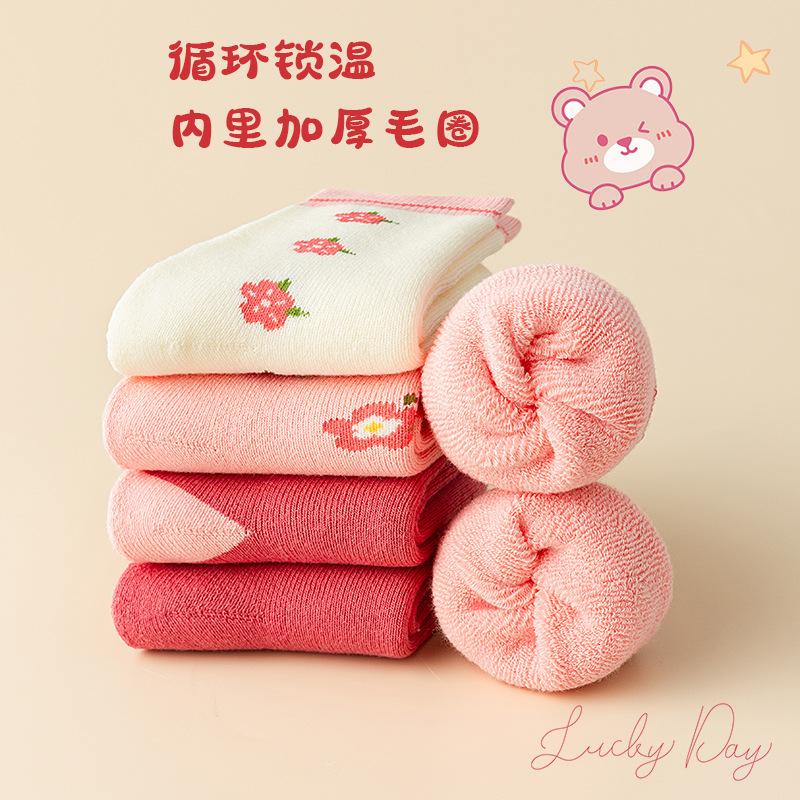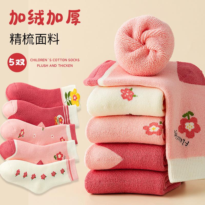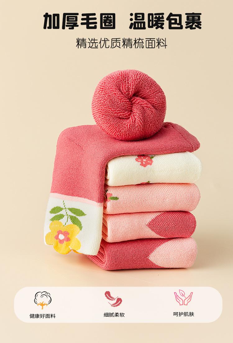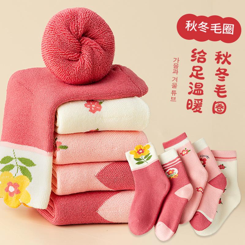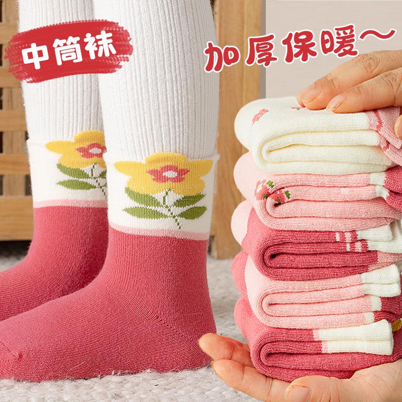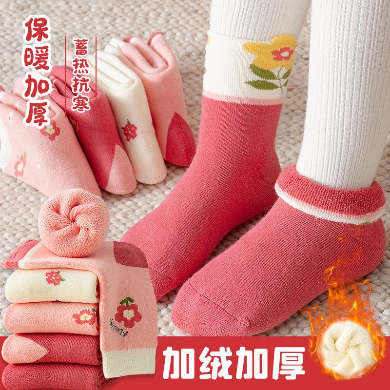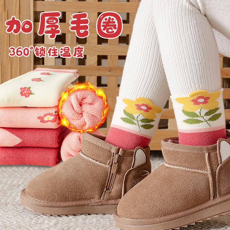 [Calcetines Zhuji] Calcetines para niños, otoño e invierno, calcetines para niñas, calcetines para niñas, princesas, flores, gruesos, de felpa, cálidos.
