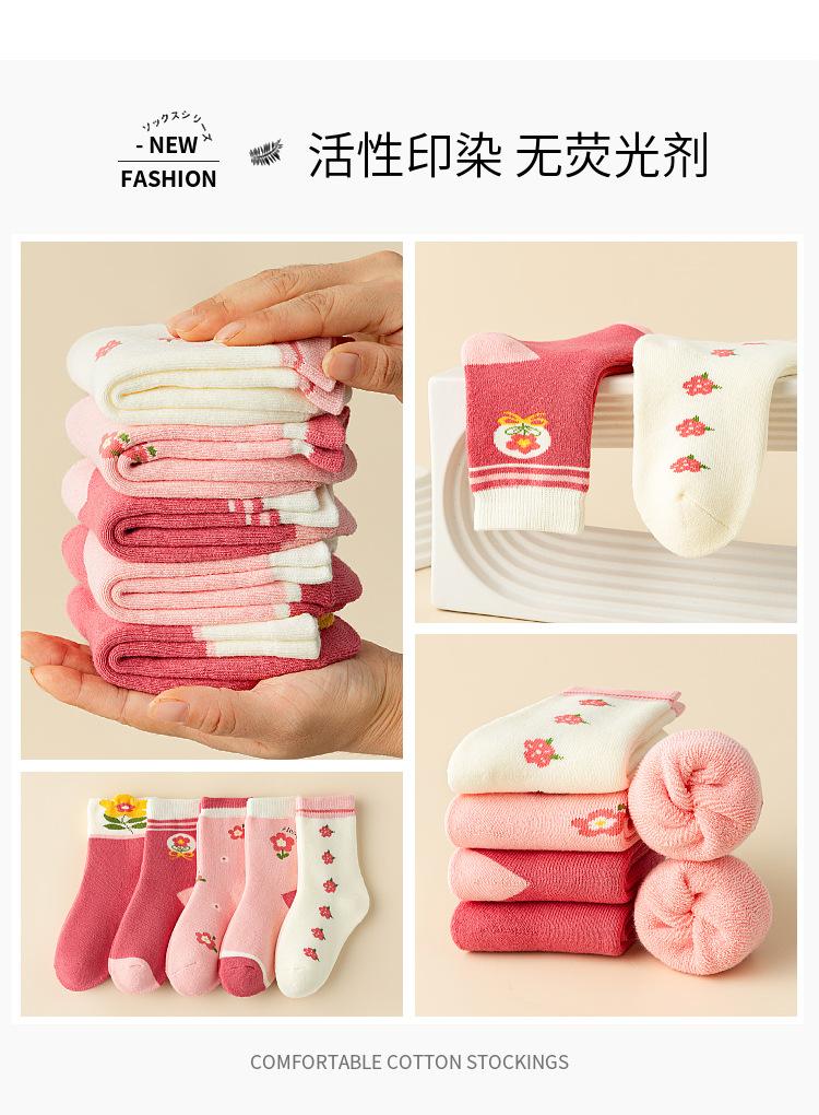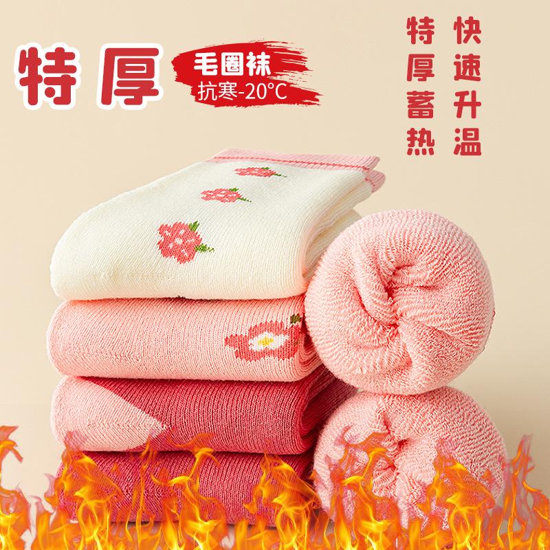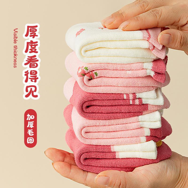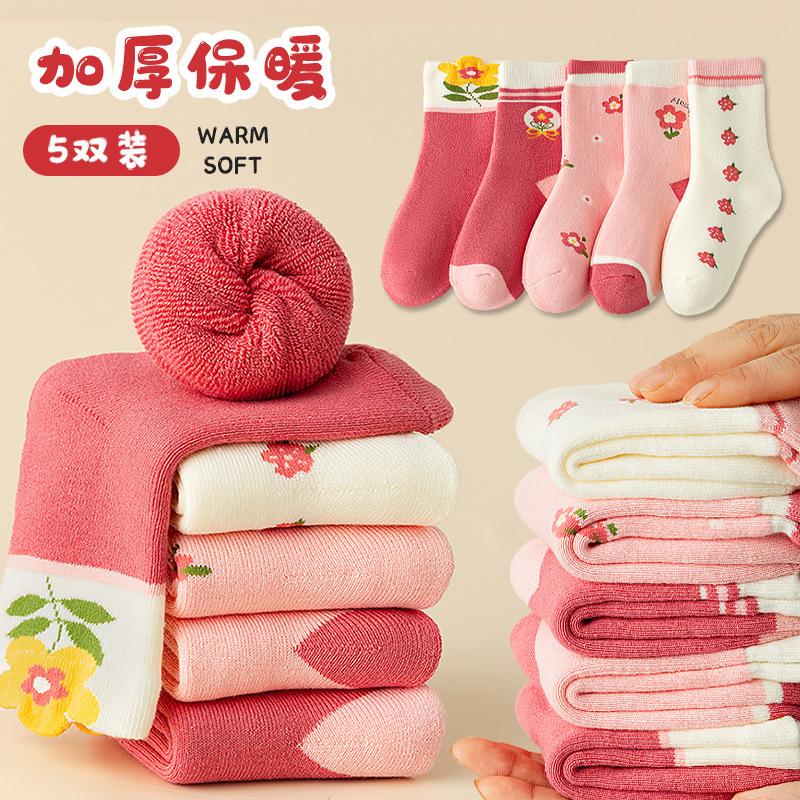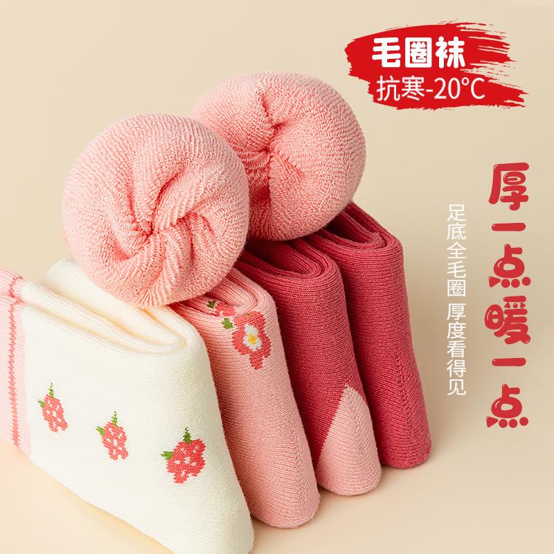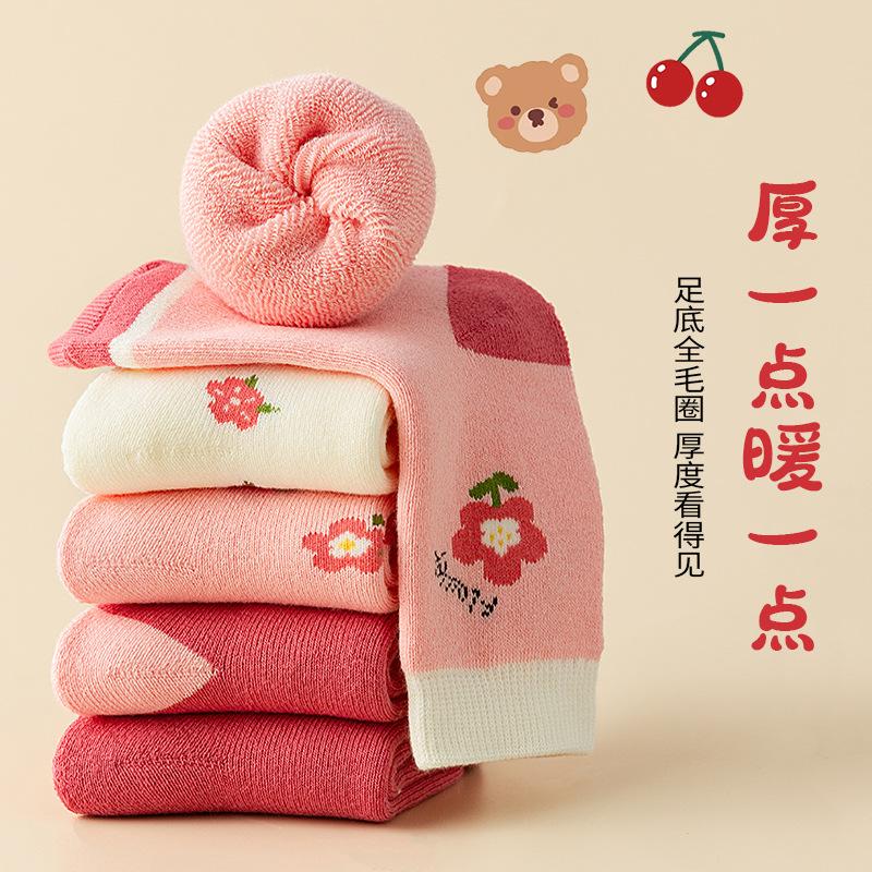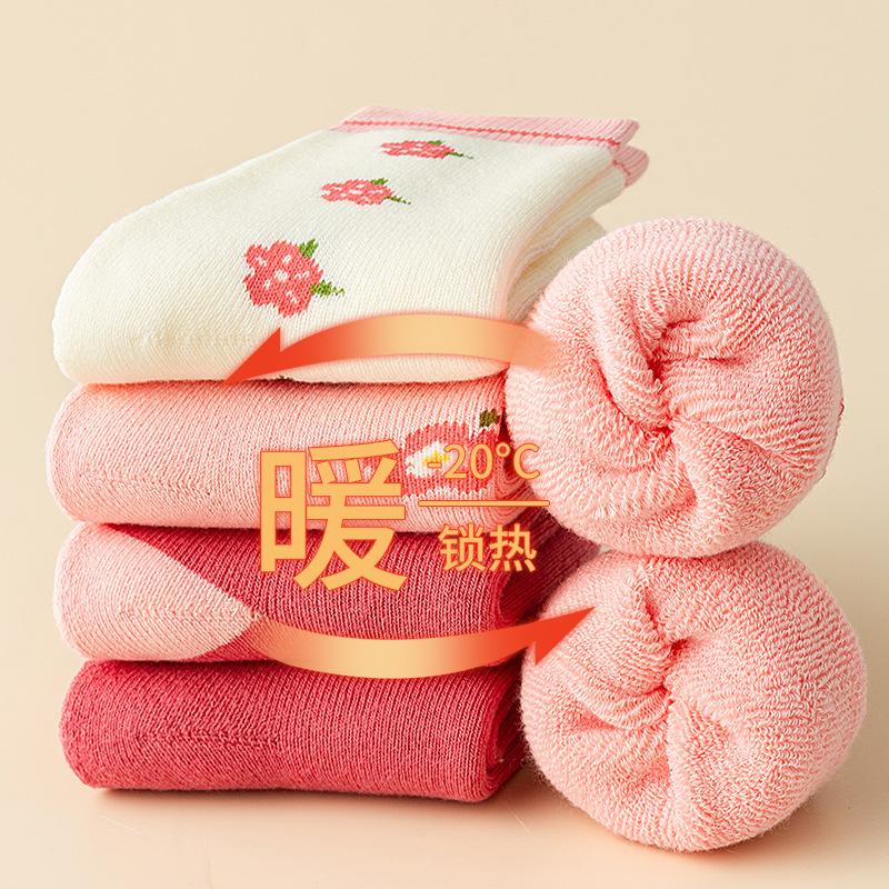 [Calcetines Zhuji] Calcetines para niños, otoño e invierno, calcetines para niñas, calcetines para niñas, princesas, flores, gruesos, de felpa, cálidos.