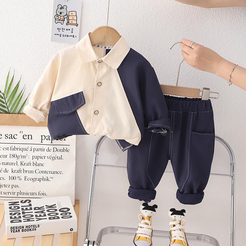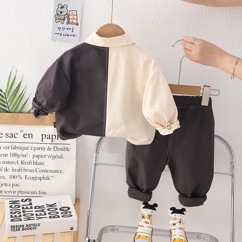 Ropa para niños Traje para niños Primavera y otoño 2023 Nueva camisa a juego de colores Ropa de bebé de otoño Traje de moda de dos piezas para niños