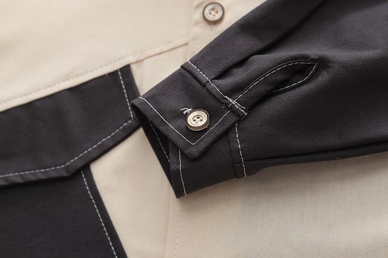 Long Sleeve Colorblock Shirt suit navy blue, Long Sleeve Colorblock Shirt suit Brown