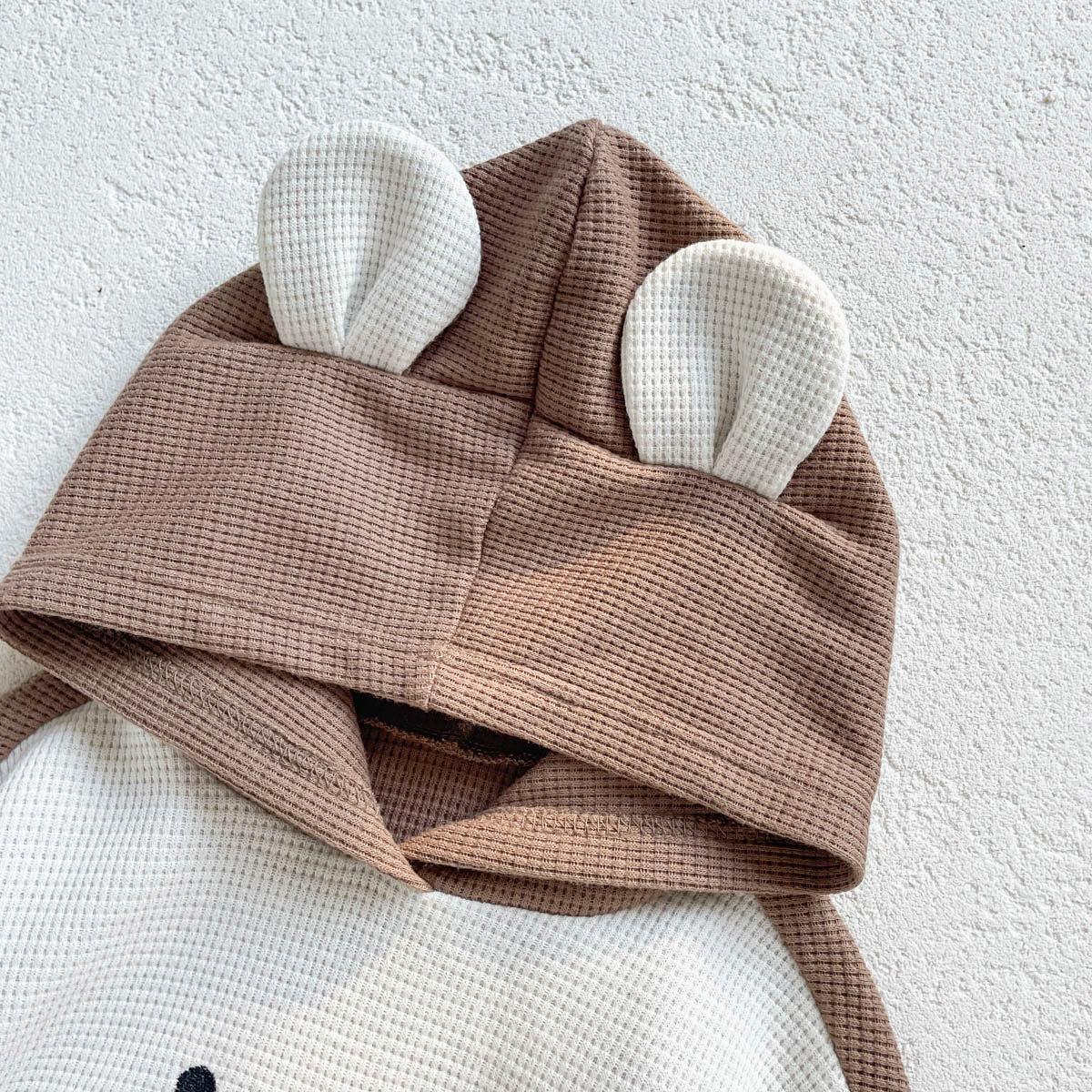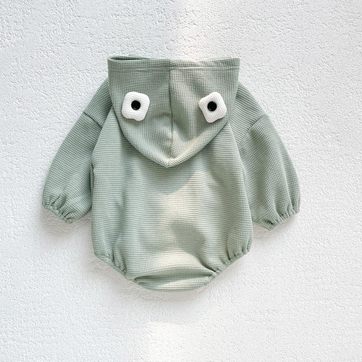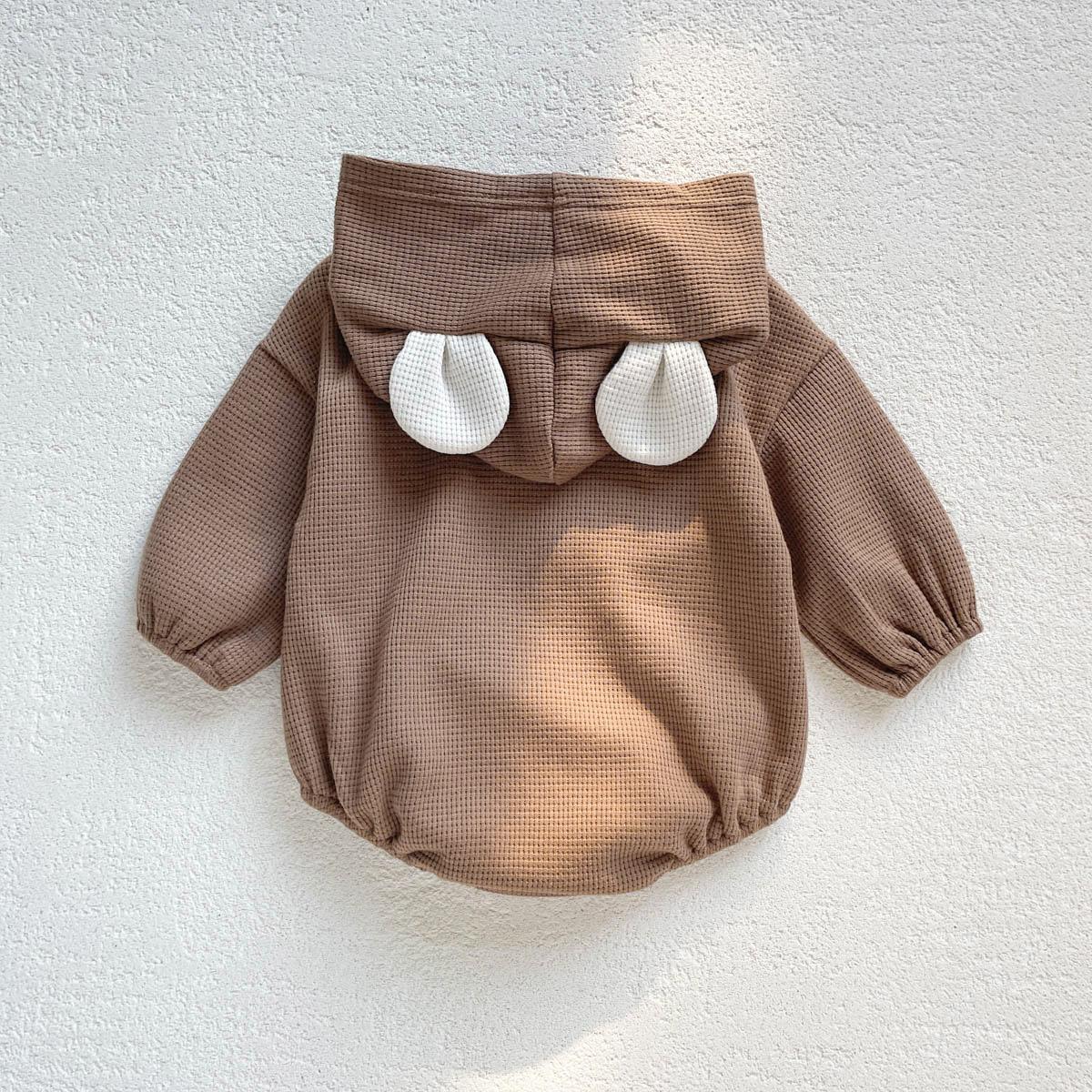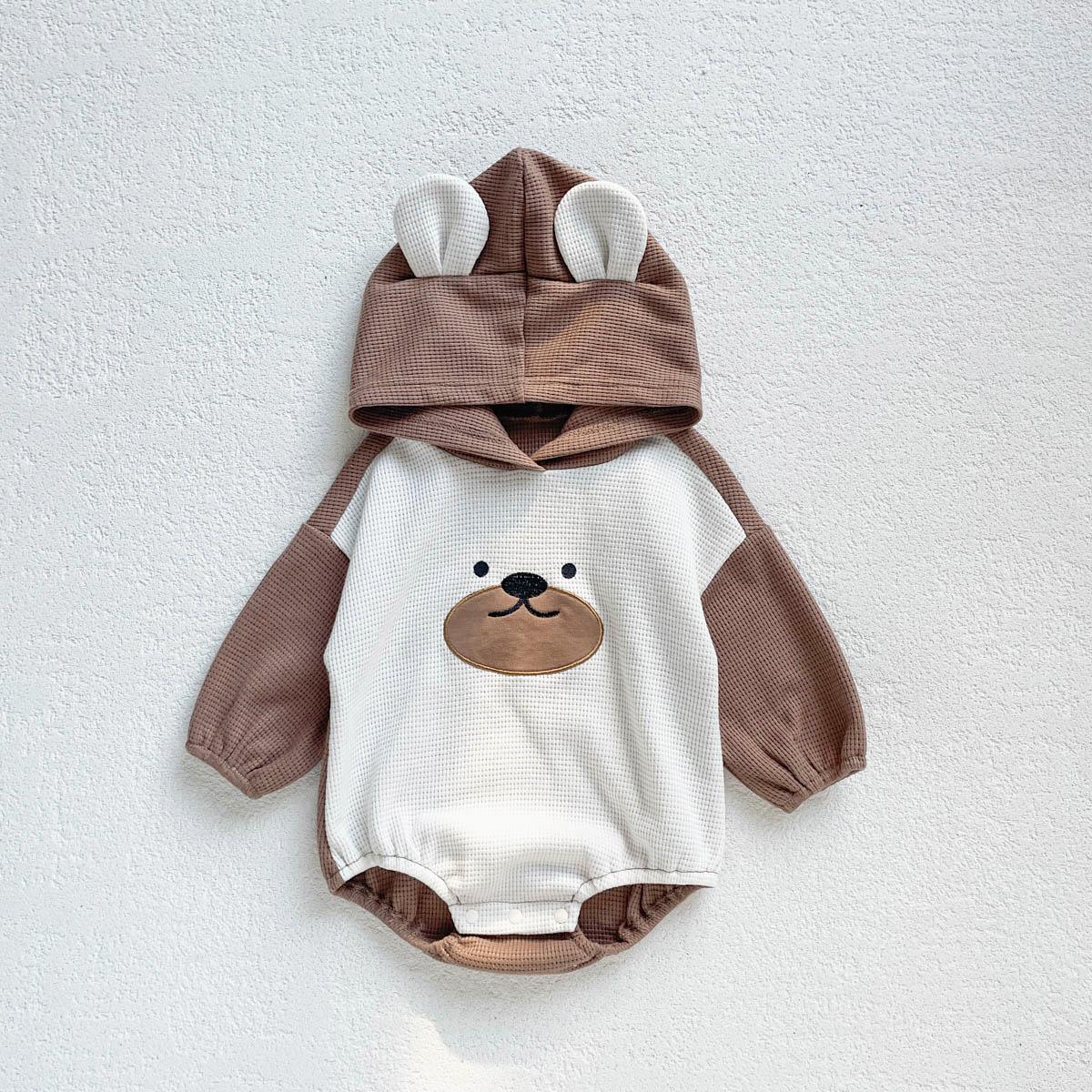 Mono triangular con capucha de manga larga con dibujos animados para bebé de 0 a 1 año, mono de escalada con diseño de gofres súper lindo para otoño e invierno.