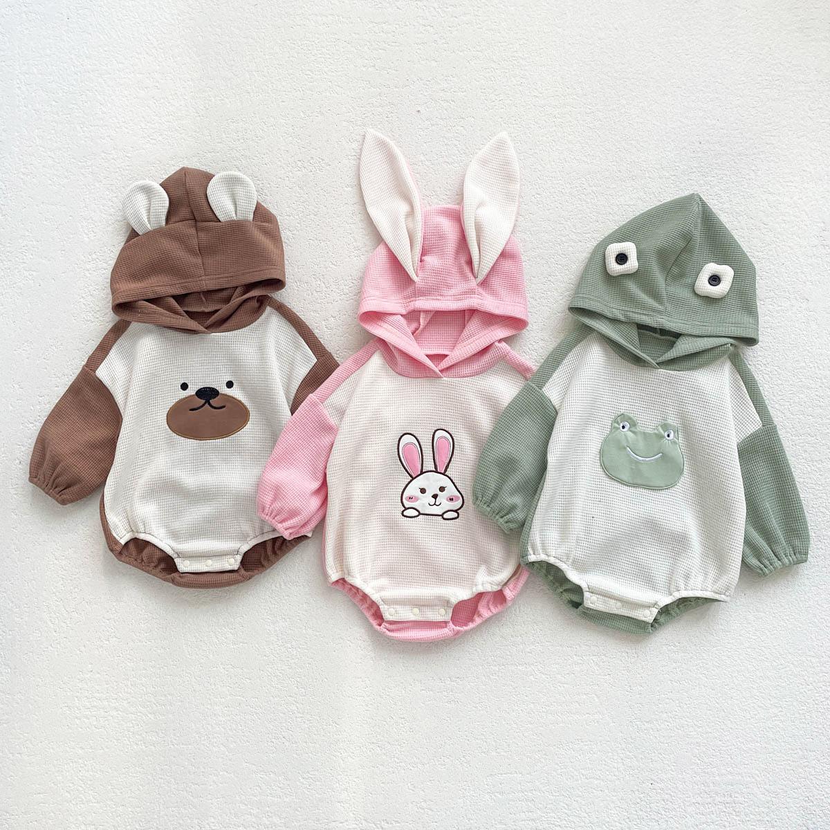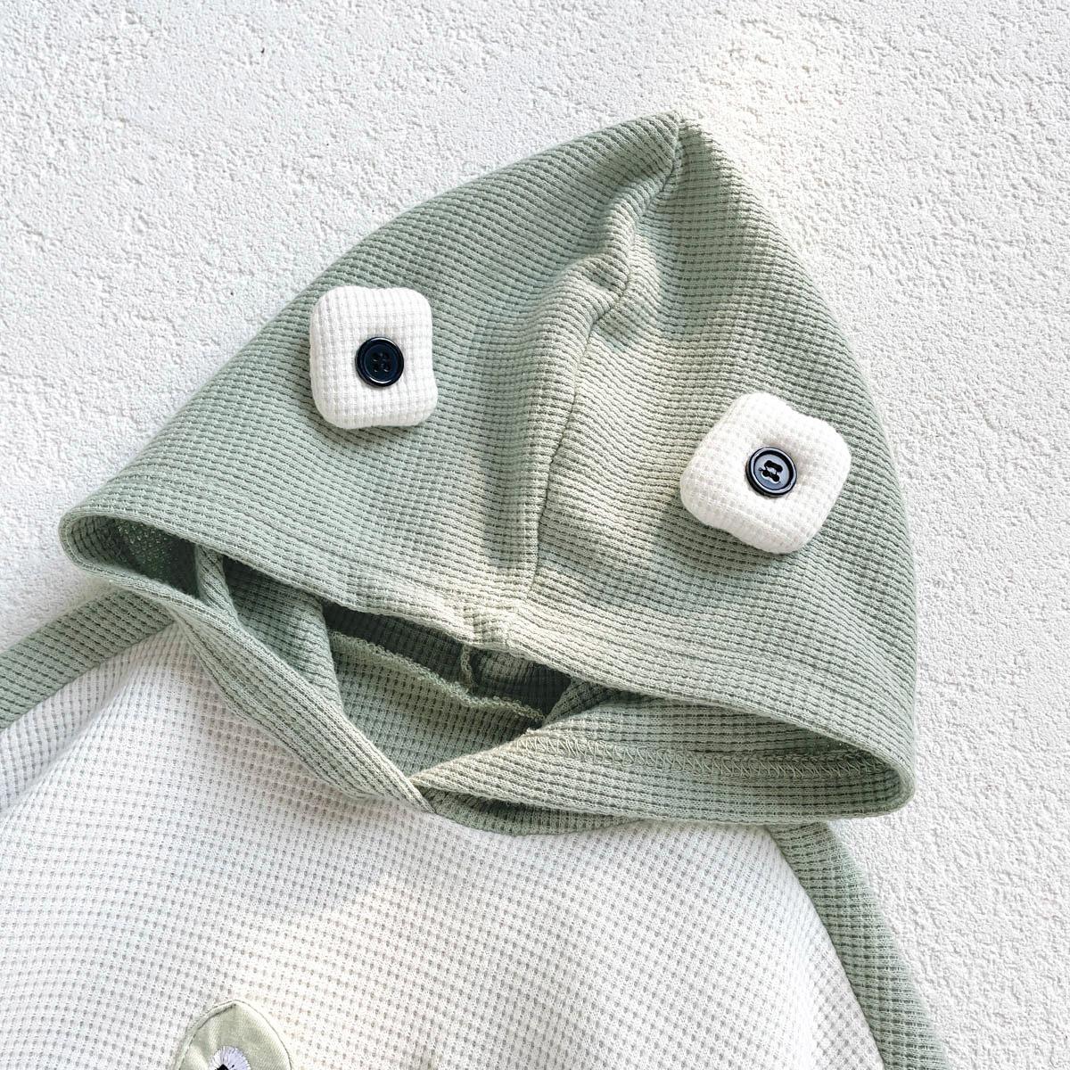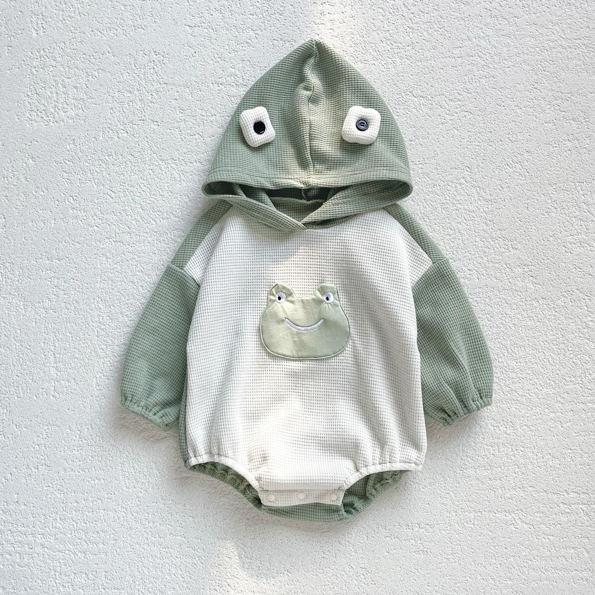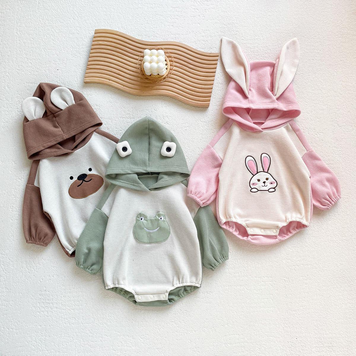 Mono triangular con capucha de manga larga con dibujos animados para bebé de 0 a 1 año, mono de escalada con diseño de gofres súper lindo para otoño e invierno.