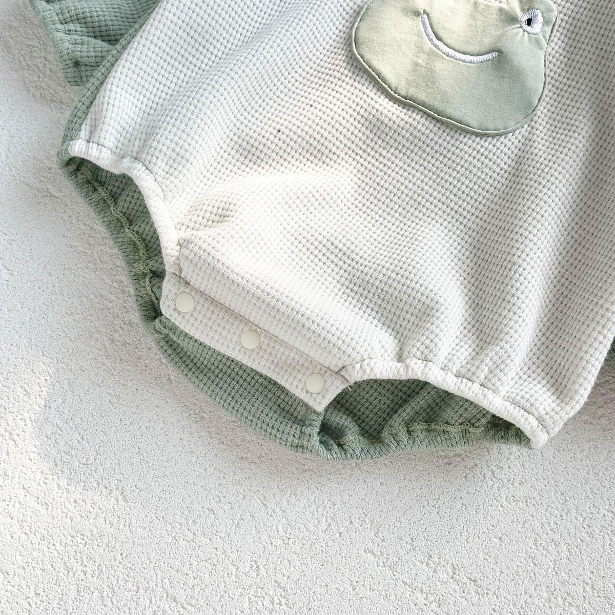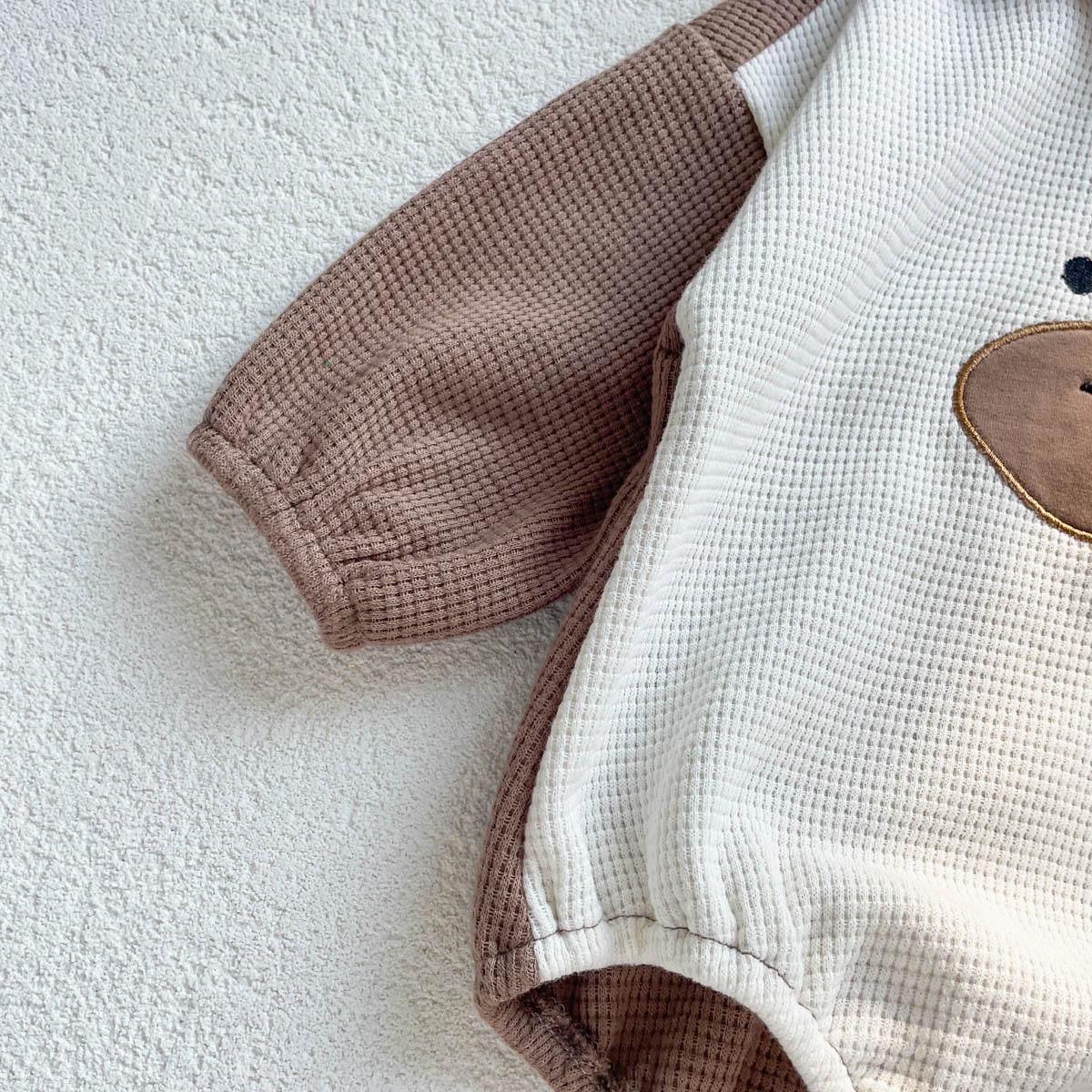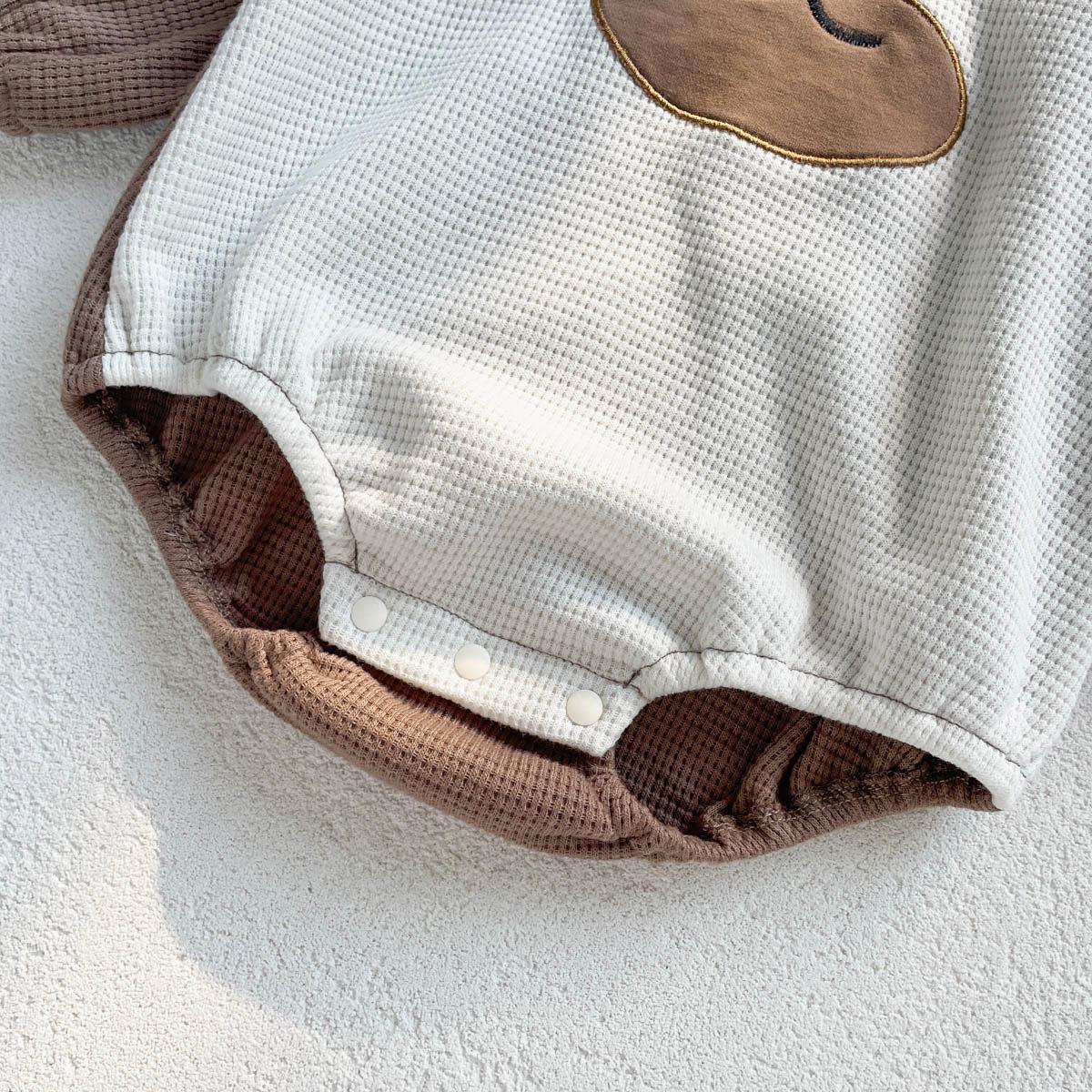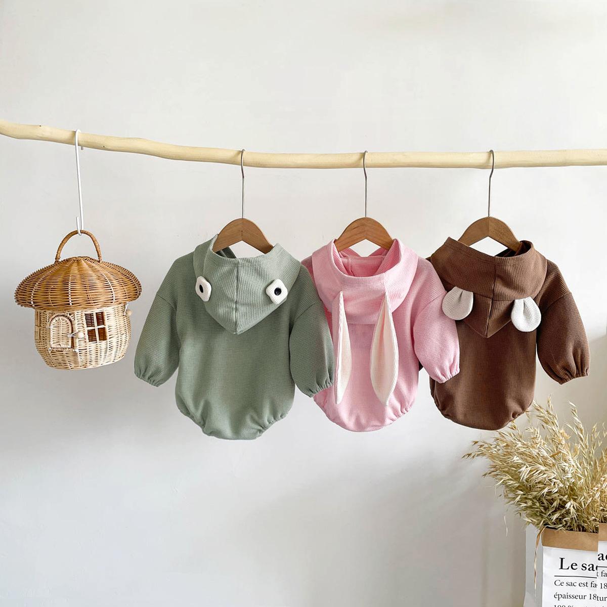 Mono triangular con capucha de manga larga con dibujos animados para bebé de 0 a 1 año, mono de escalada con diseño de gofres súper lindo para otoño e invierno.