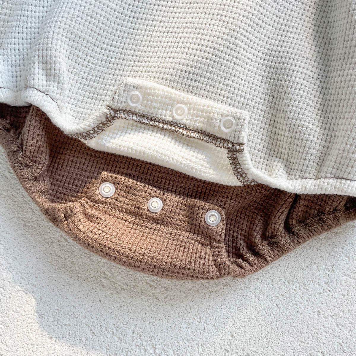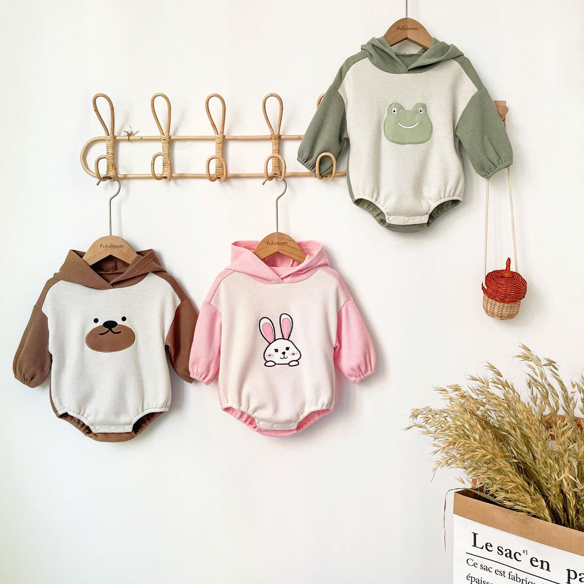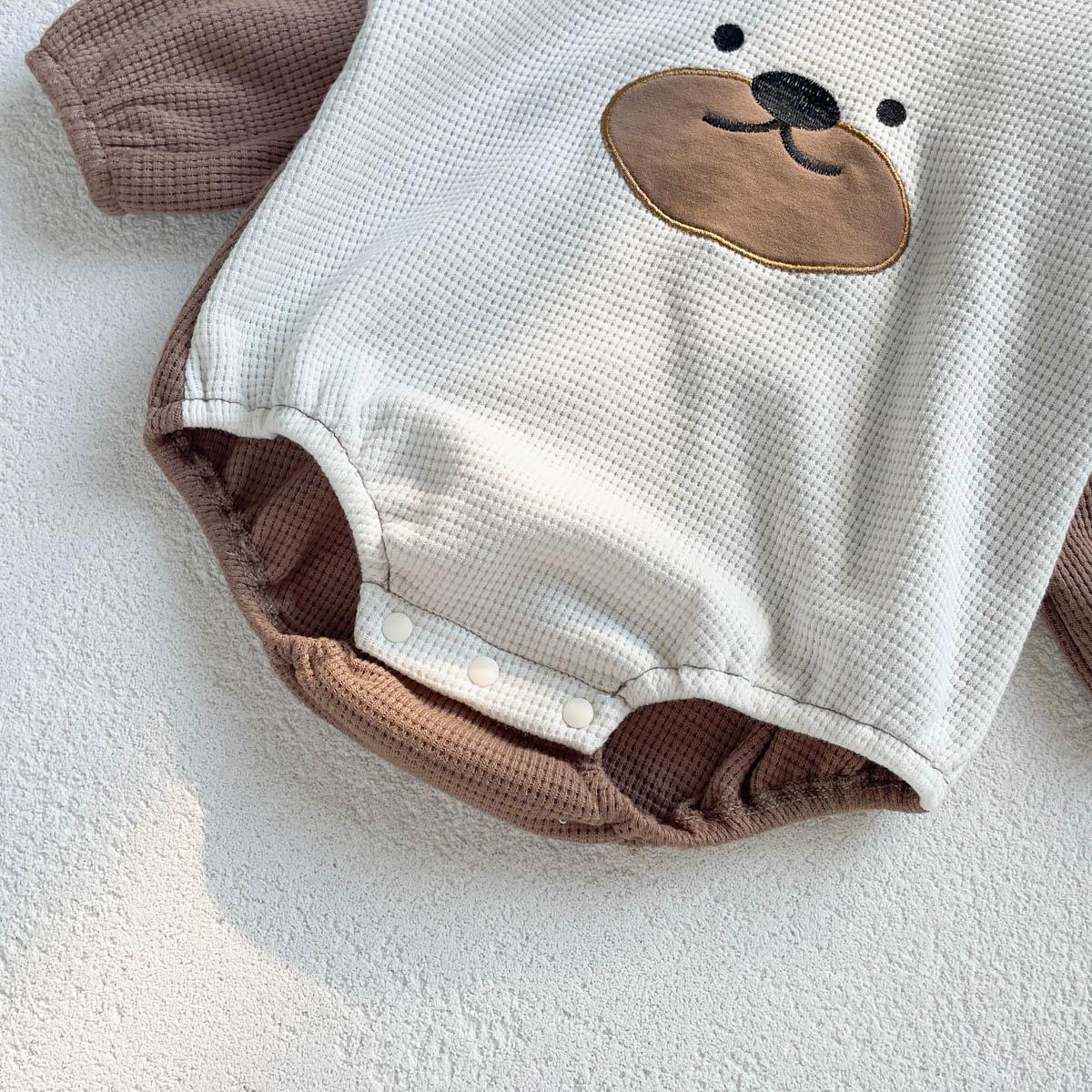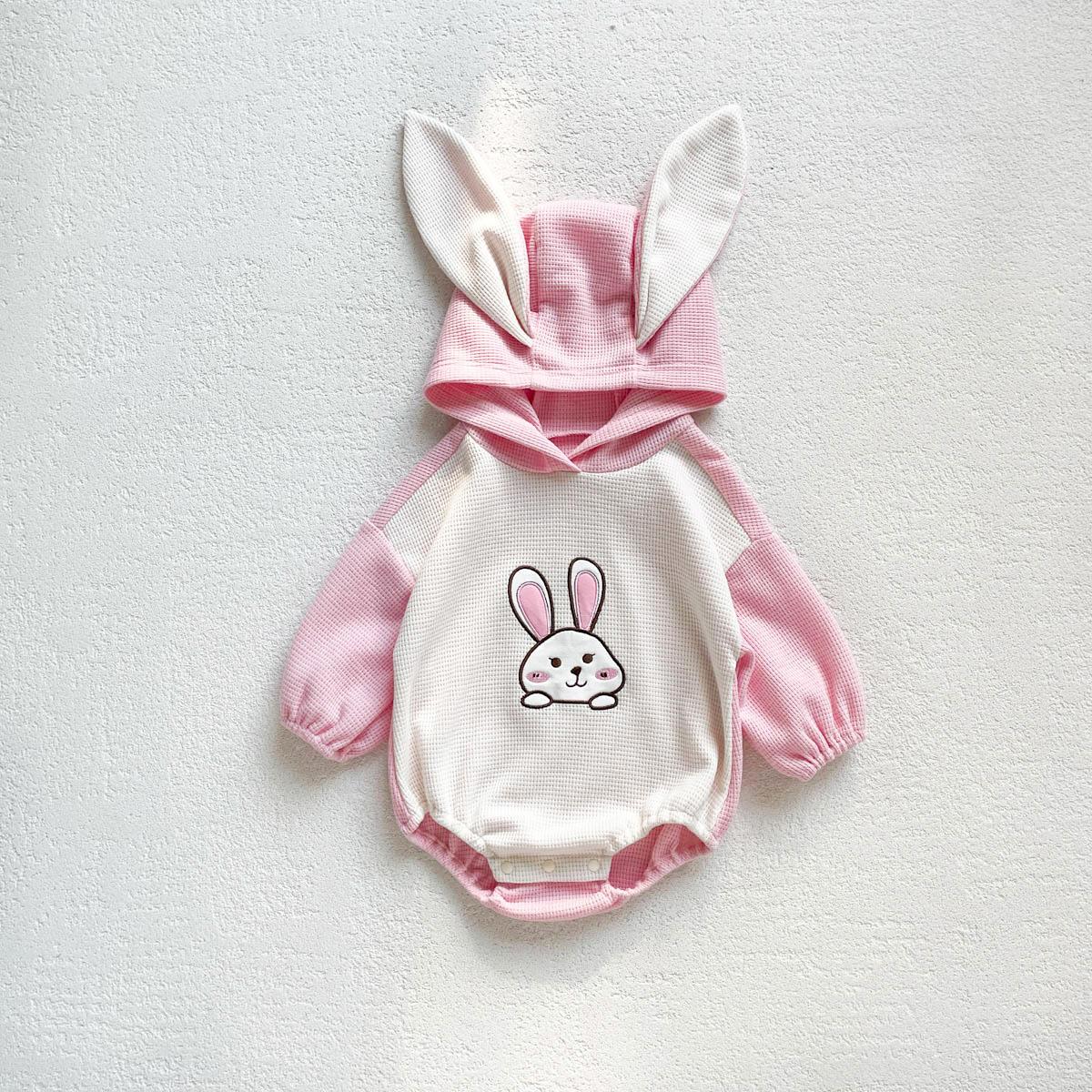 Mono triangular con capucha de manga larga con dibujos animados para bebé de 0 a 1 año, mono de escalada con diseño de gofres súper lindo para otoño e invierno.