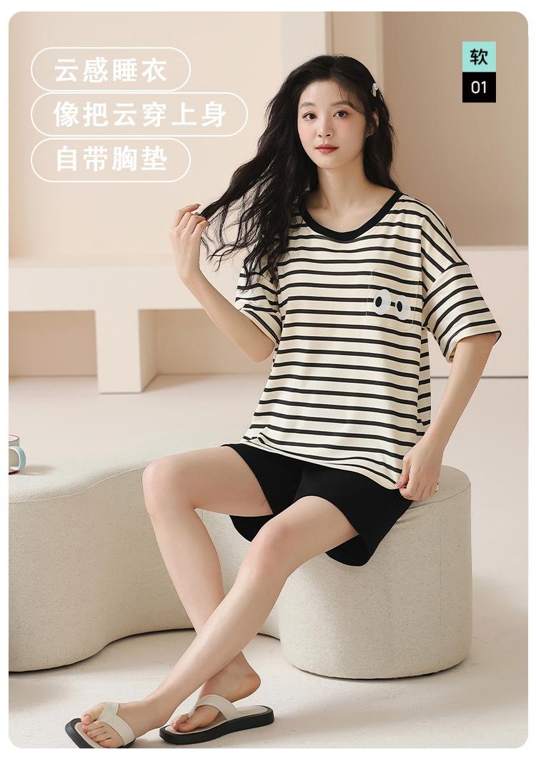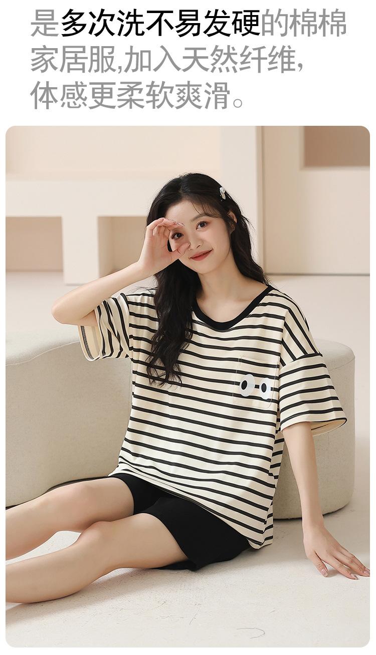 Pijamas para Mujer Verano Algodón Puro Shorts Manga Corta Verano Delgada Dibujos Animados Simple Se Puede Usar Fuera Conjunto Ropa para el Hogar Venta al por Mayor