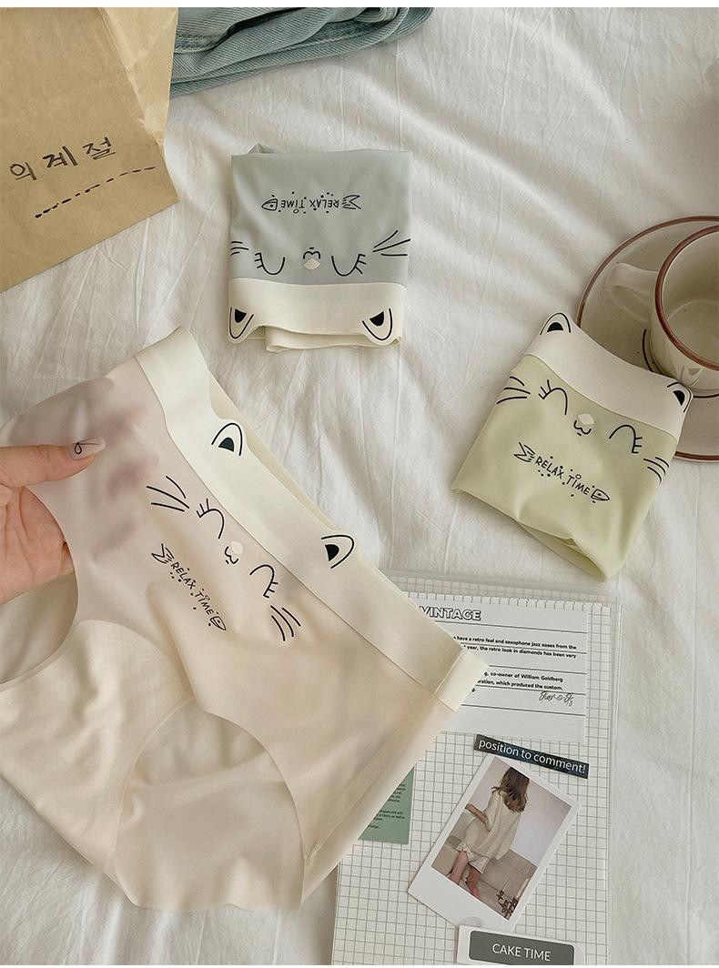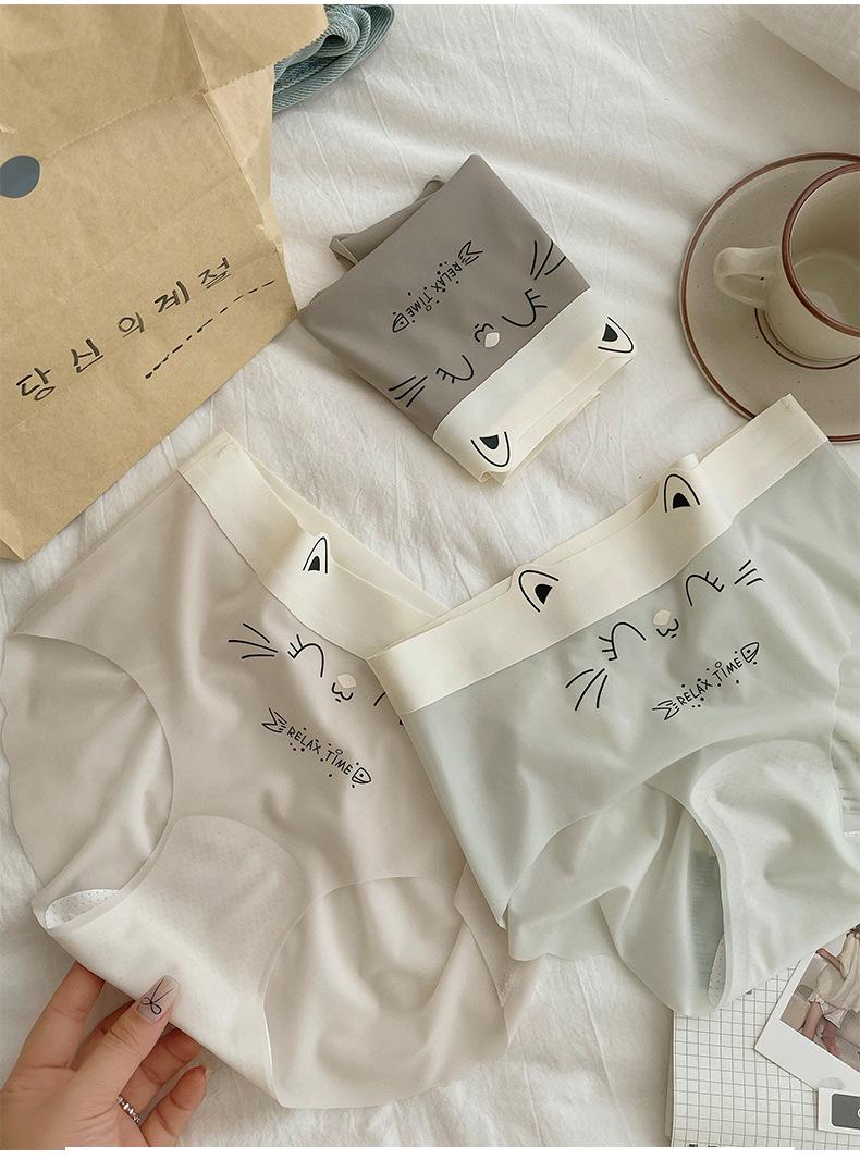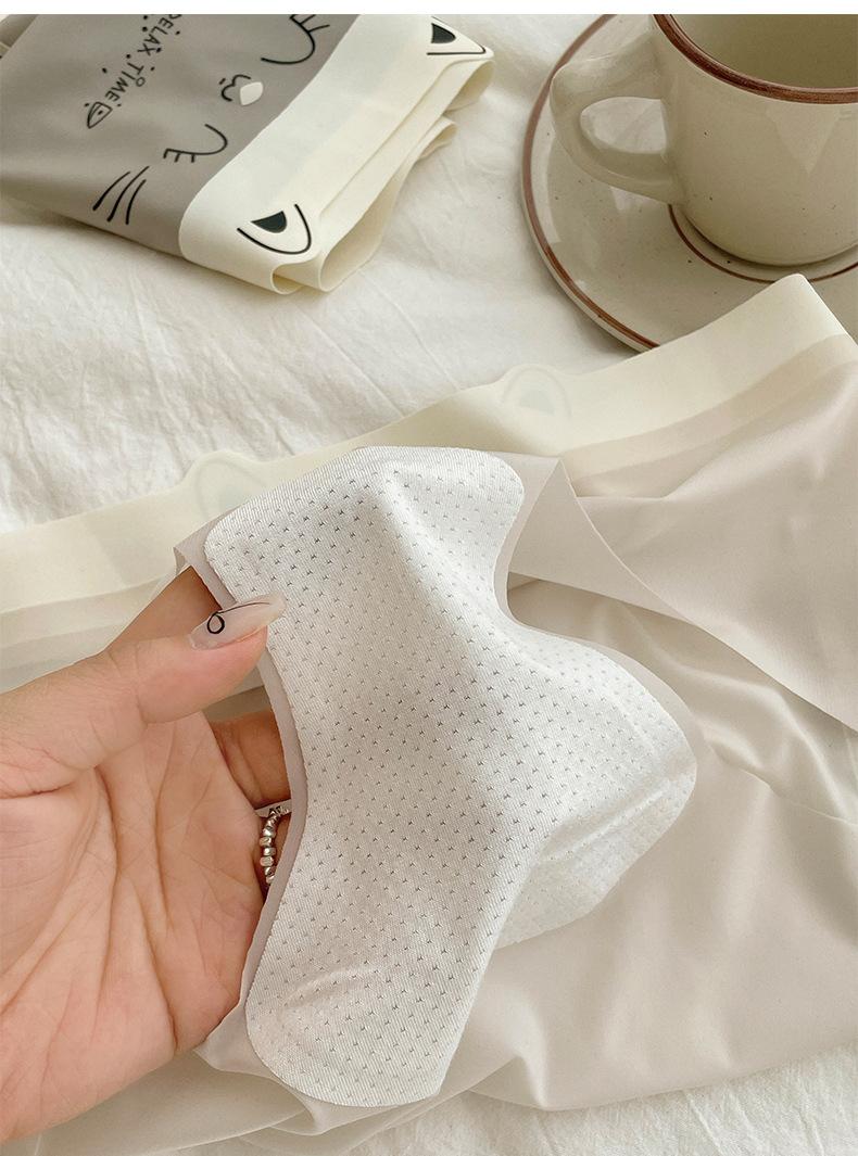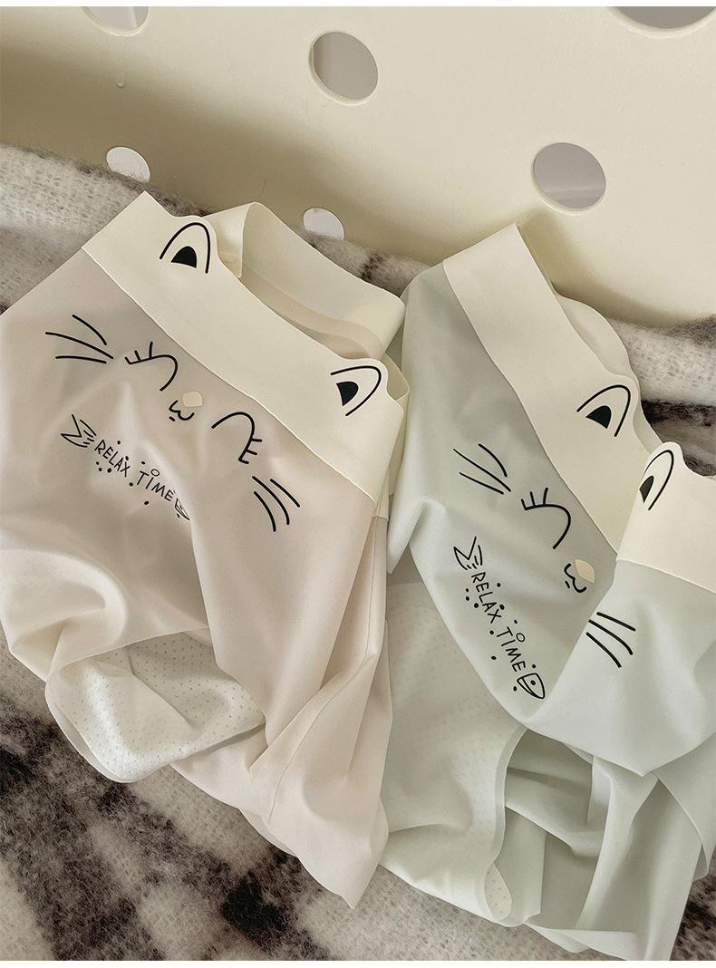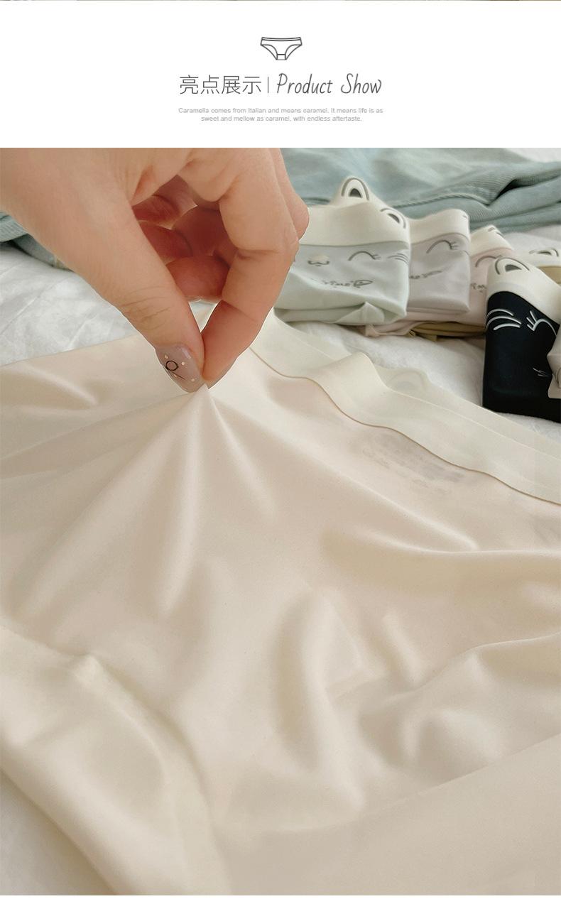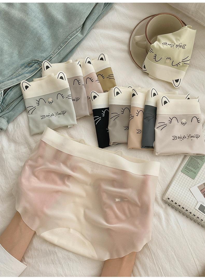 Ropa interior ultrafina de secado rápido con estampado de dibujos animados, sin rastro, de seda helada, para mujer, color melocotón, de verano, fina.