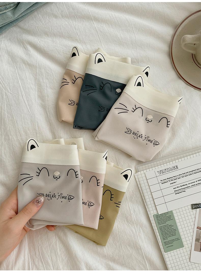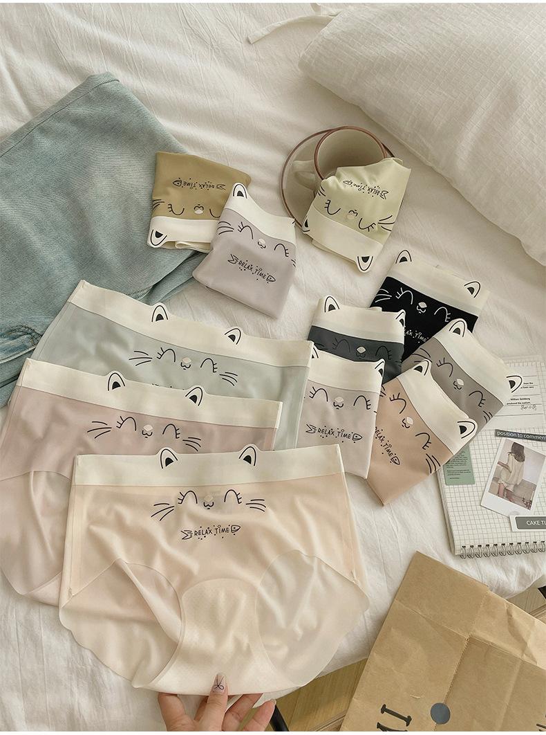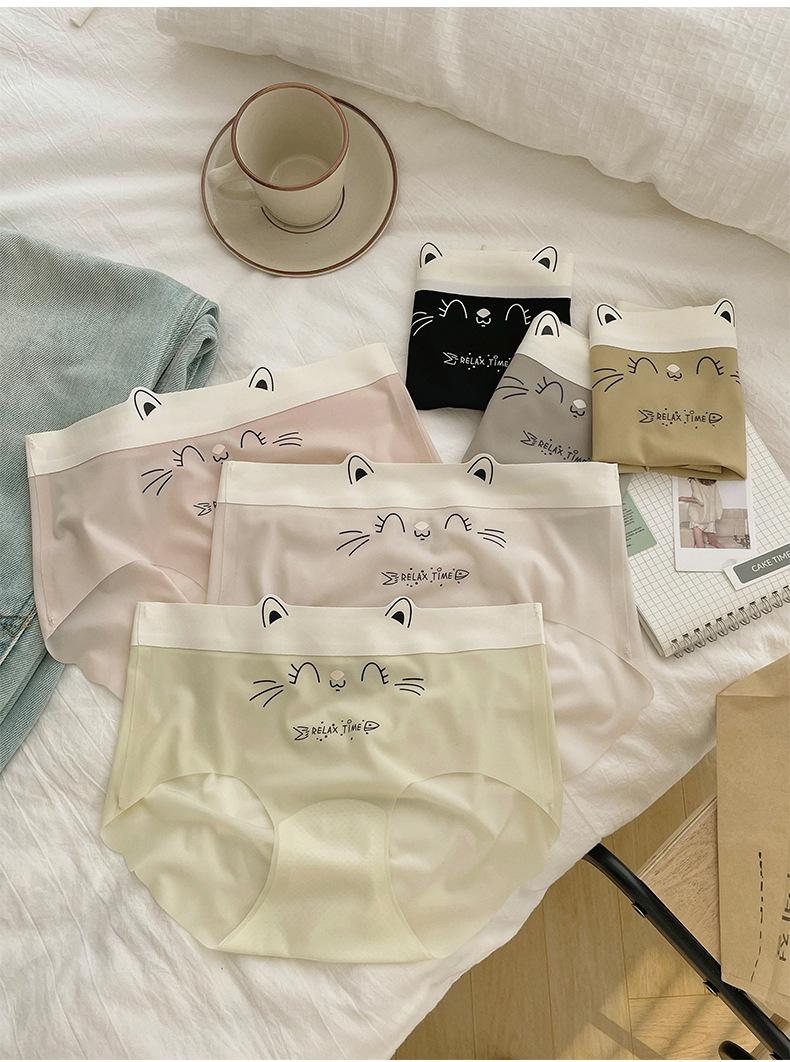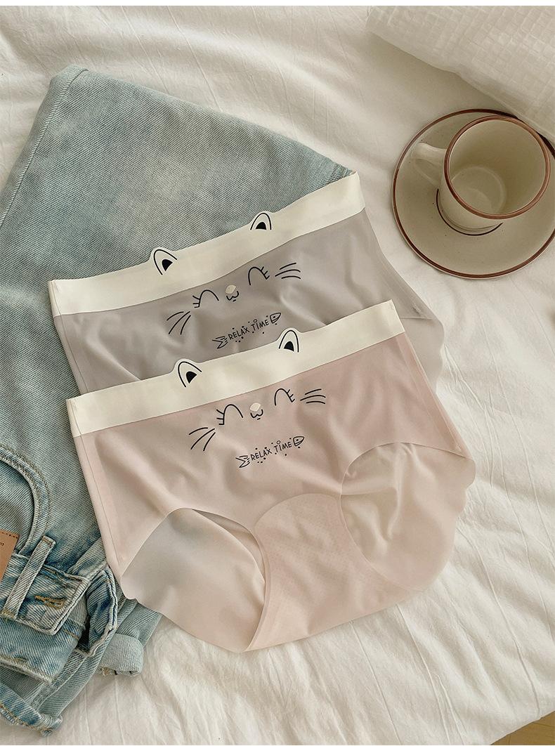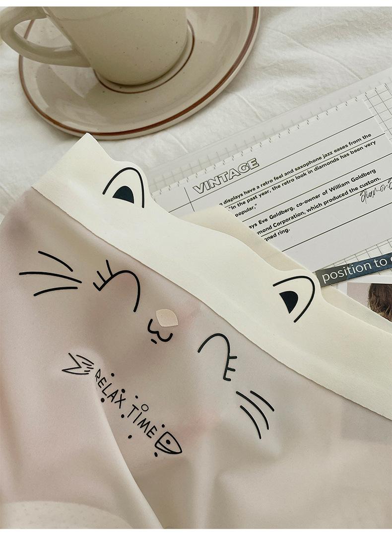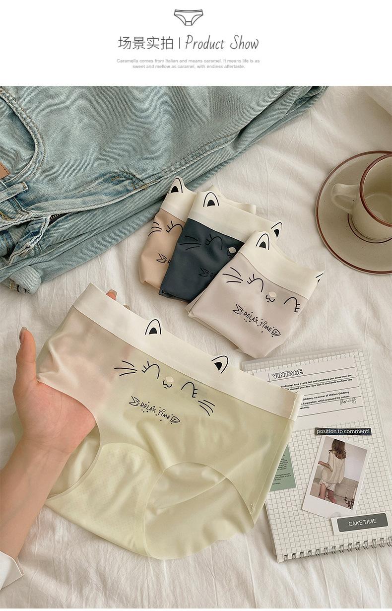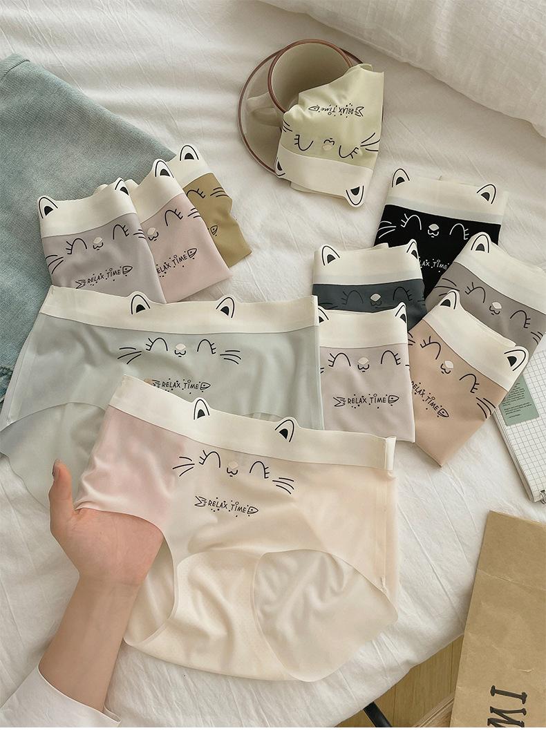 Ropa interior ultrafina de secado rápido con estampado de dibujos animados, sin rastro, de seda helada, para mujer, color melocotón, de verano, fina.