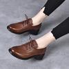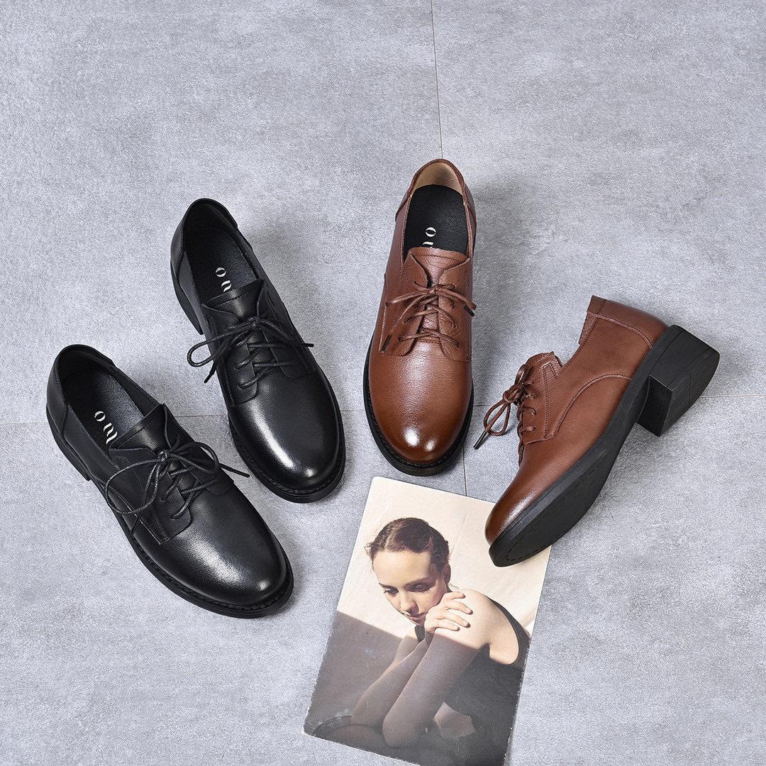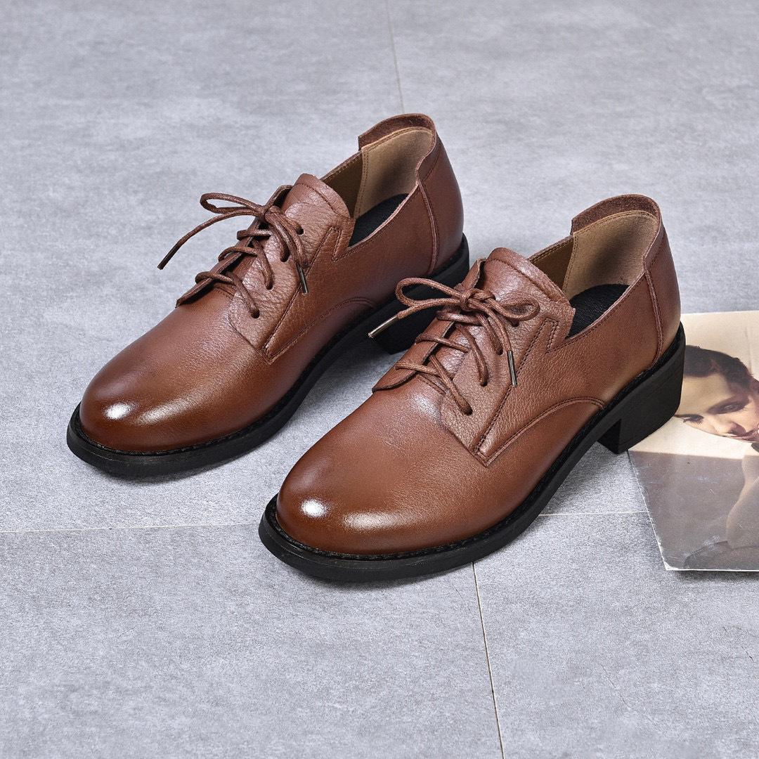 Zapatos pequeños de cuero para mujer, otoño 2023, nuevos zapatos planos retro cepillados con cordones de piel de vaca de primera capa, zapatos mocasines para las cuatro estaciones